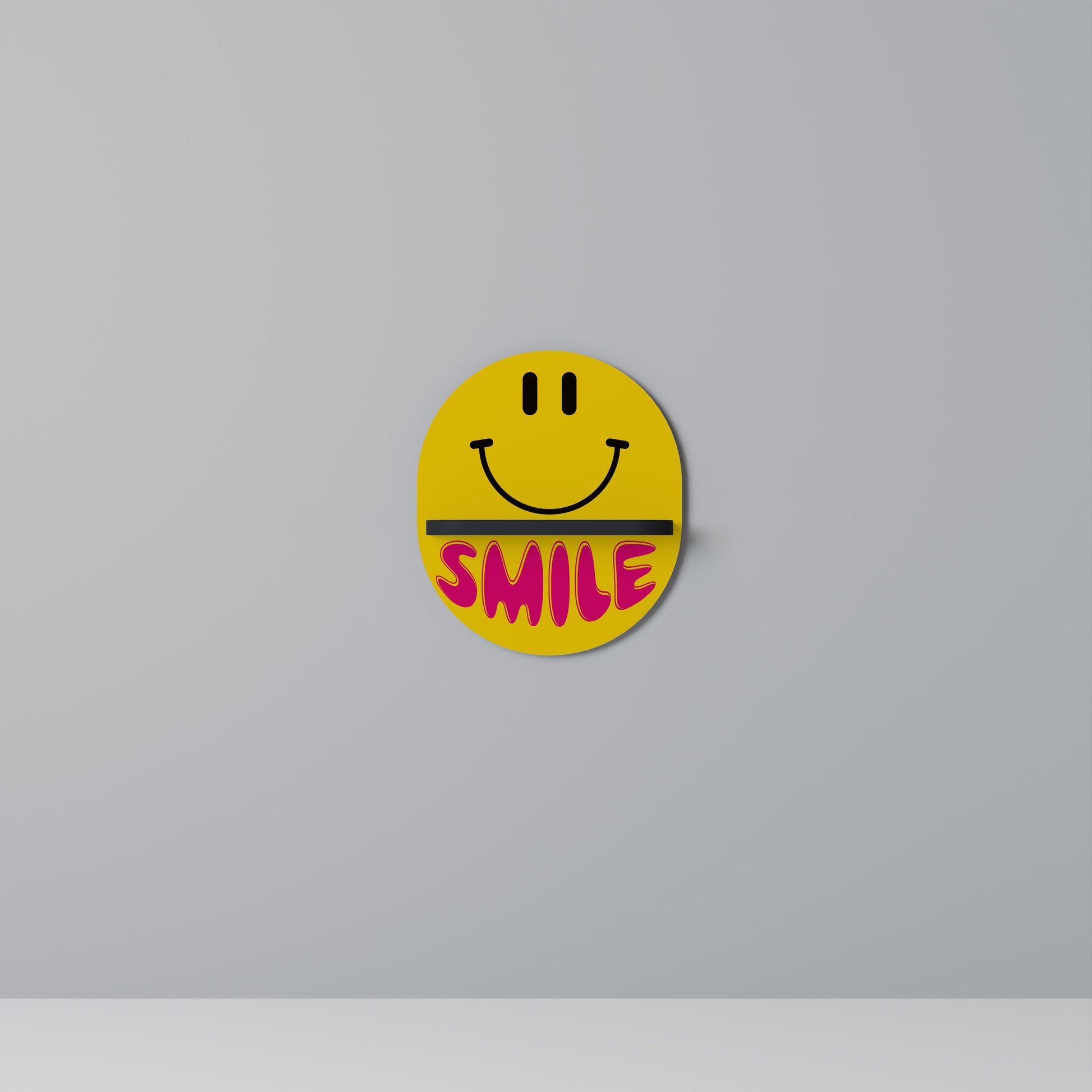 KEEP SMILING Oval Art Shelf In Black Finish