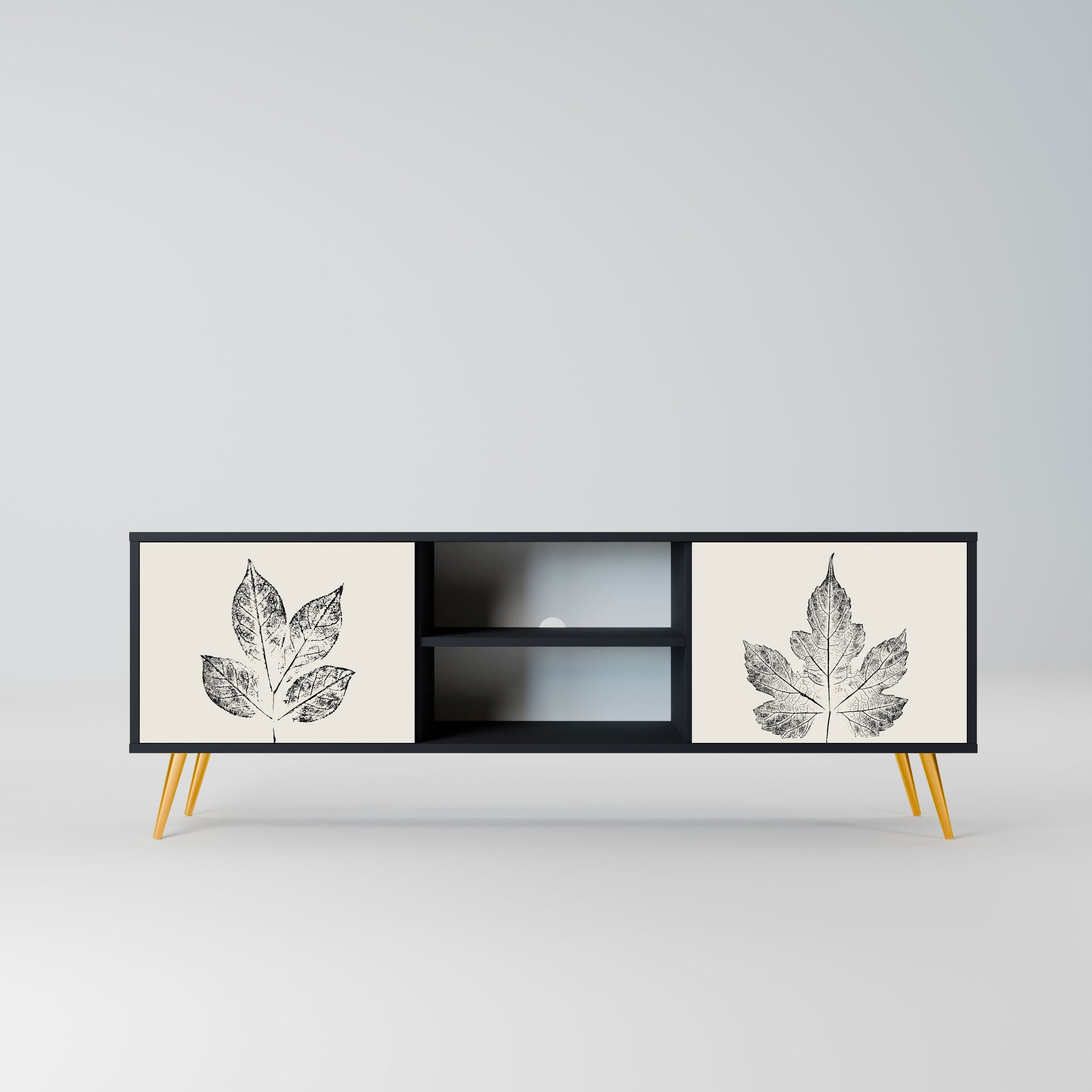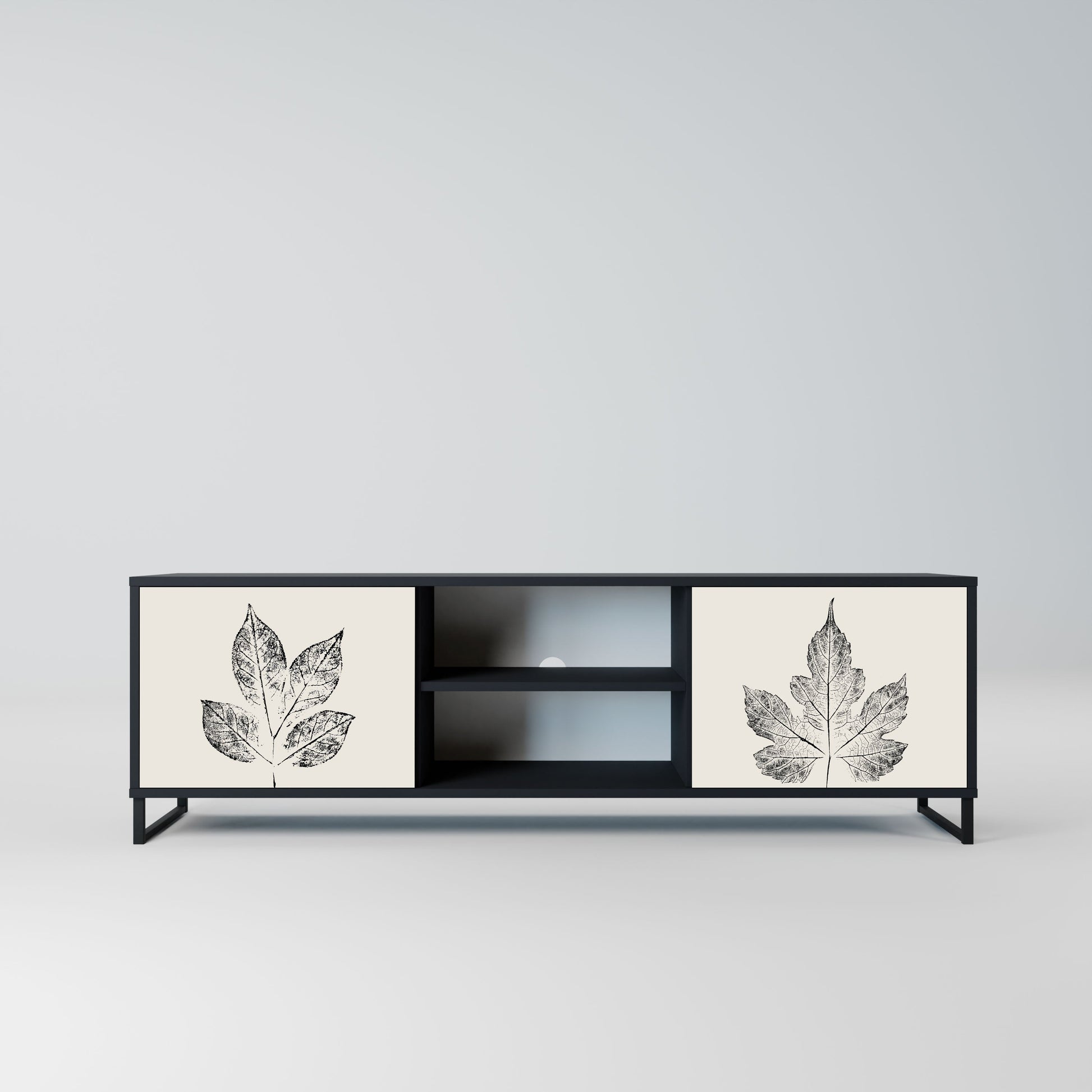 LEAFY STAMPS 2-Door TV Stand in Black Finish