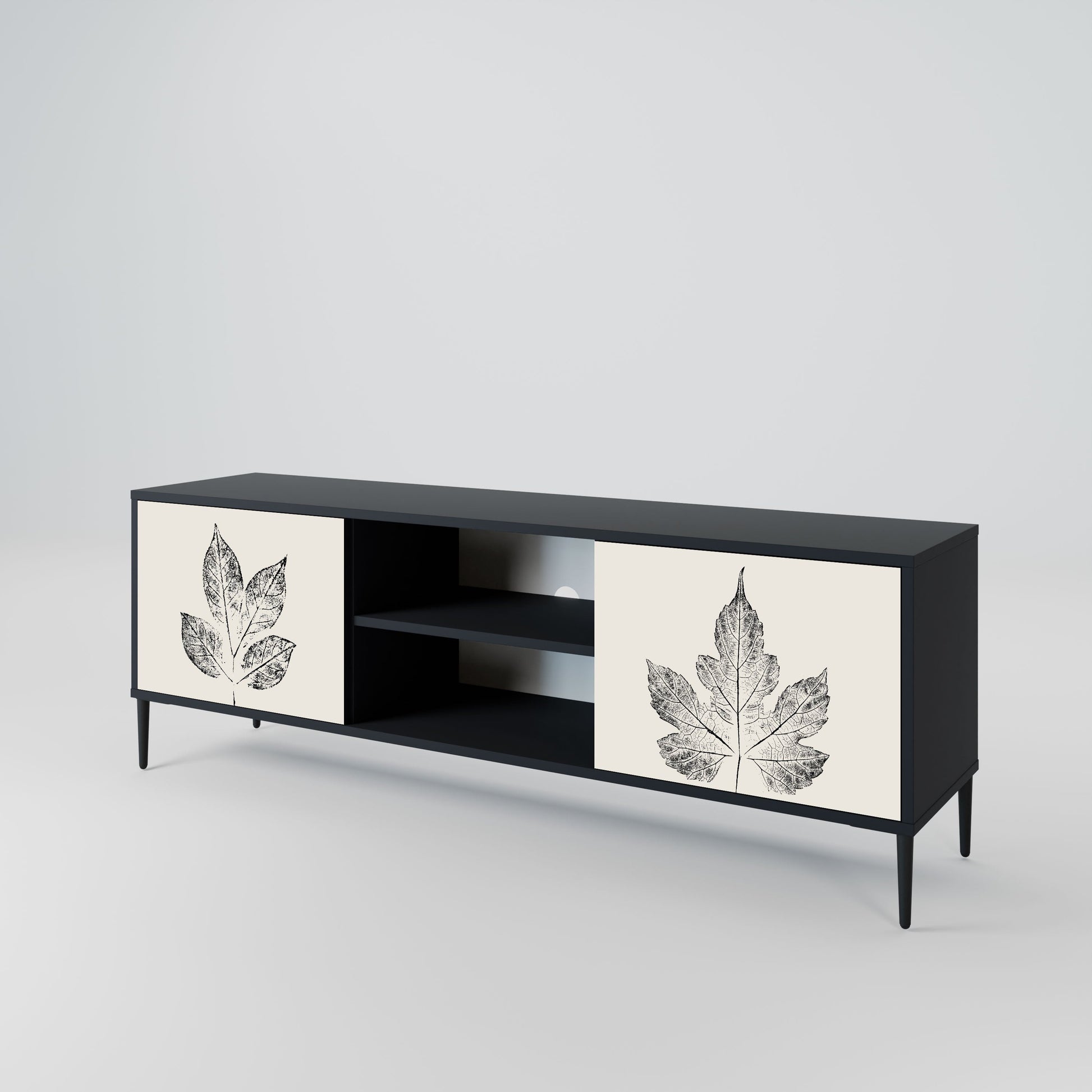 The black body gives the TV stand an elegant, modern look, while the fronts with an exceptional print draw attention, making it the focal point of any room. The spacious interior provides room for electronic devices, cables, remotes, and other accessories, helping you maintain order and organization.