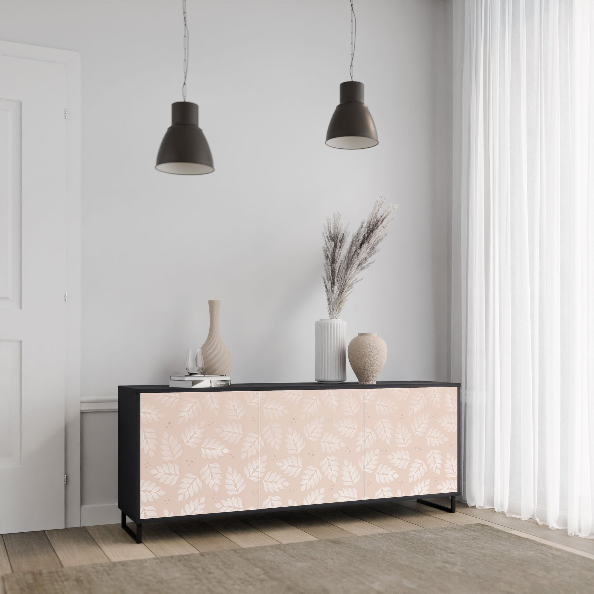 LEAVES ON BEIGE 3-Door Sideboard in Black Finish