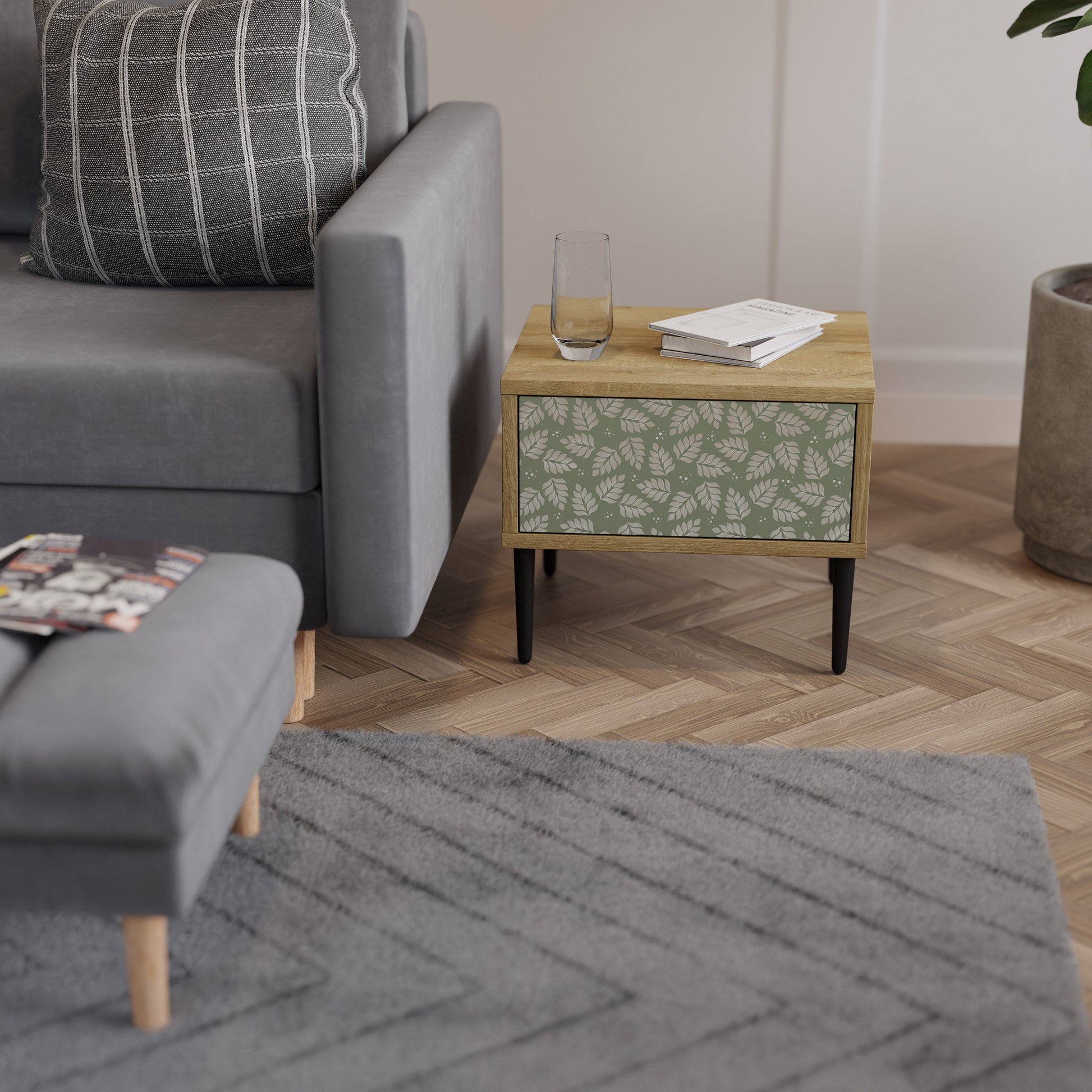 LEAVES ON GREEN Nightstand in Oak Effect