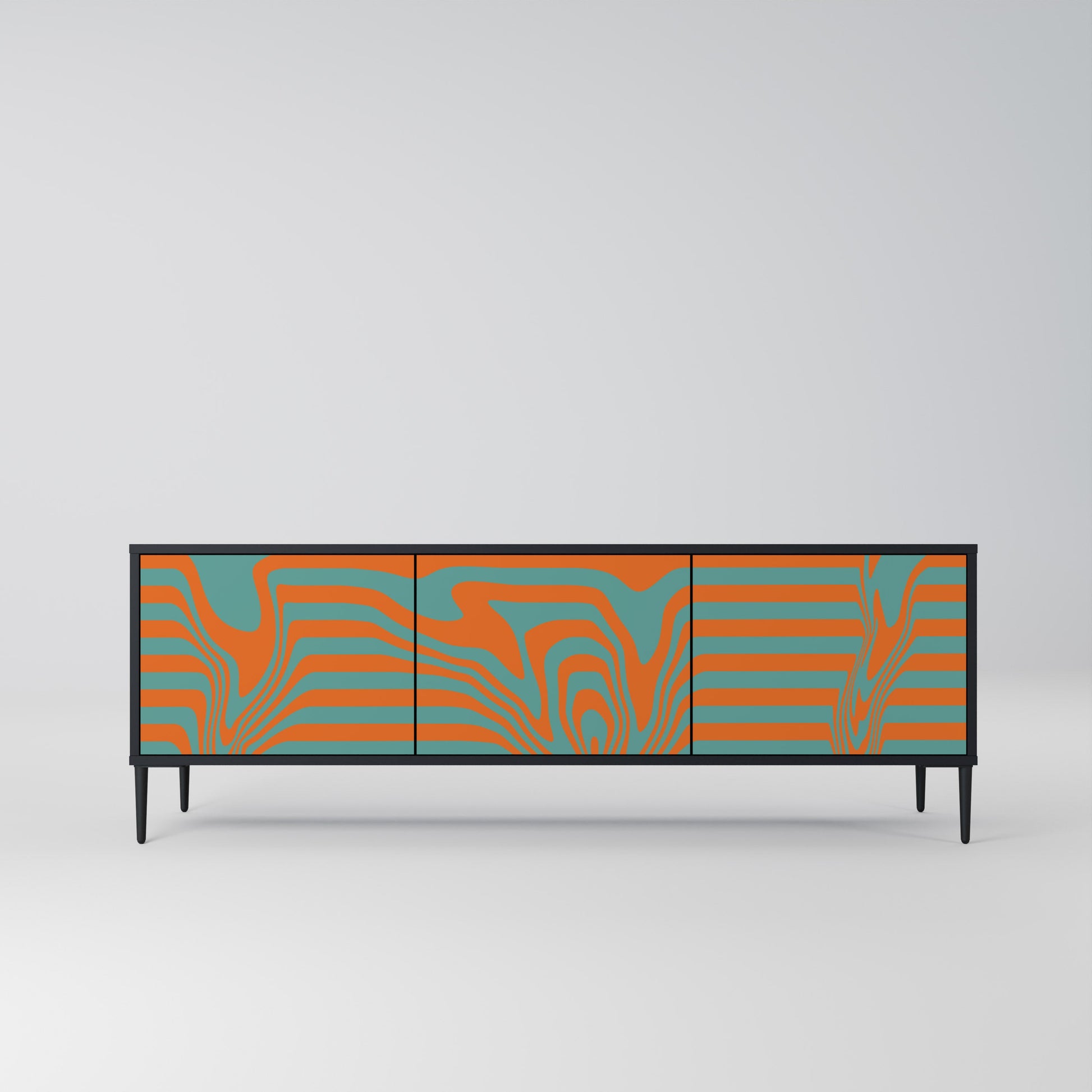 LINE COLLAPSE 3-Door TV Stand in Black Finish