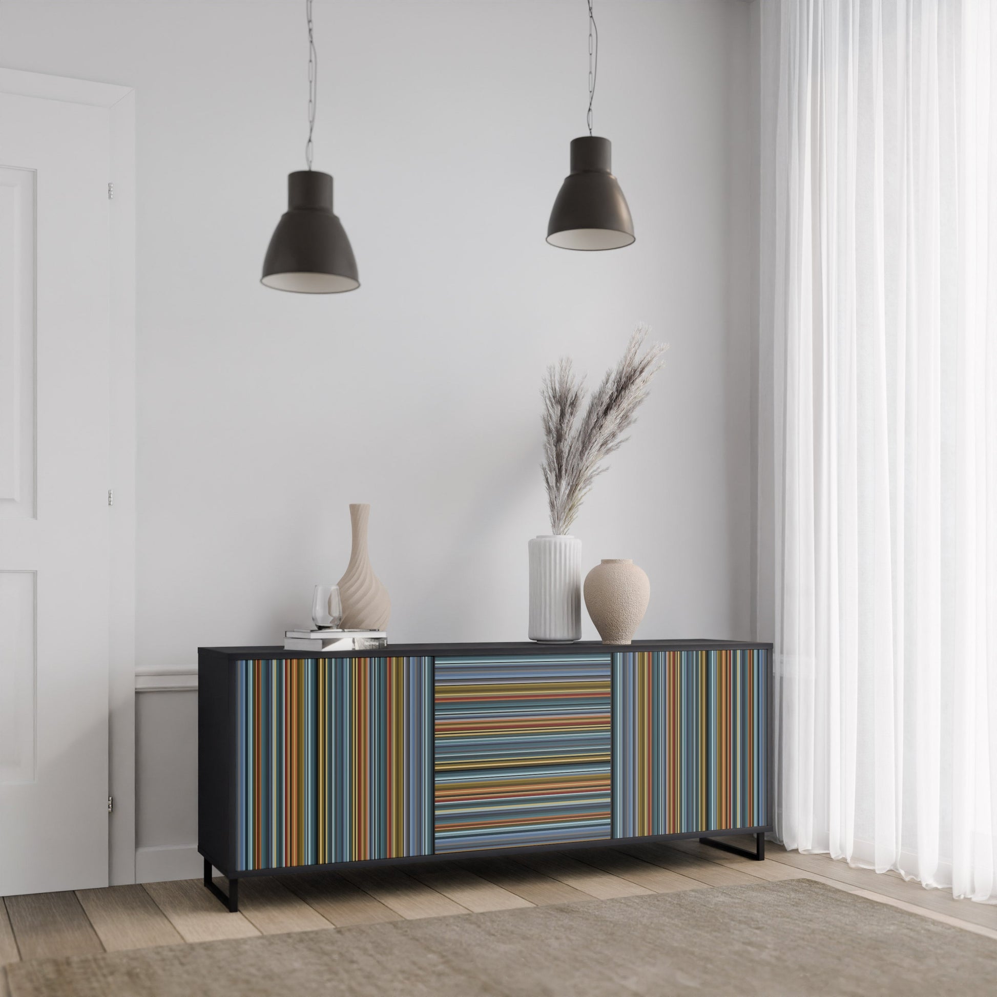 Elegance and functionality in a single piece of furniture – our 3-Door Sideboard with a black body is the perfect solution for lovers of stylish, modern interiors. The black body emphasizes the bold character of the furniture, while the fronts with a unique print add an artistic touch. It fits perfectly in the living room, bedroom, or office, complementing both modern and industrial arrangements.