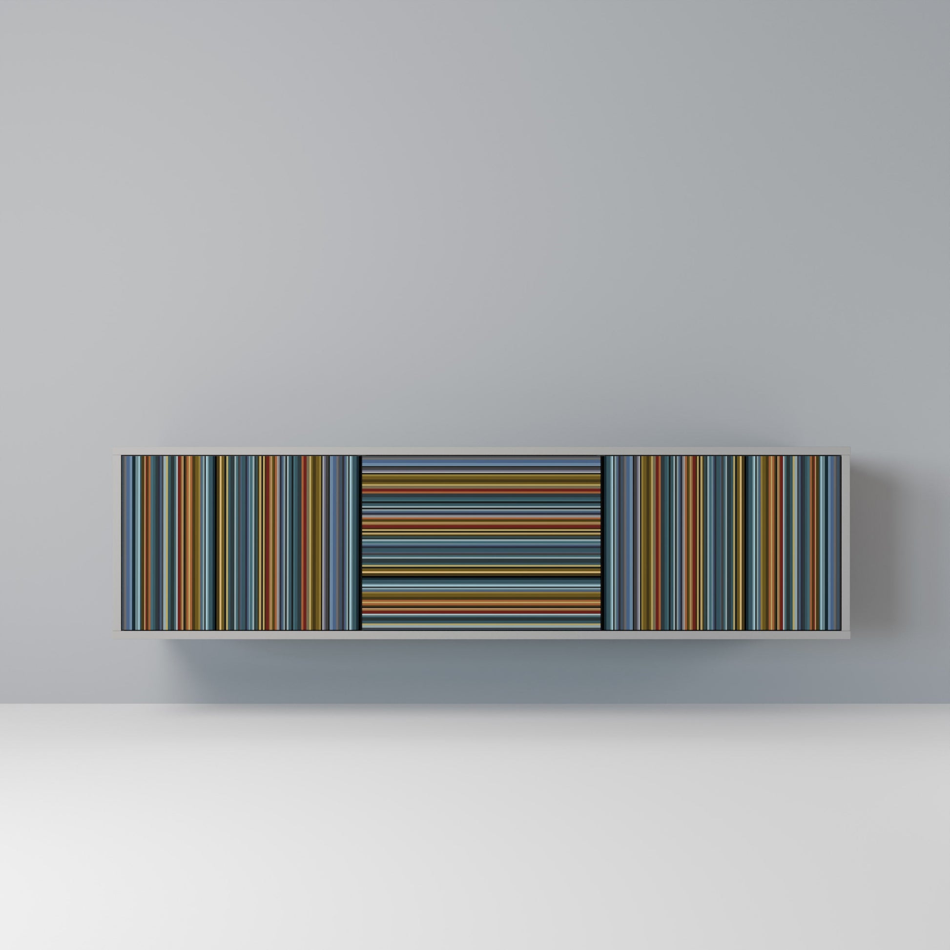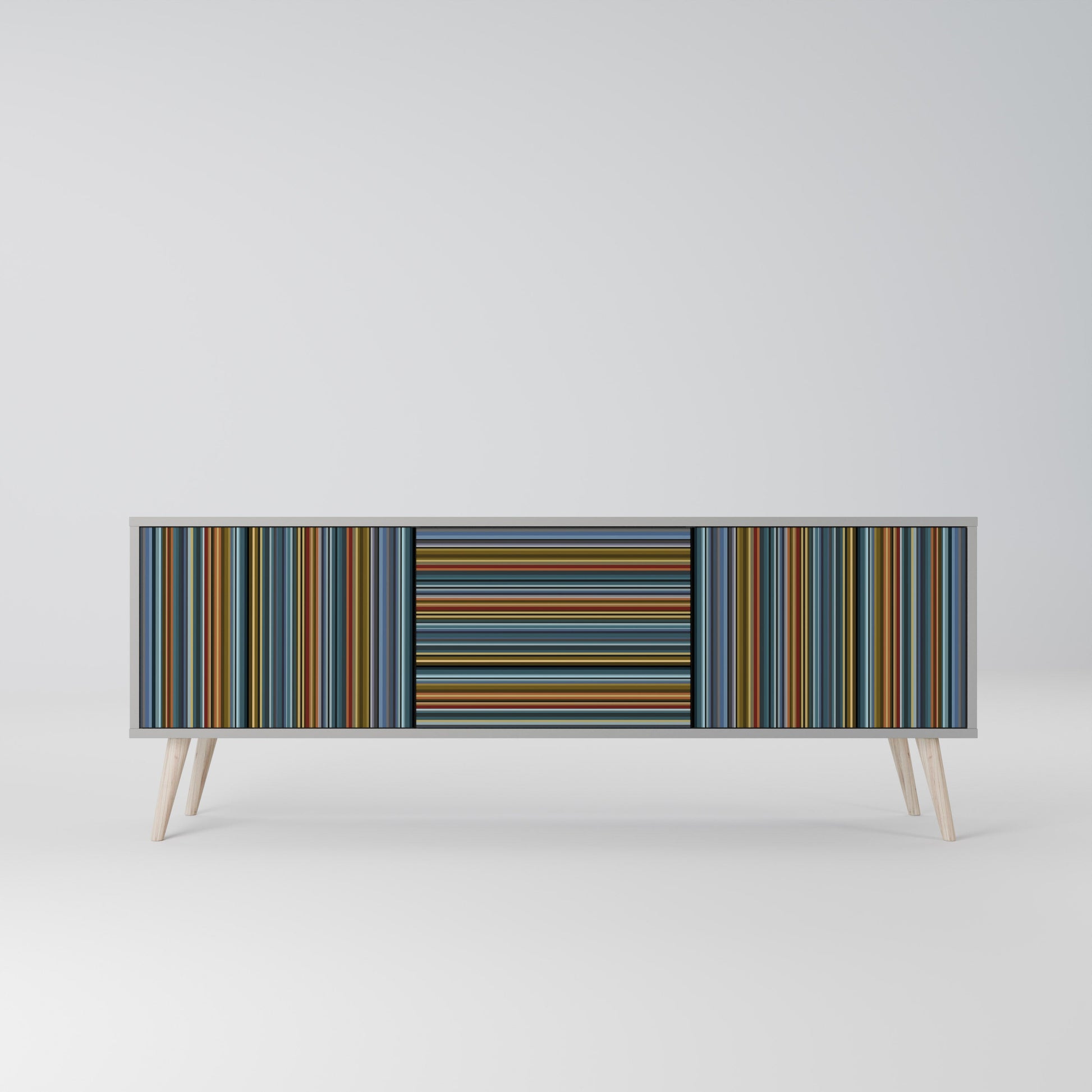 The grey body of the stand creates a refined, modern accent that pairs beautifully with industrial and minimalist arrangements. The fronts with a designer print add character and uniqueness, making this piece not only practical but also a standout decorative element.
