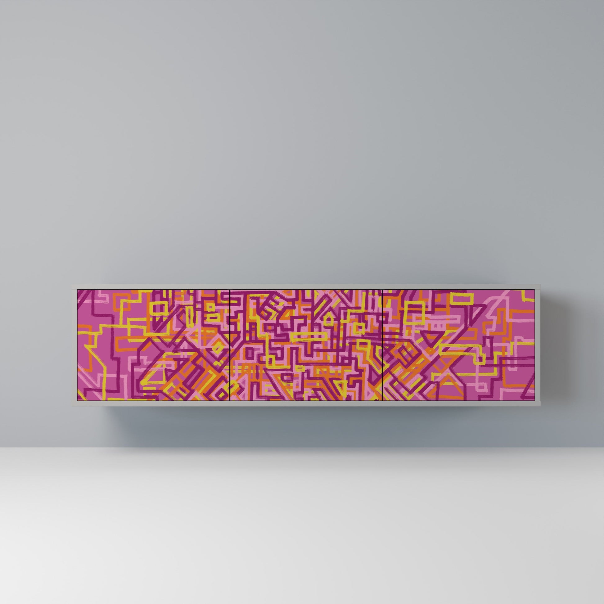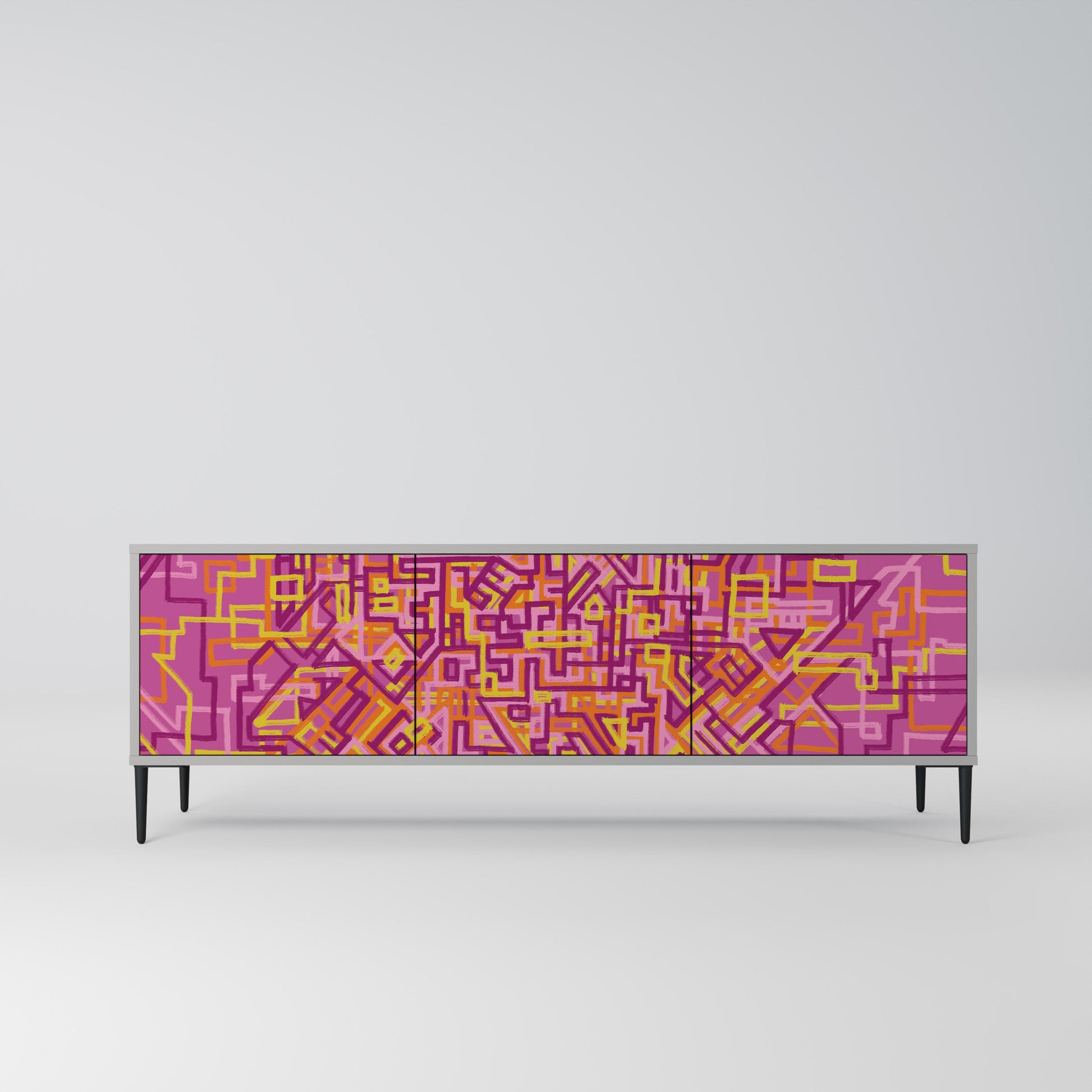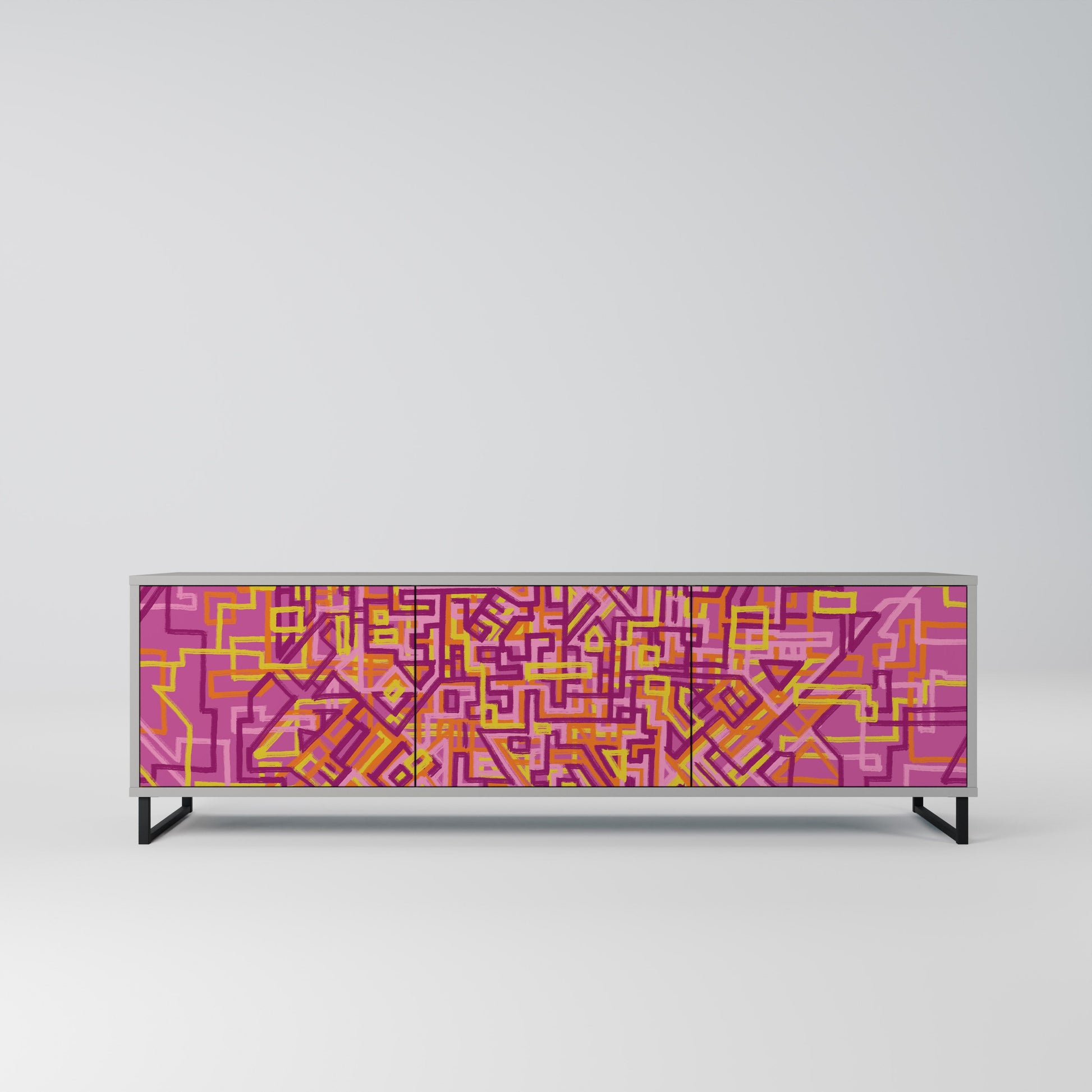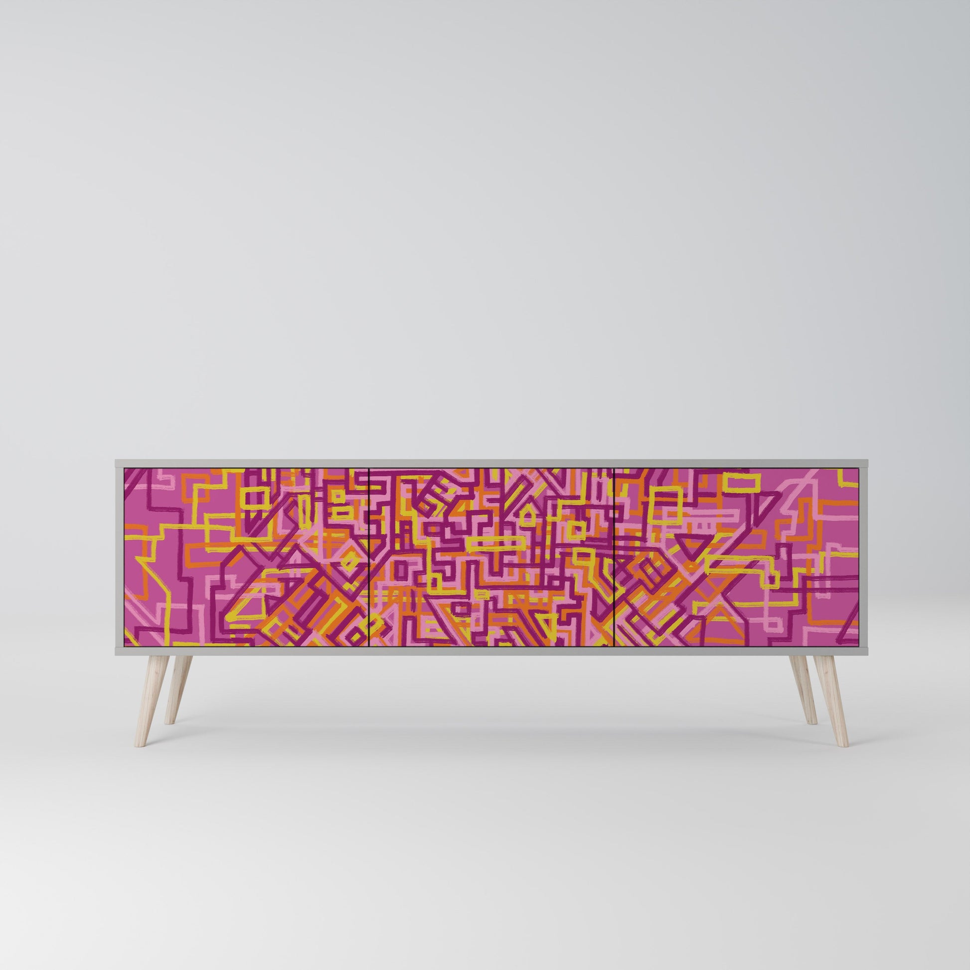 The grey body of the stand creates a refined, modern accent that pairs beautifully with industrial and minimalist arrangements. The fronts with a designer print add character and uniqueness, making this piece not only practical but also a standout decorative element.