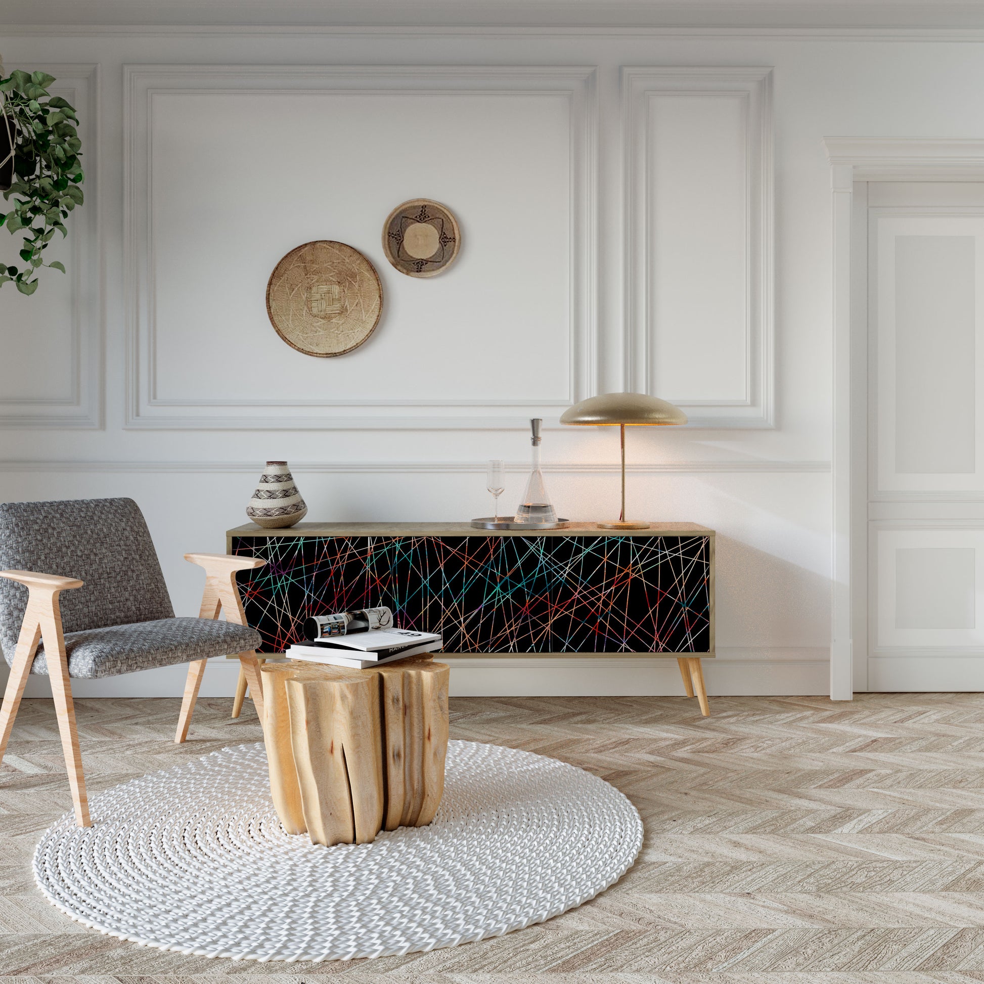 Discover the perfect solution for storage and organization with our 3-door TV stand. Crafted from durable materials, combining wooden legs with a laminated body, this cabinet is both stylish and functional. The wooden doors with an attractive print add a touch of elegance, making it an excellent choice for any interior.