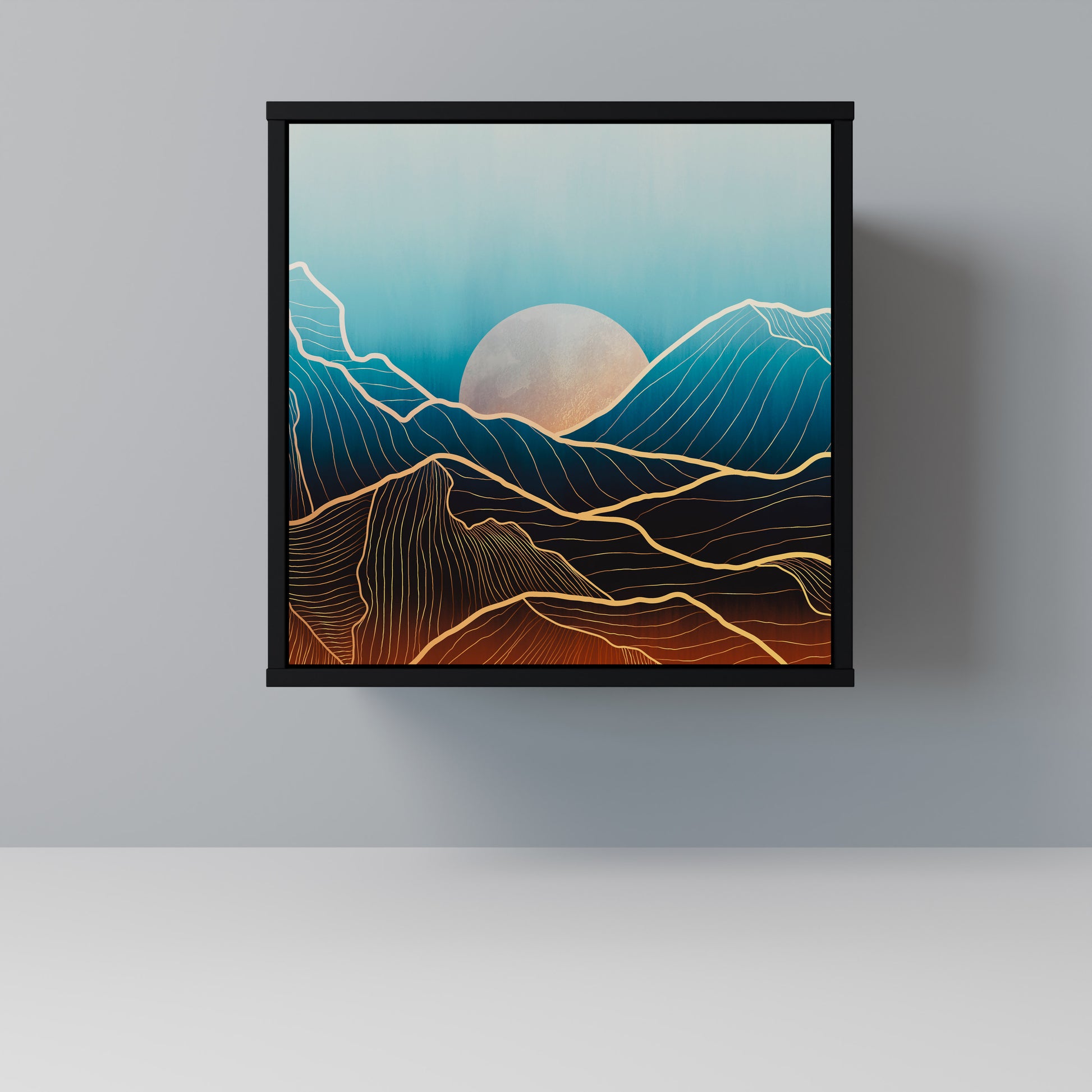 This compact yet remarkably elegant piece of furniture impresses with its minimalist design, perfectly fitting into both modern and classic interiors. The black body emphasizes the furniture’s bold character, while the fronts with a unique print add an artistic touch.