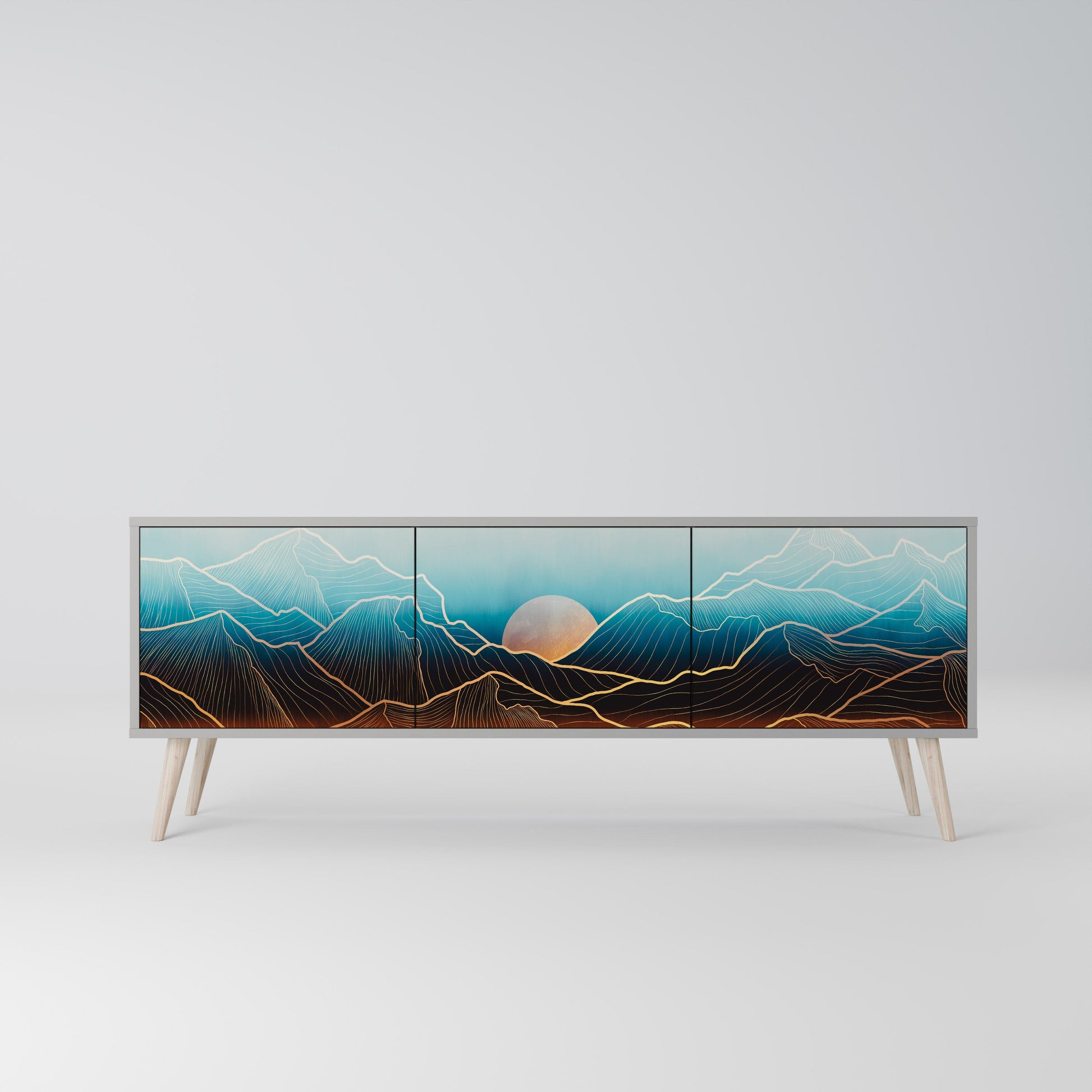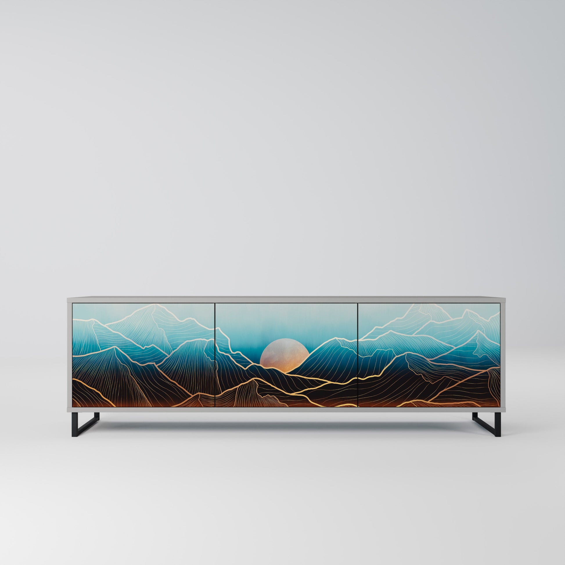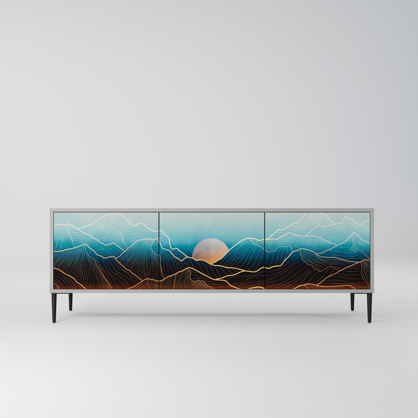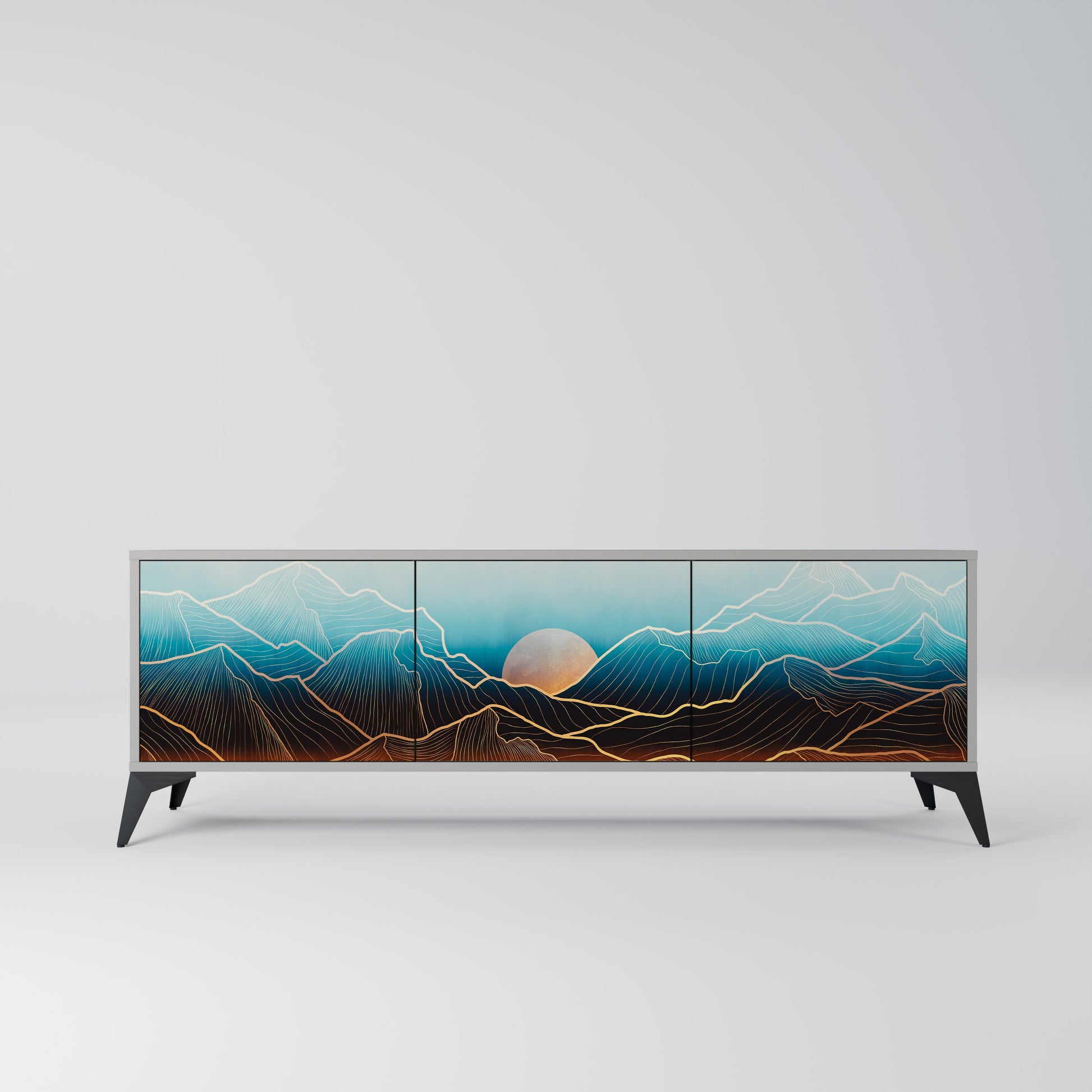 LUNAR SECRETS 3-Door TV Stand in Grey Finish