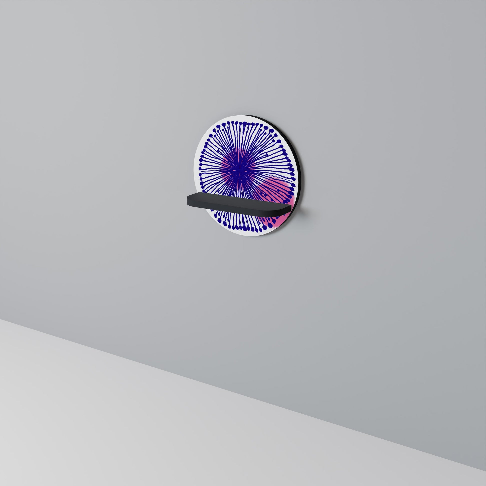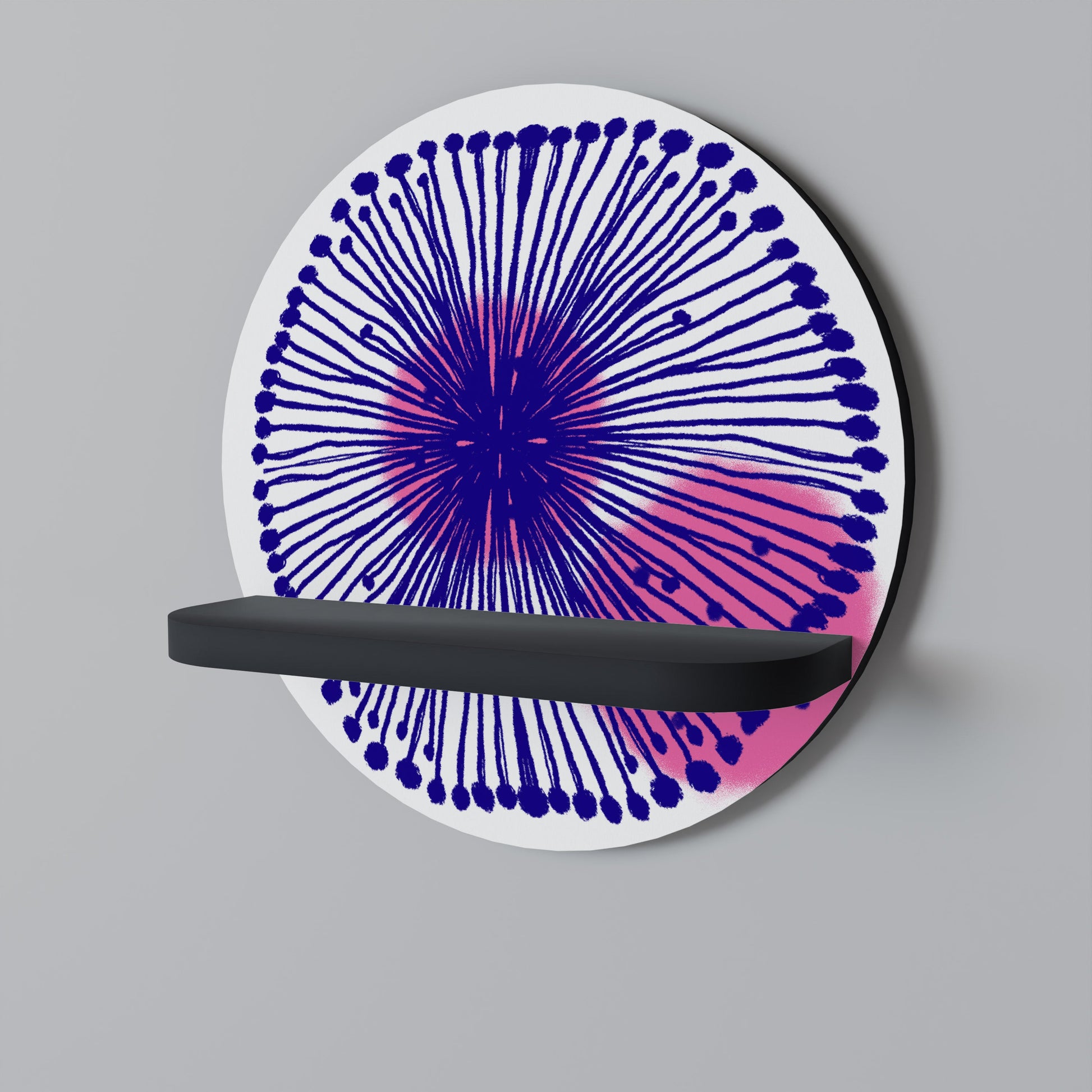 The shelf captivates with its smooth, round shape, adding a sense of balance and sophistication to any space. The deep black finish introduces a touch of contemporary elegance and visual contrast, making it a striking addition to both minimalist and industrial-style interiors.