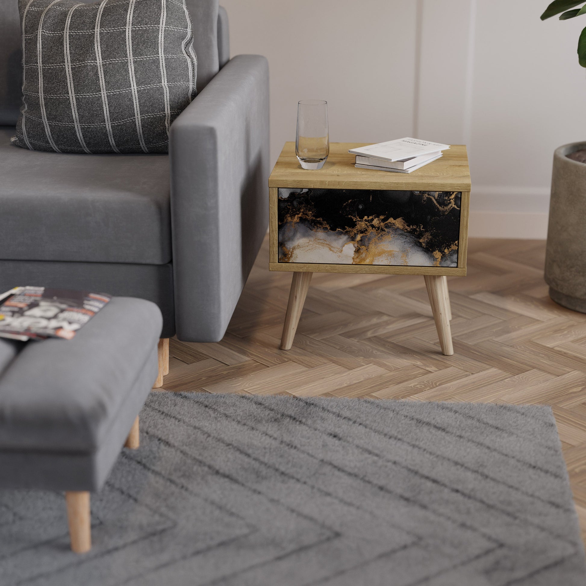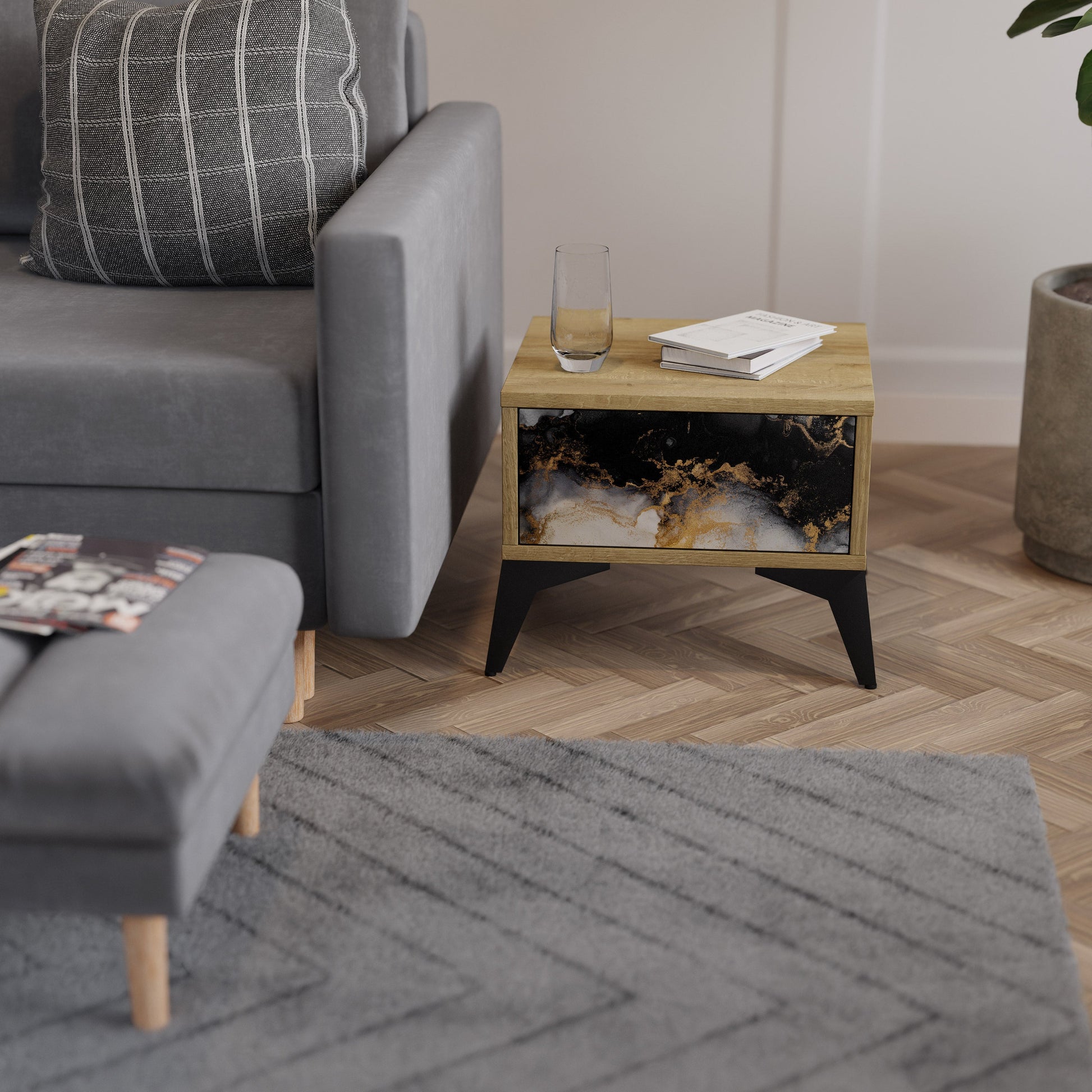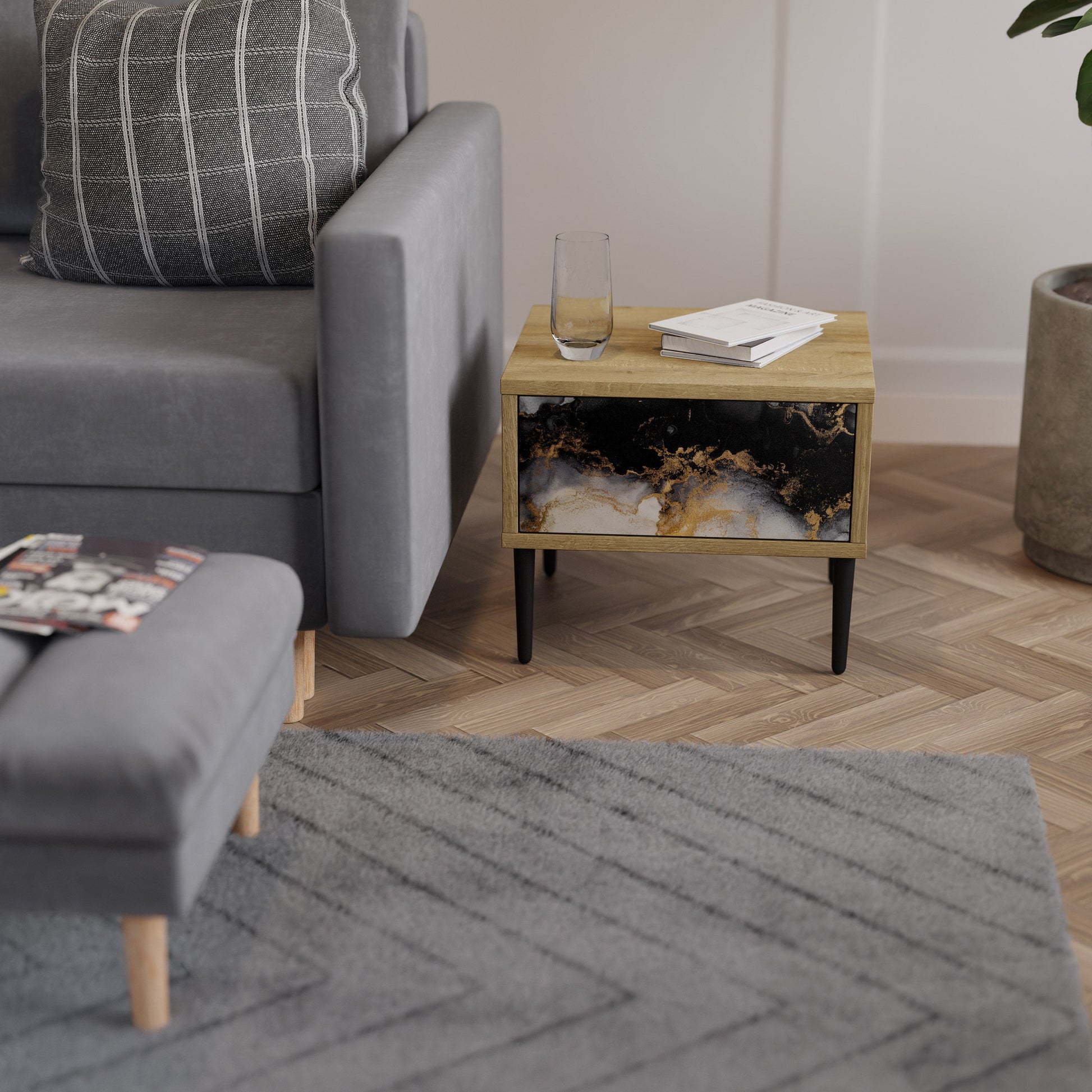 MARBLE OF TOMMORROW Nightstand in Oak Effect