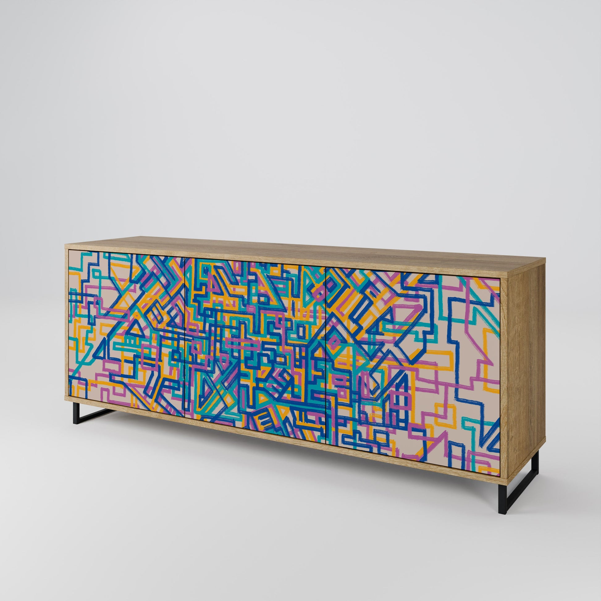 Discover the elegance and natural beauty of wood with our 3-door sideboard in oak finish. This stylish piece combines the sturdiness of a wooden body with the aesthetic detail of printed front doors, creating a cohesive and attractive design. Perfect for both the living room and bedroom, this sideboard adds a touch of class and functionality to any interior.