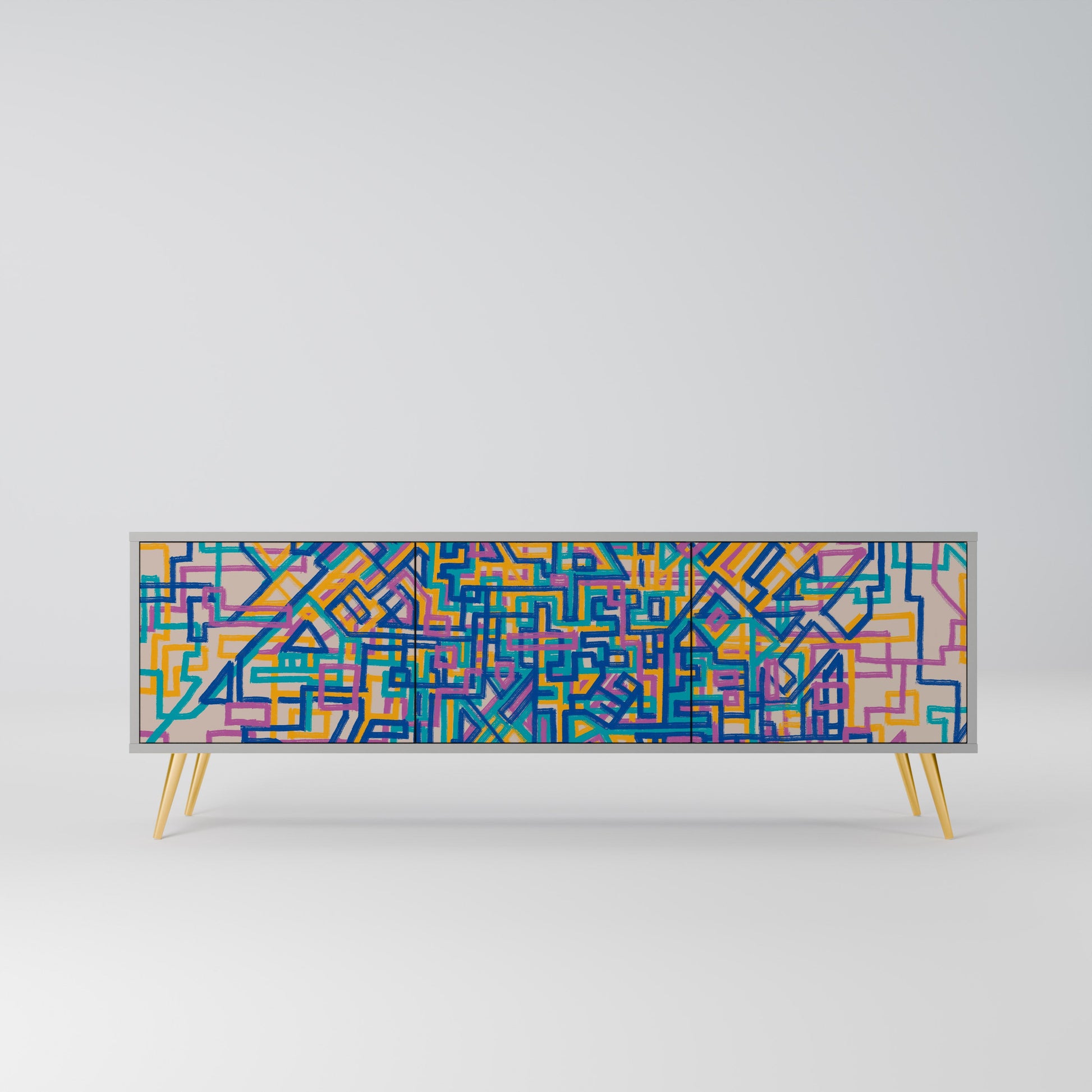 MEMORIES MAP 3-Door TV Stand in Grey Finish