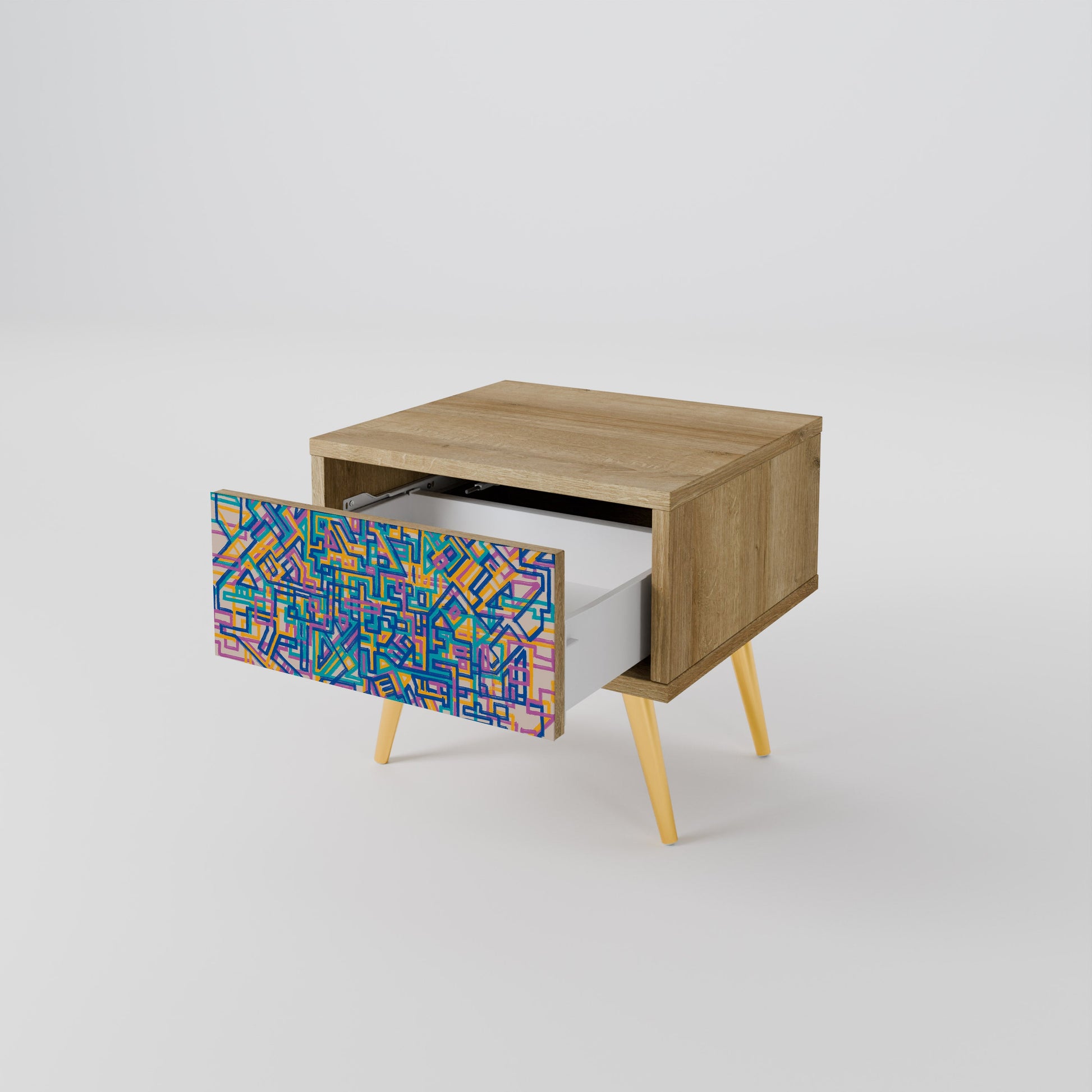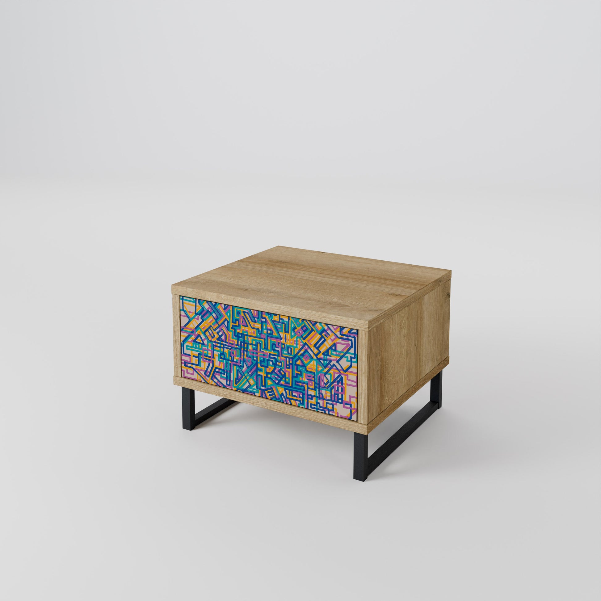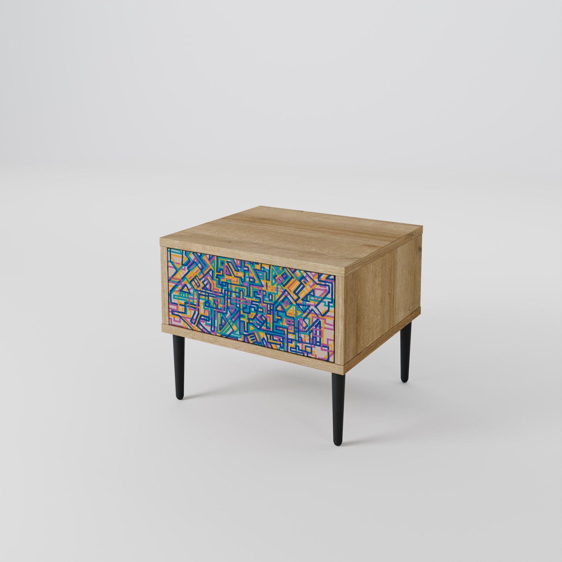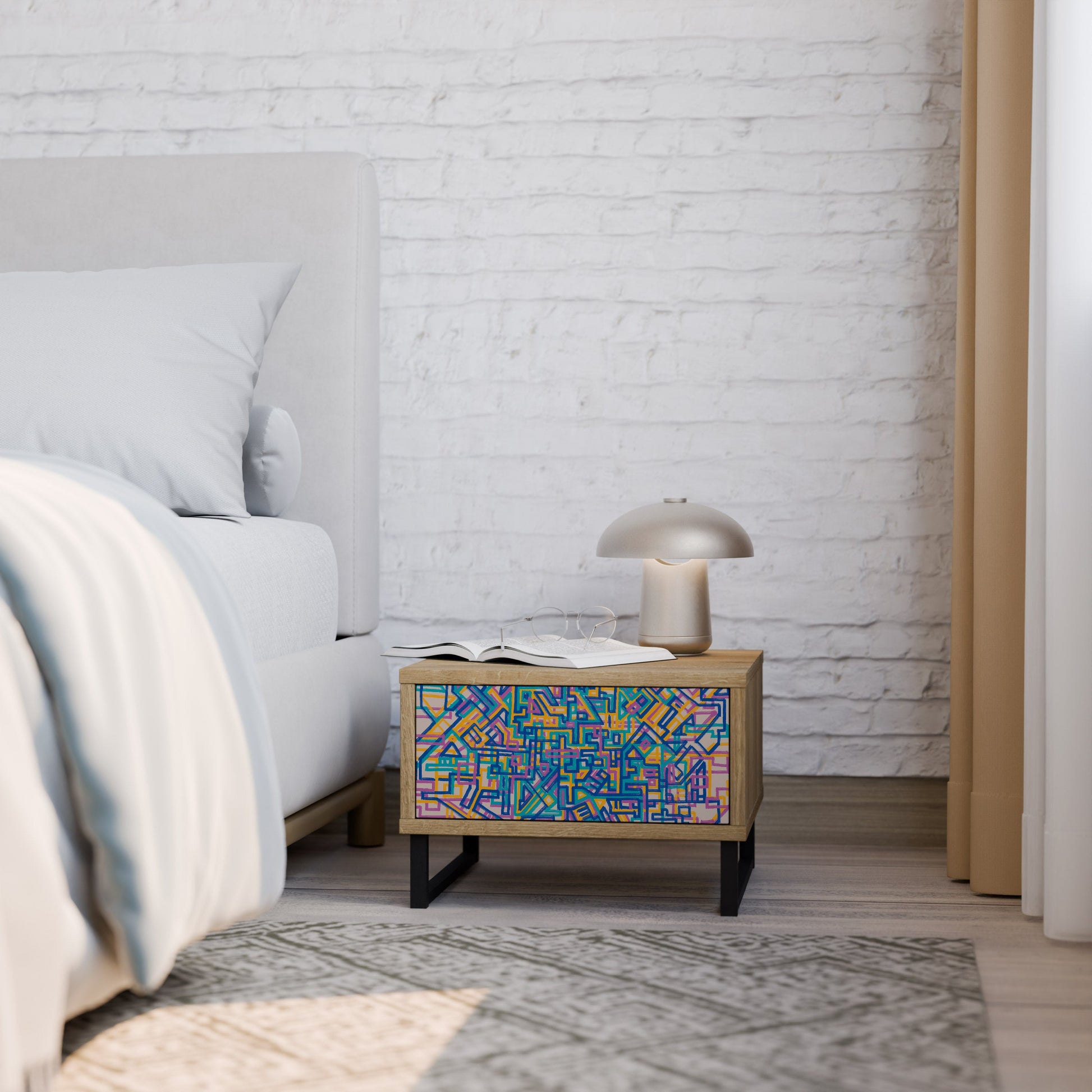 Discover functionality and elegance in a compact form with our bedside unit with a drawer. This practical and stylish piece of furniture perfectly combines the natural beauty of wood with modern design on the drawer front, creating a harmonious element for any bedroom.