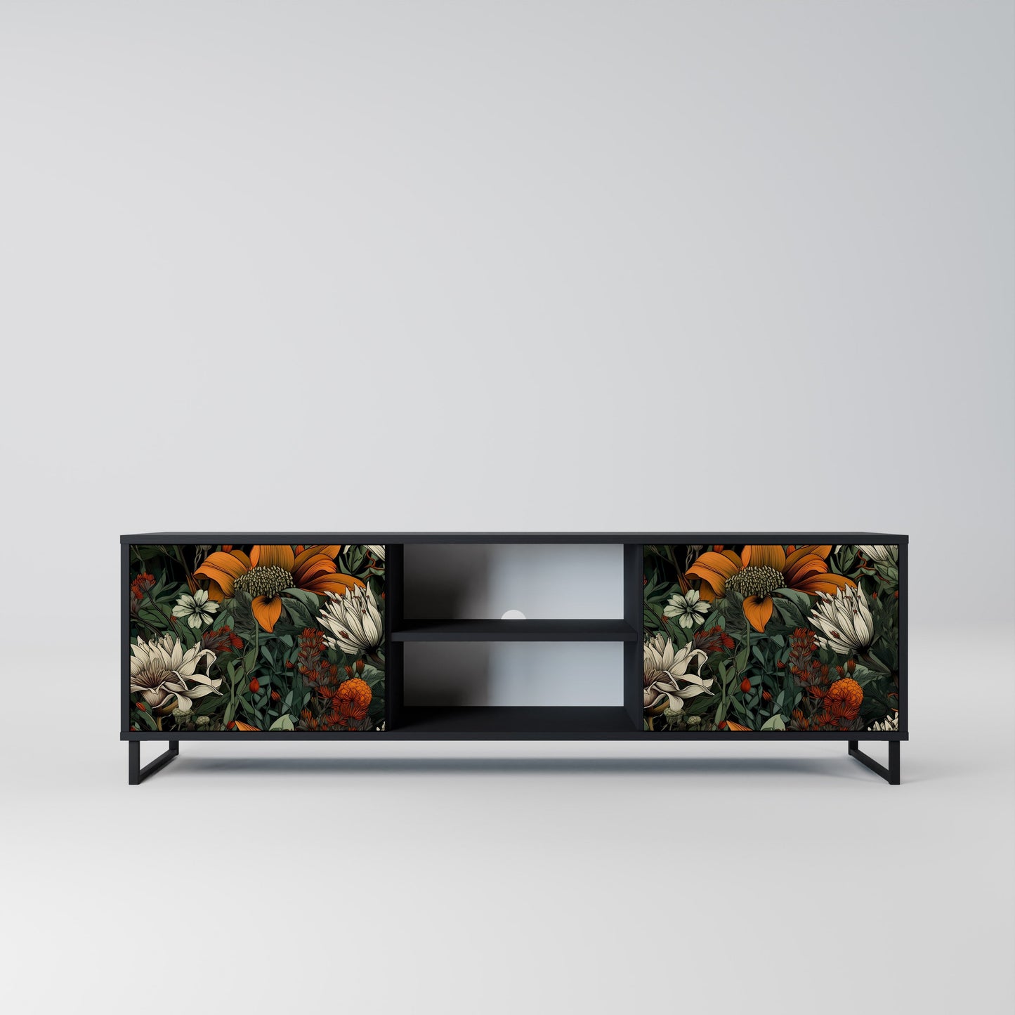 The black body gives the TV stand an elegant, modern look, while the fronts with an exceptional print draw attention, making it the focal point of any room. The spacious interior provides room for electronic devices, cables, remotes, and other accessories, helping you maintain order and organization.