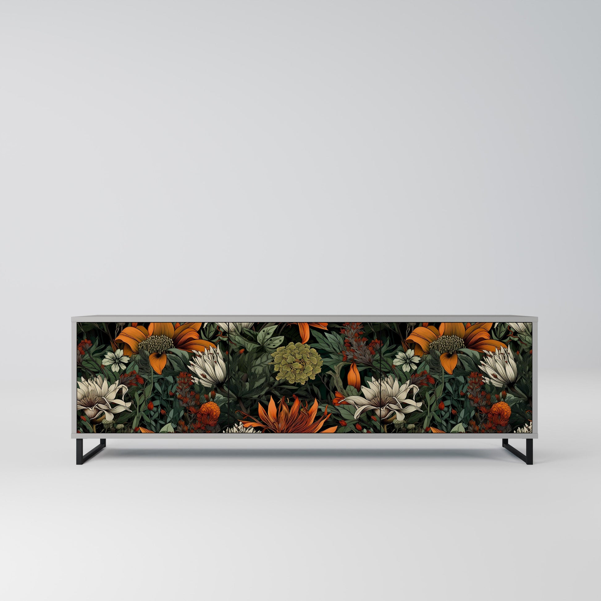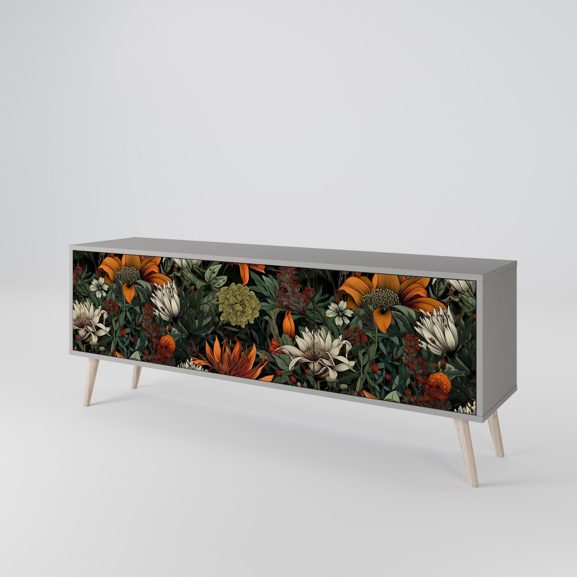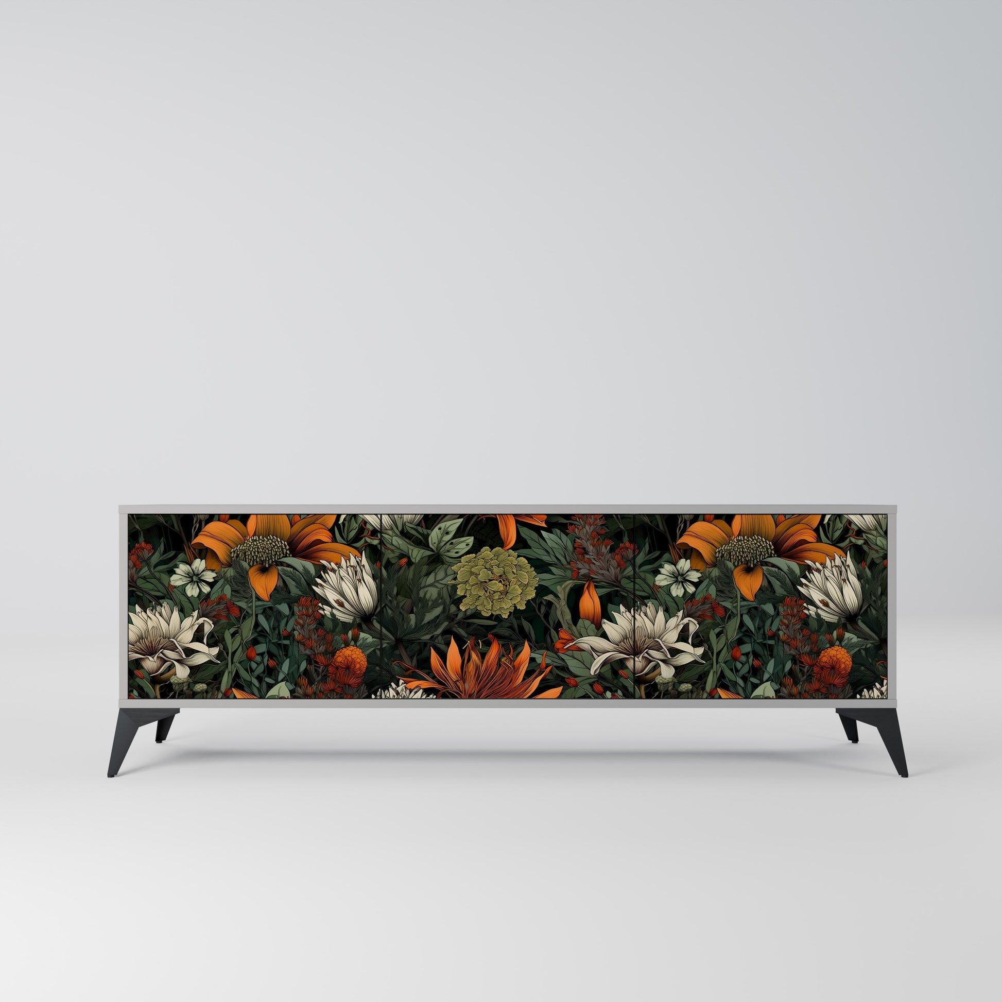 The grey body of the stand creates a refined, modern accent that pairs beautifully with industrial and minimalist arrangements. The fronts with a designer print add character and uniqueness, making this piece not only practical but also a standout decorative element.