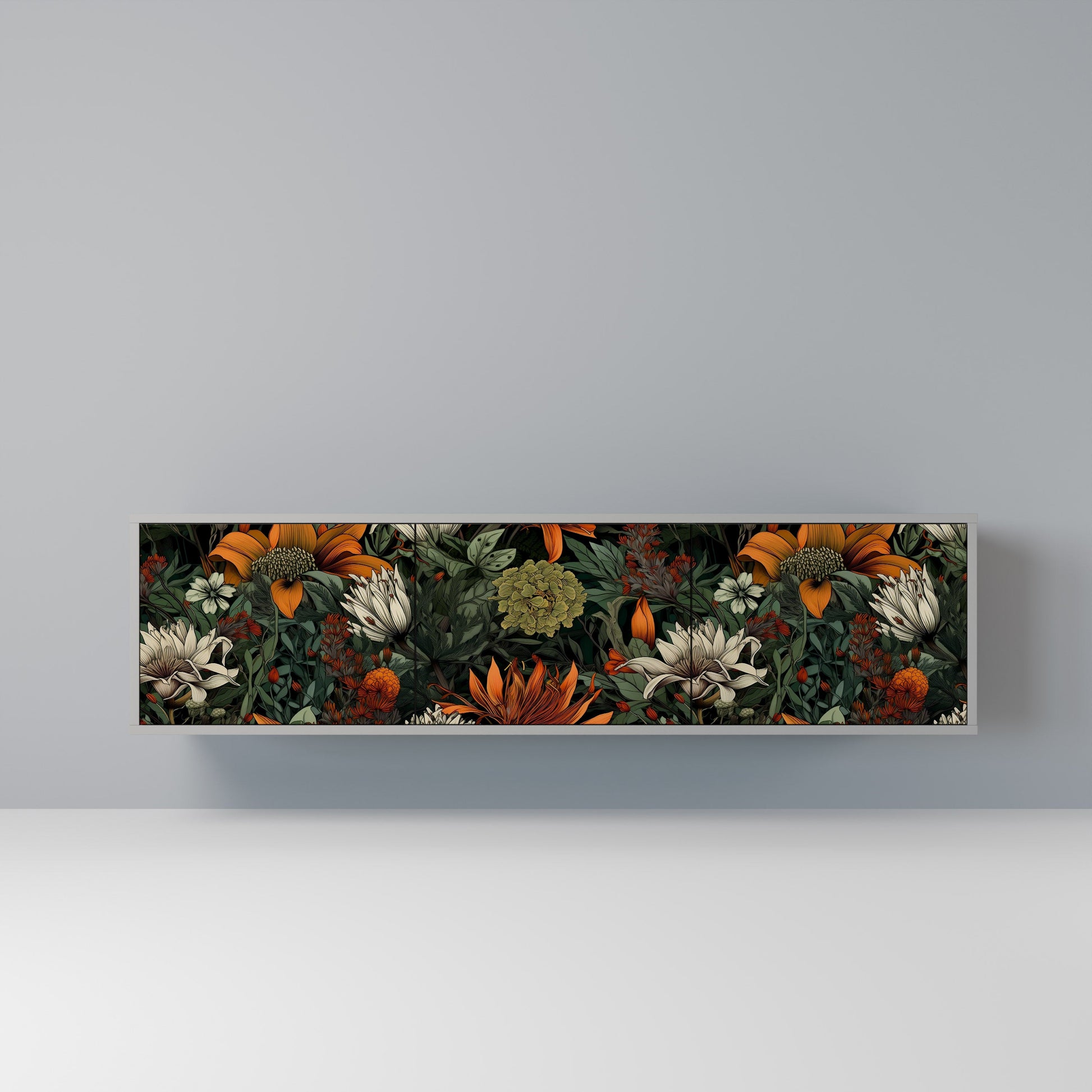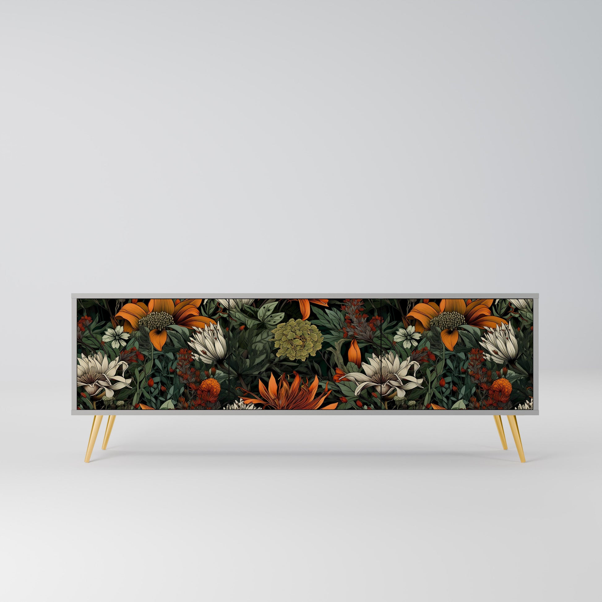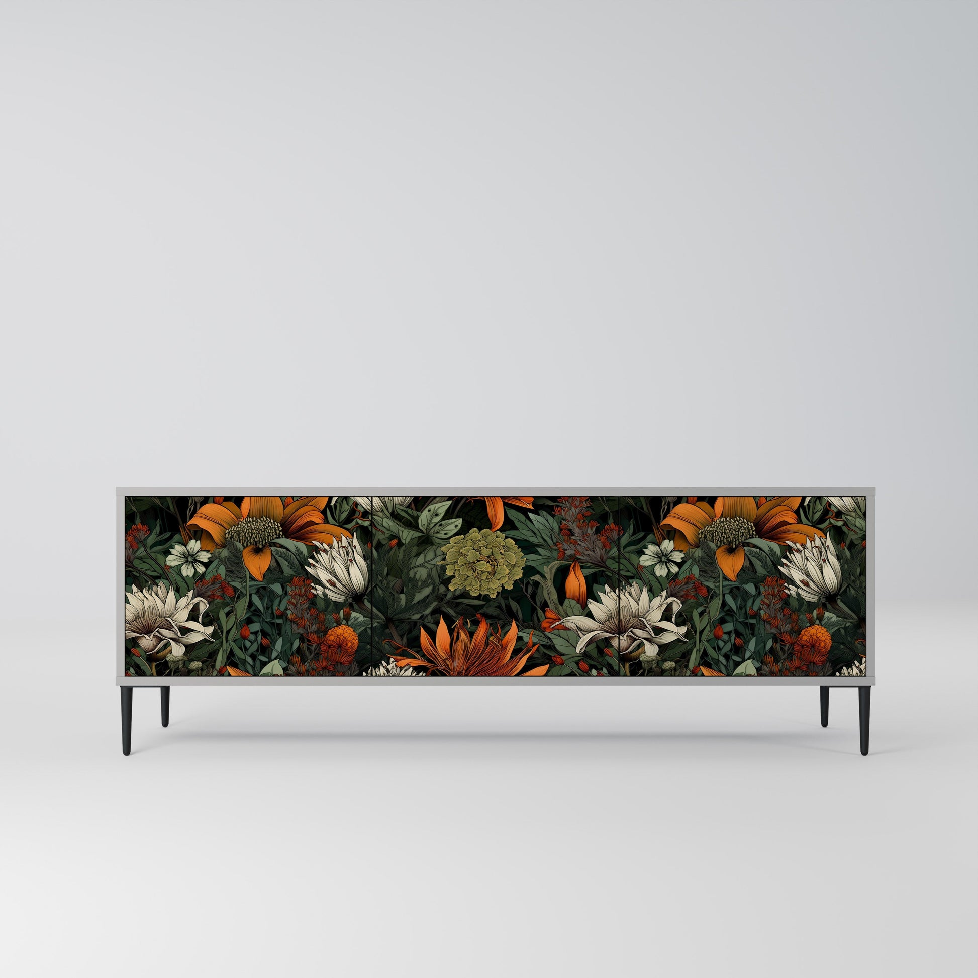 The grey body of the stand creates a refined, modern accent that pairs beautifully with industrial and minimalist arrangements. The fronts with a designer print add character and uniqueness, making this piece not only practical but also a standout decorative element.