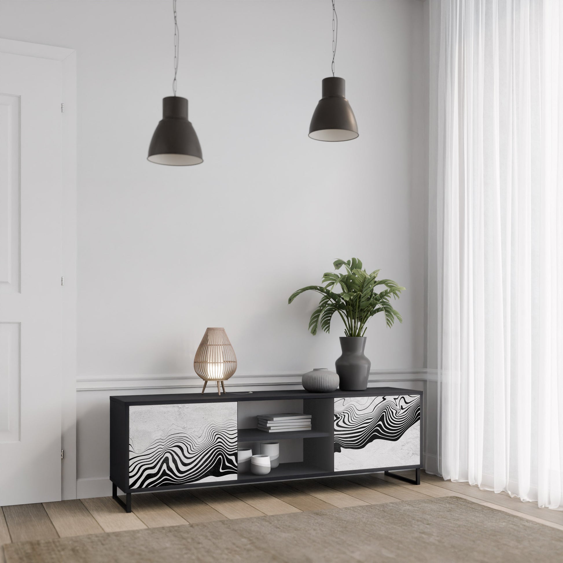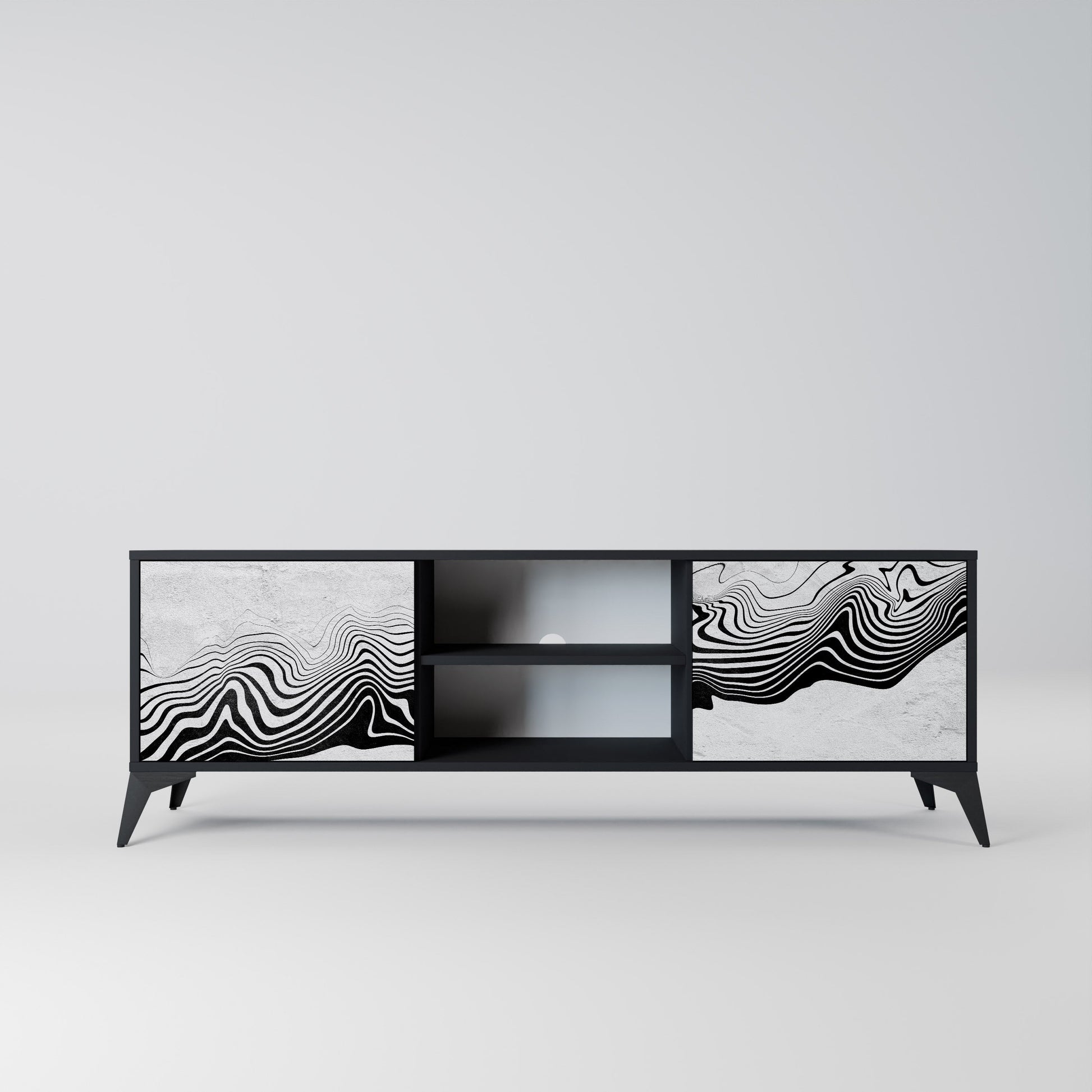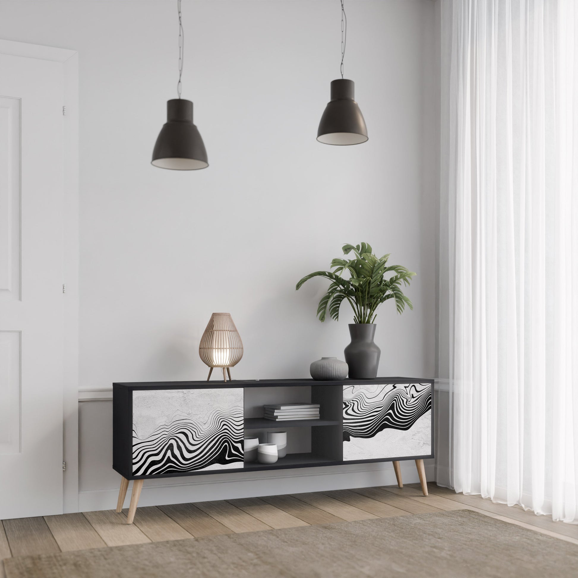 The black body gives the TV stand an elegant, modern look, while the fronts with an exceptional print draw attention, making it the focal point of any room. The spacious interior provides room for electronic devices, cables, remotes, and other accessories, helping you maintain order and organization.