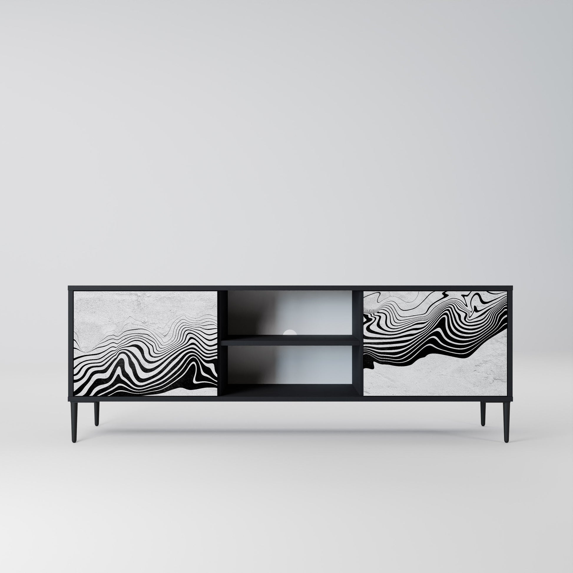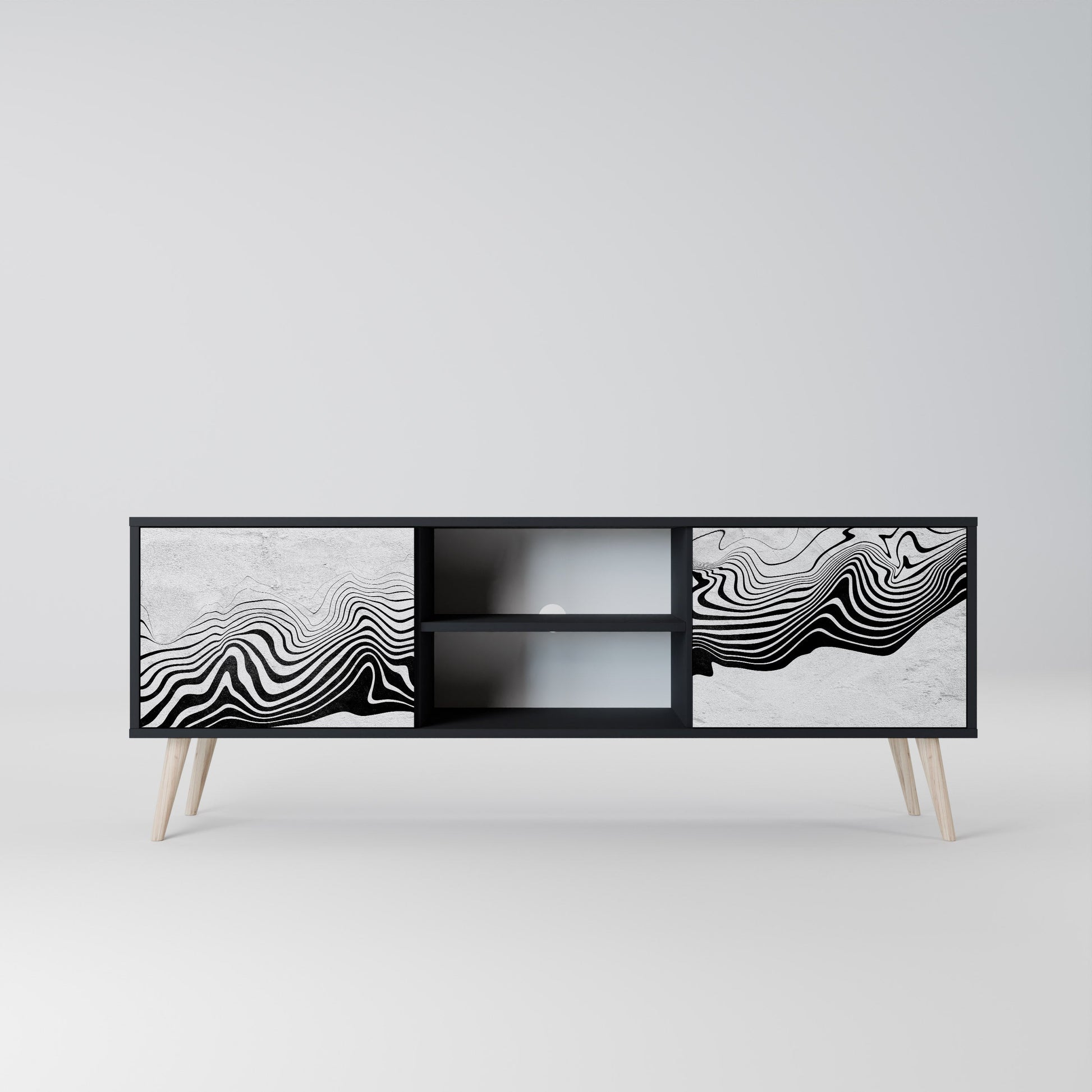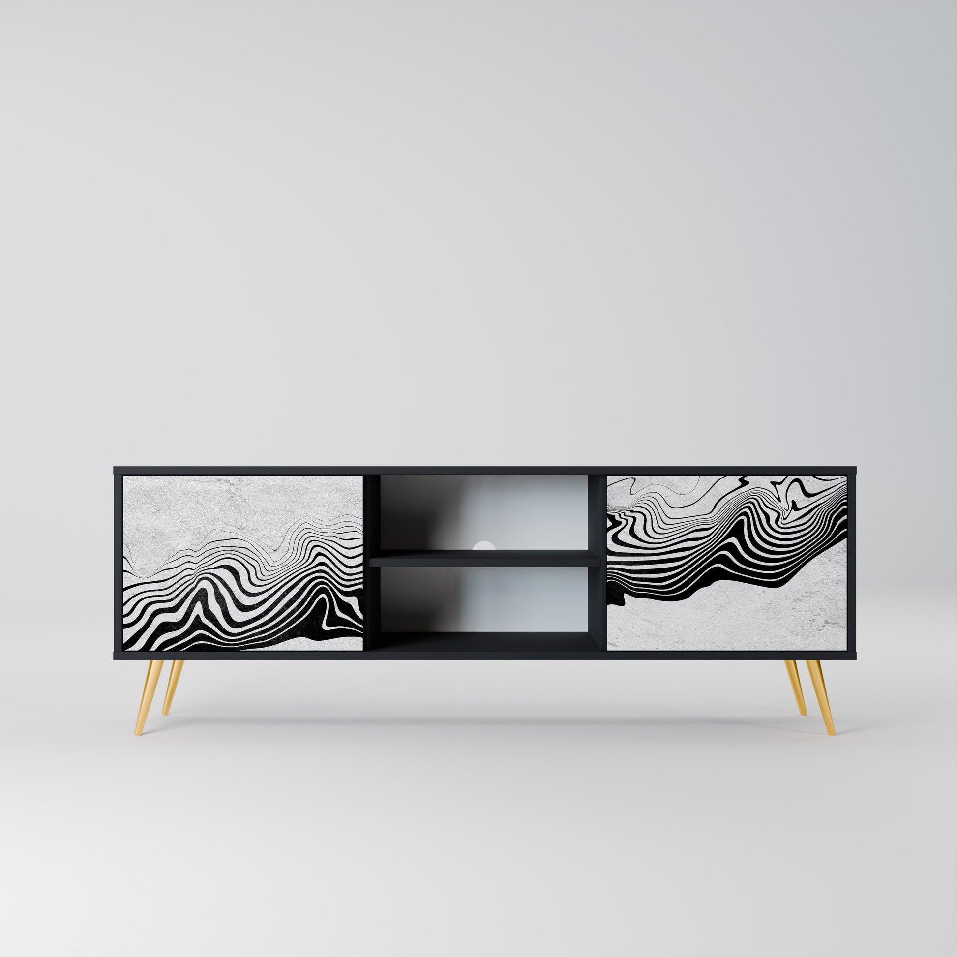 The black body gives the TV stand an elegant, modern look, while the fronts with an exceptional print draw attention, making it the focal point of any room. The spacious interior provides room for electronic devices, cables, remotes, and other accessories, helping you maintain order and organization.