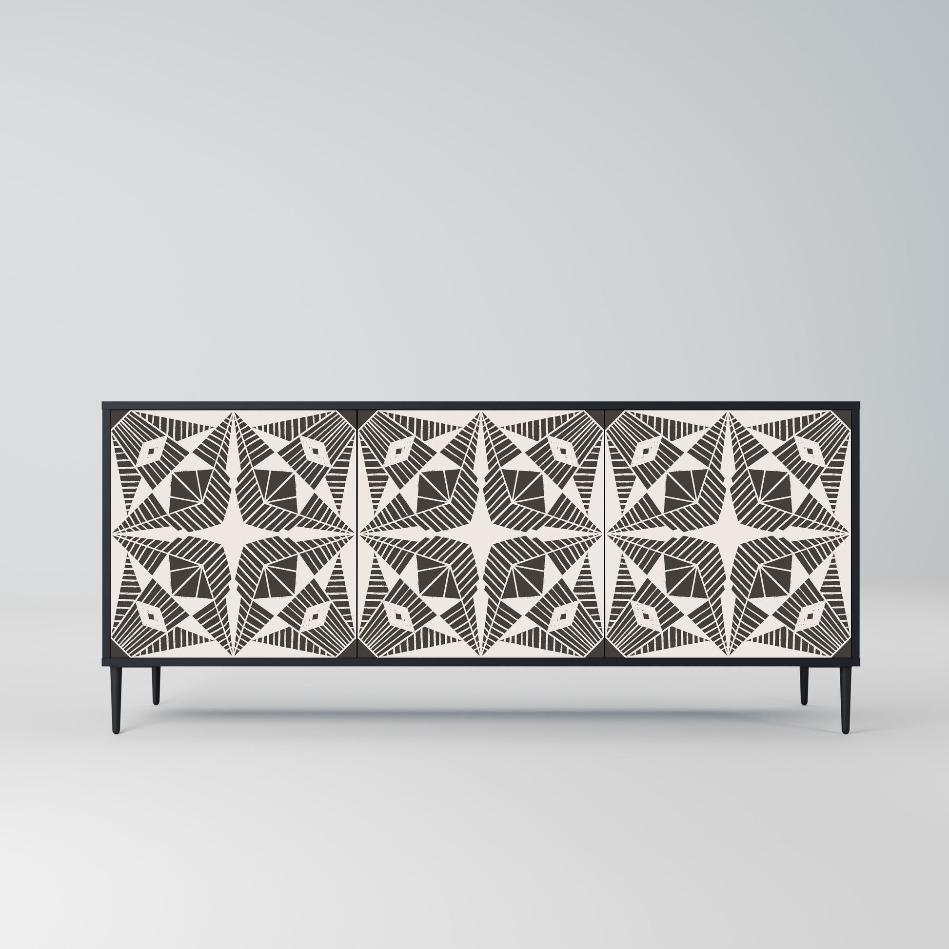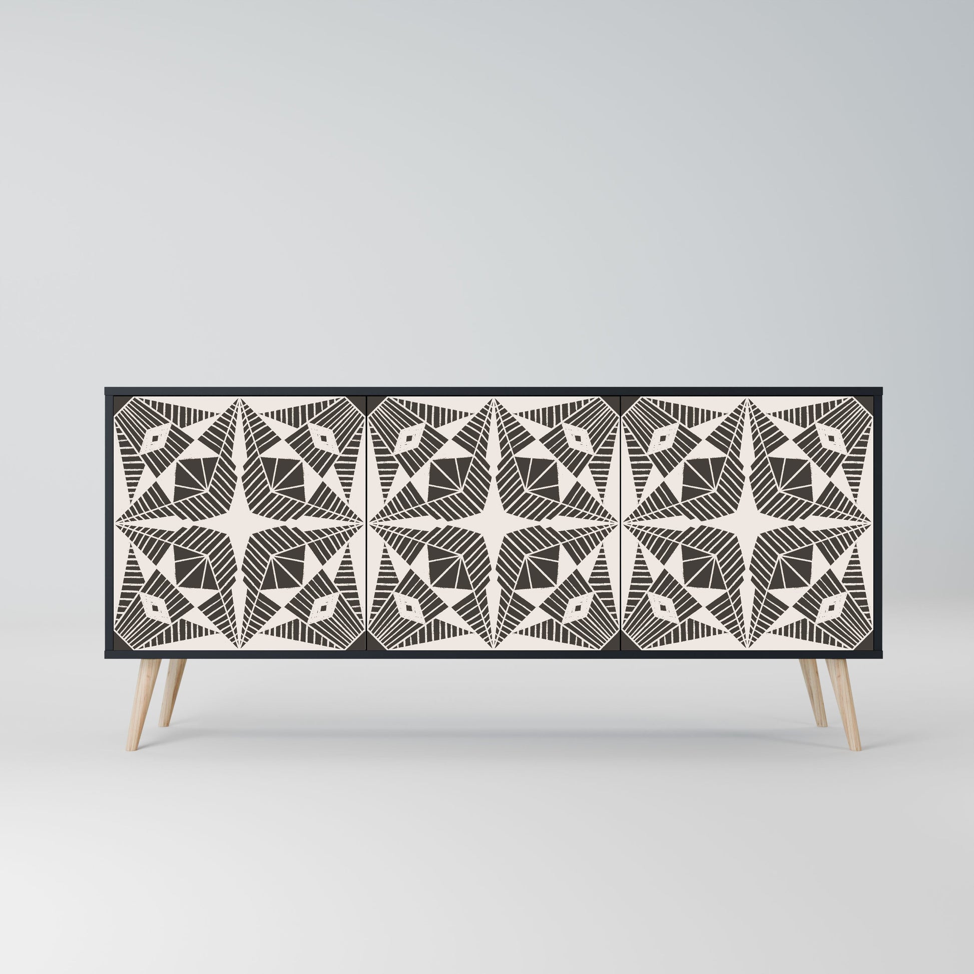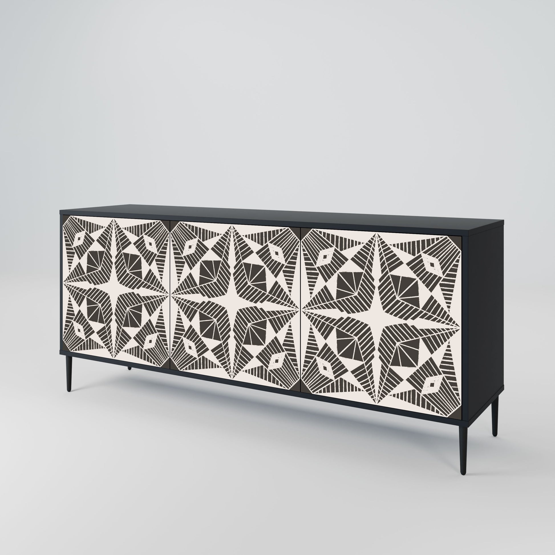 Elegance and functionality in a single piece of furniture – our 3-Door Sideboard with a black body is the perfect solution for lovers of stylish, modern interiors. The black body emphasizes the bold character of the furniture, while the fronts with a unique print add an artistic touch. It fits perfectly in the living room, bedroom, or office, complementing both modern and industrial arrangements.