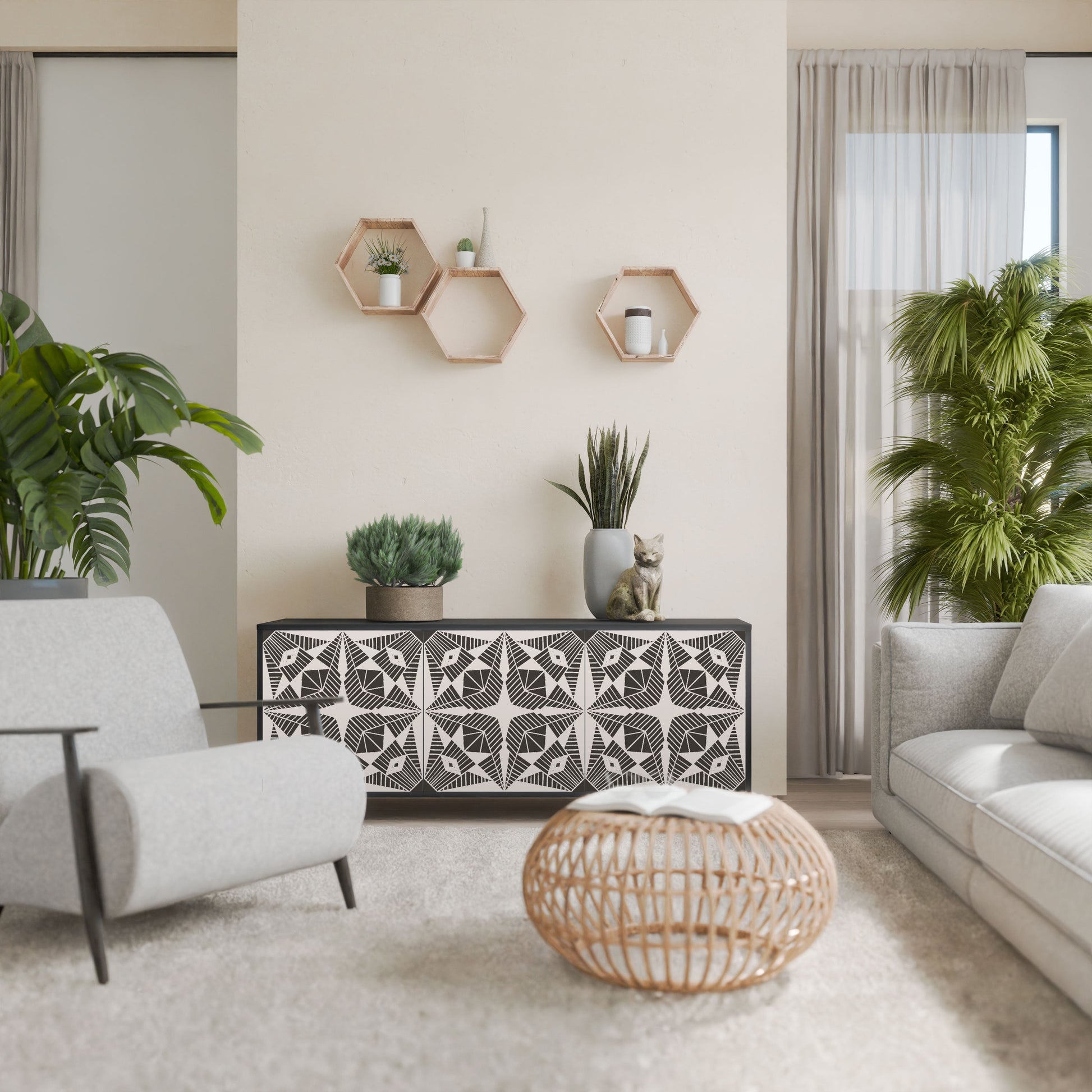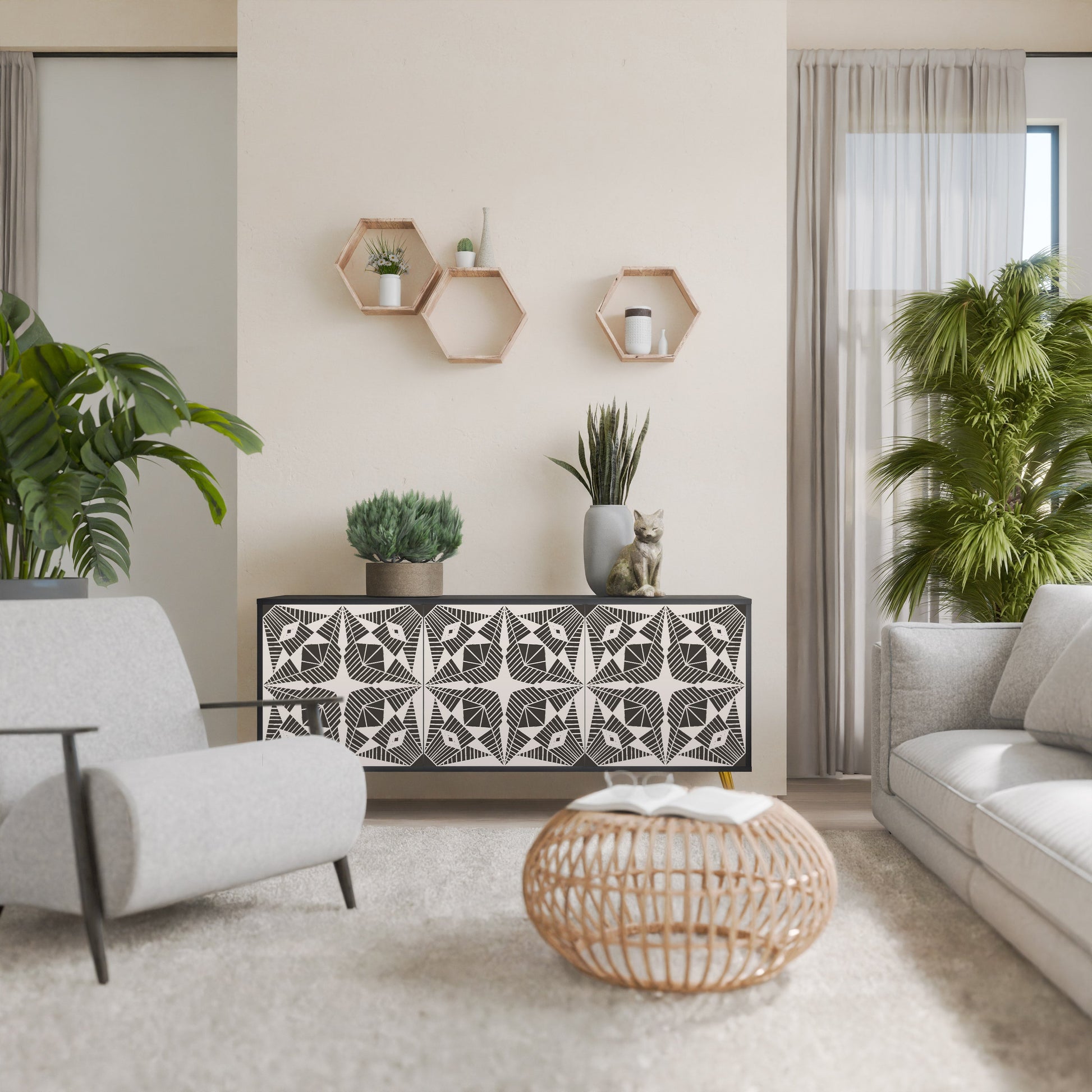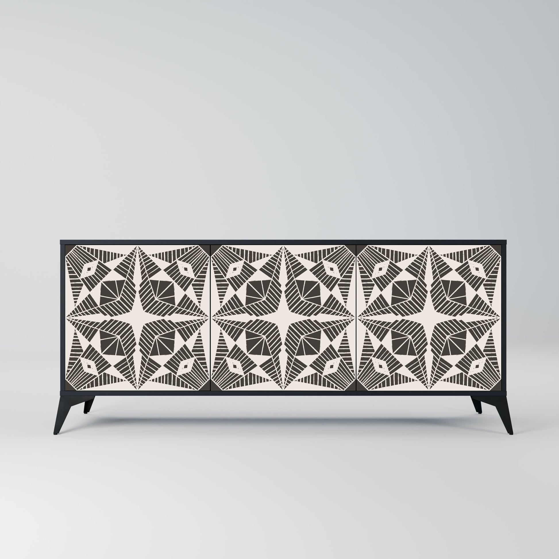 Elegance and functionality in a single piece of furniture – our 3-Door Sideboard with a black body is the perfect solution for lovers of stylish, modern interiors. The black body emphasizes the bold character of the furniture, while the fronts with a unique print add an artistic touch. It fits perfectly in the living room, bedroom, or office, complementing both modern and industrial arrangements.