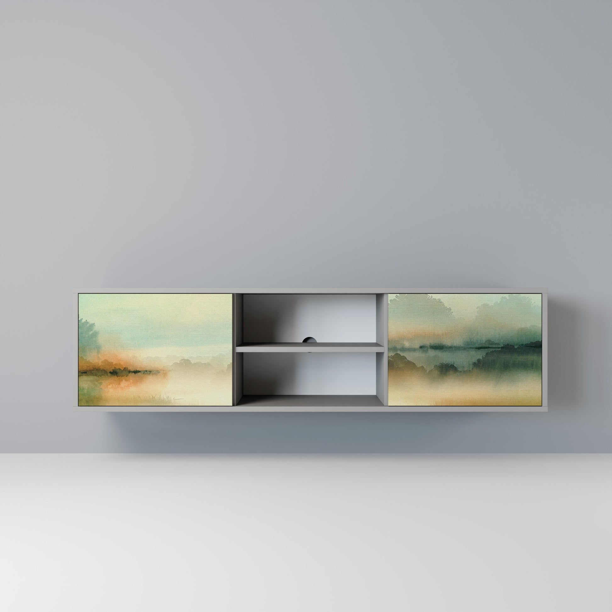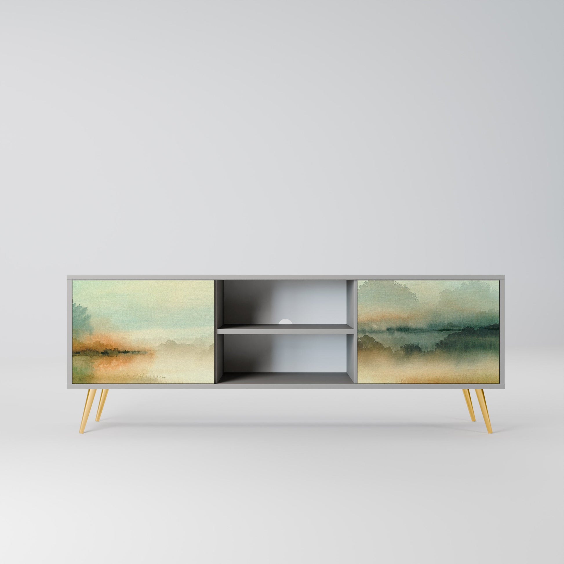 MORNING BY THE LAKE 2-Door TV Stand in Grey Finish