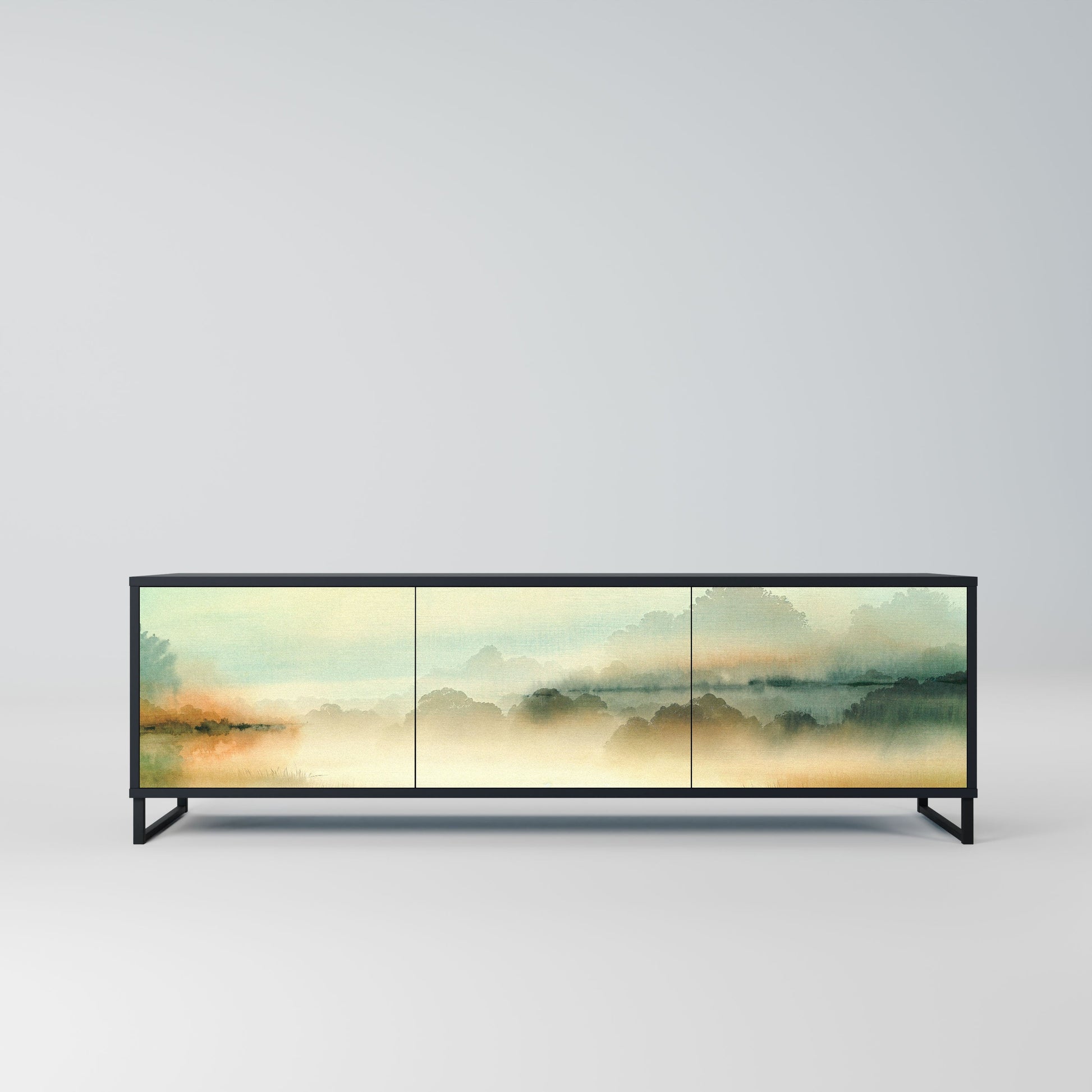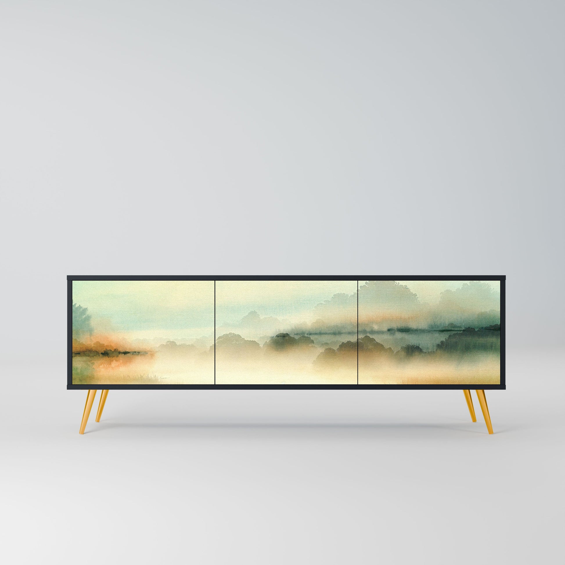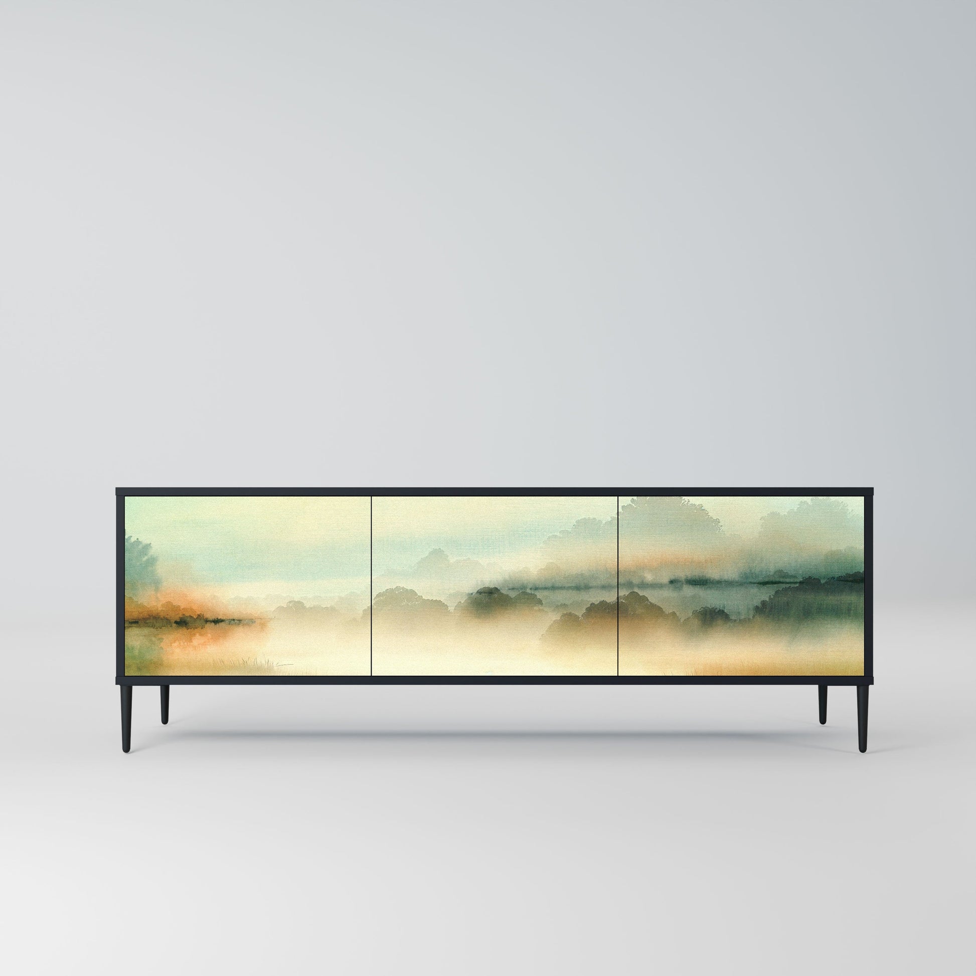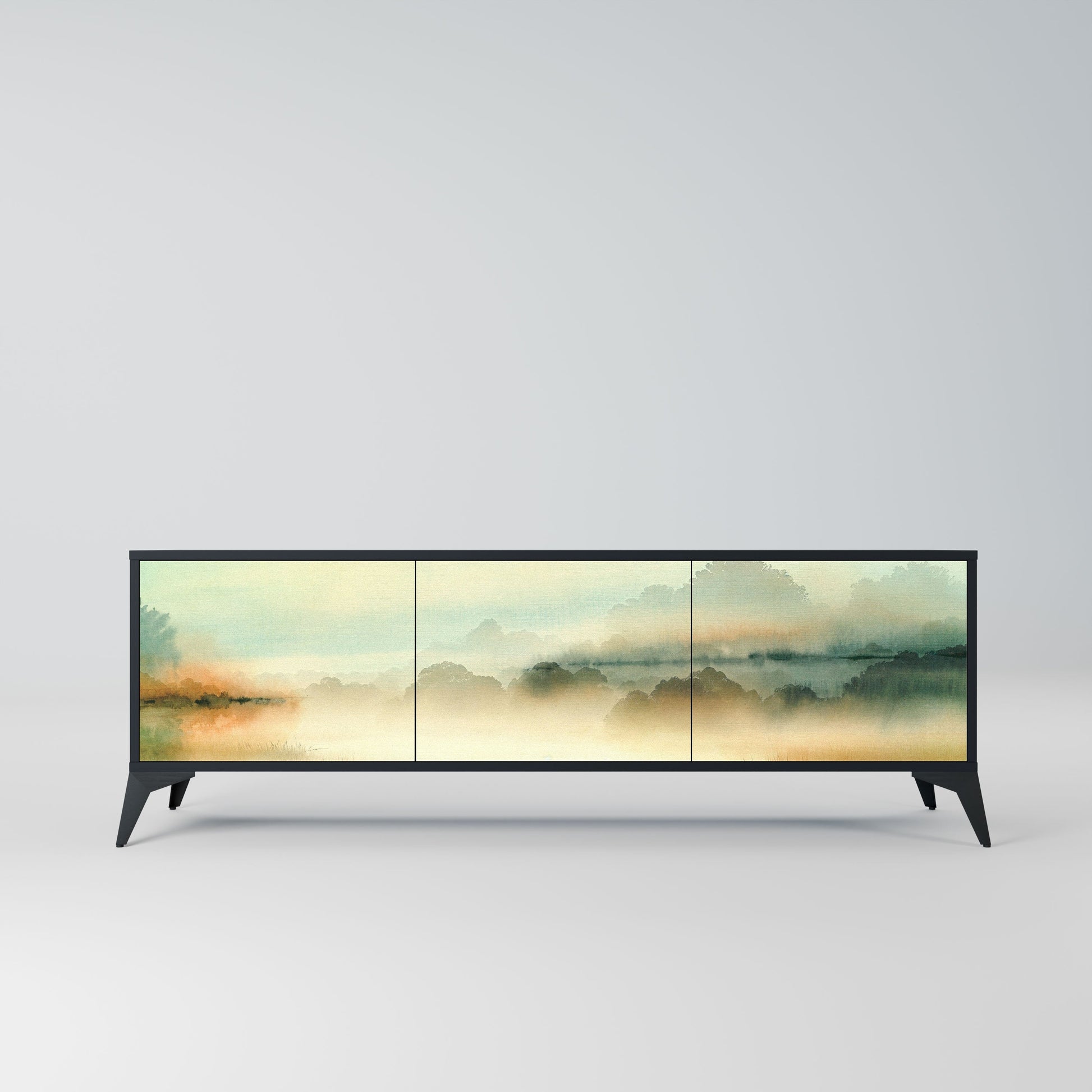 MORNING BY THE LAKE 3-Door TV Stand in Black Finish