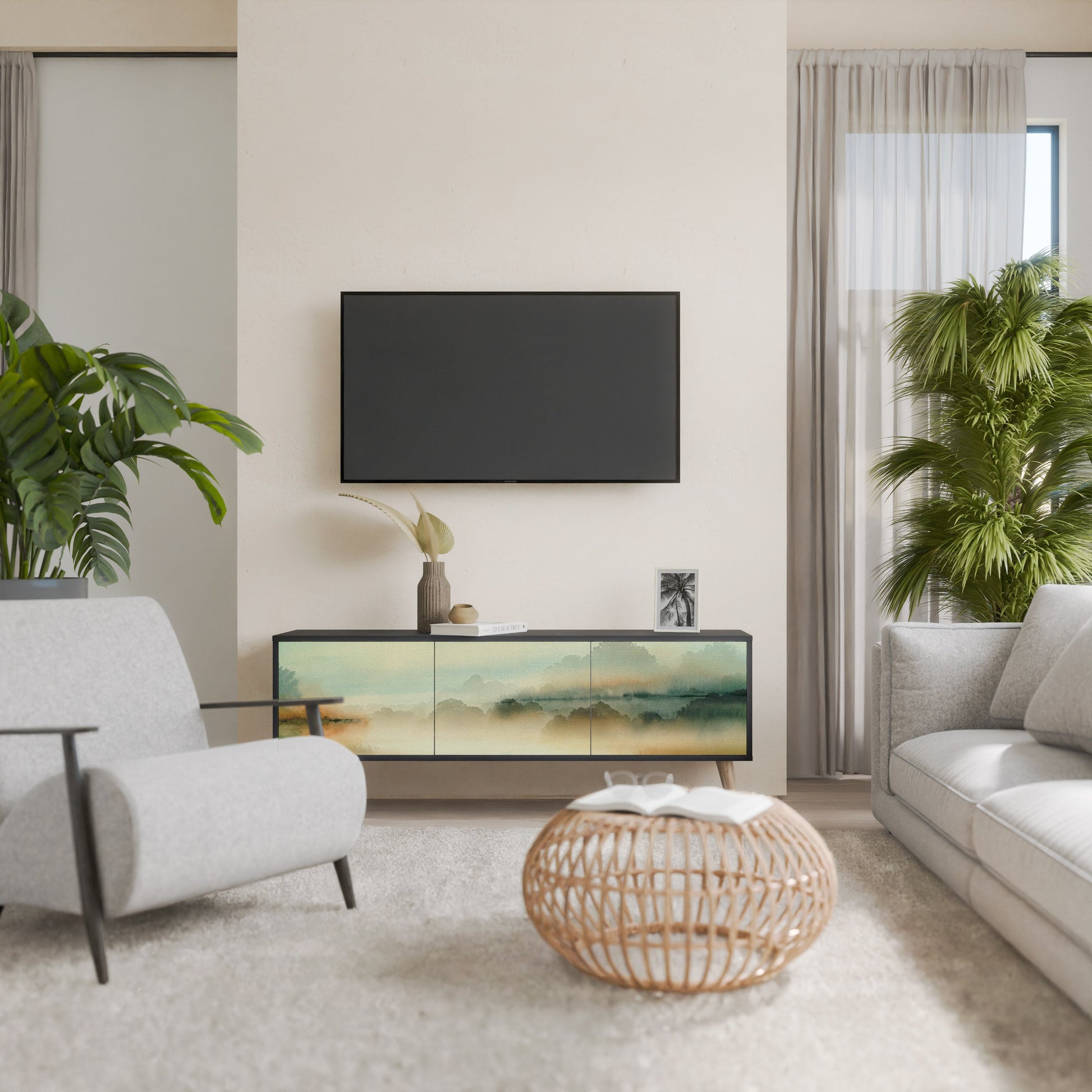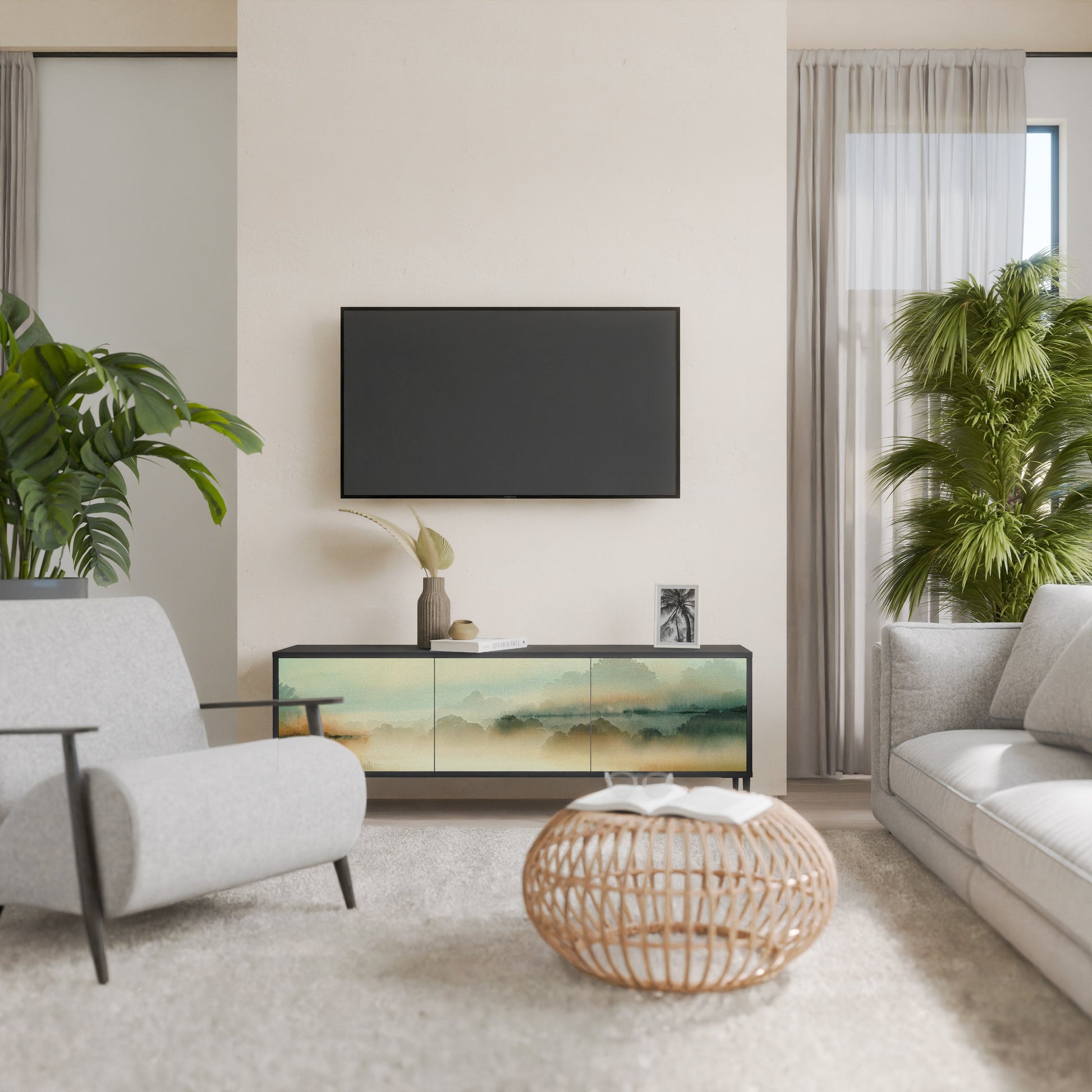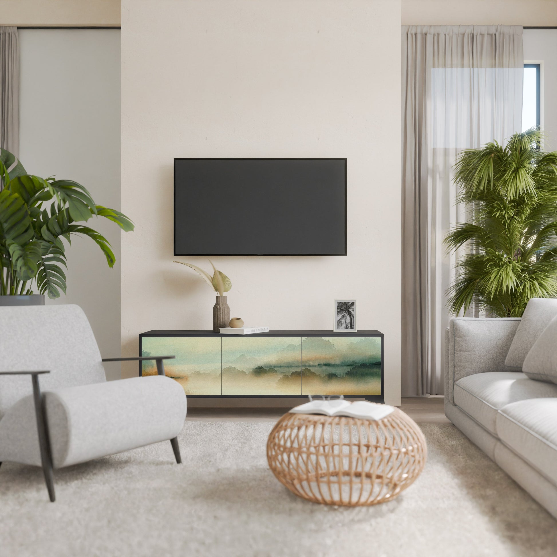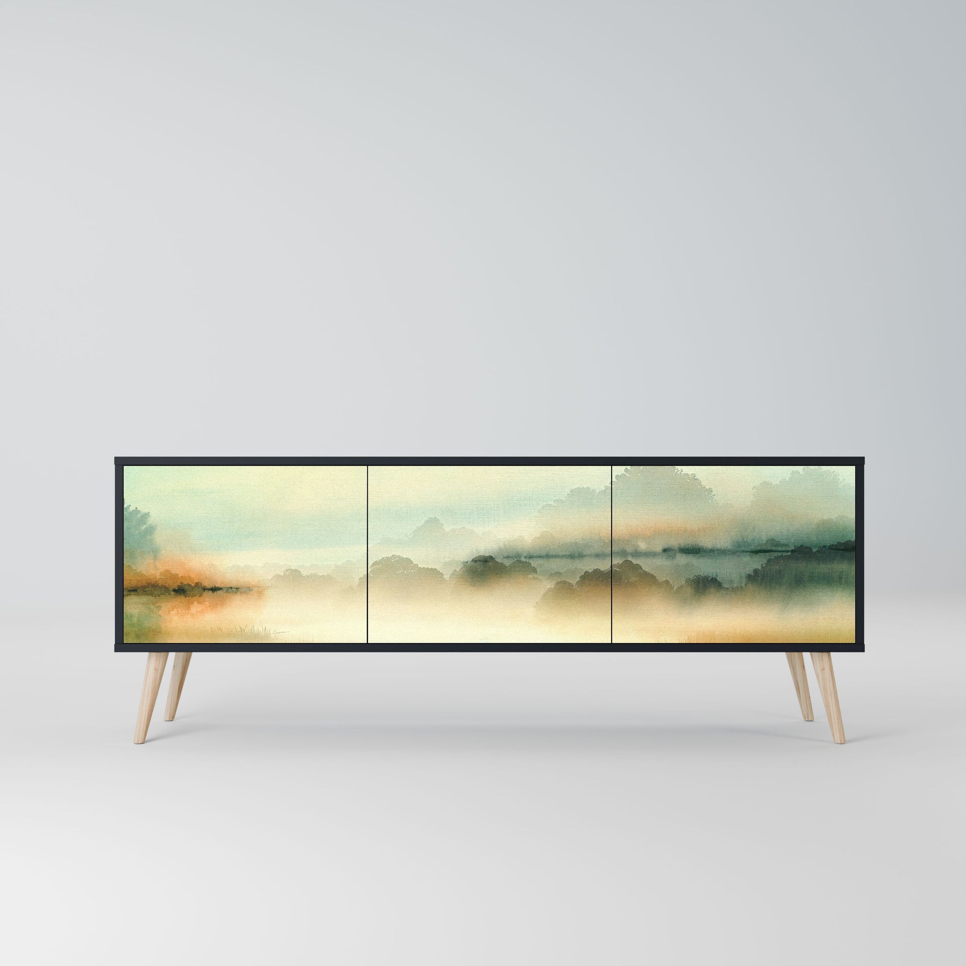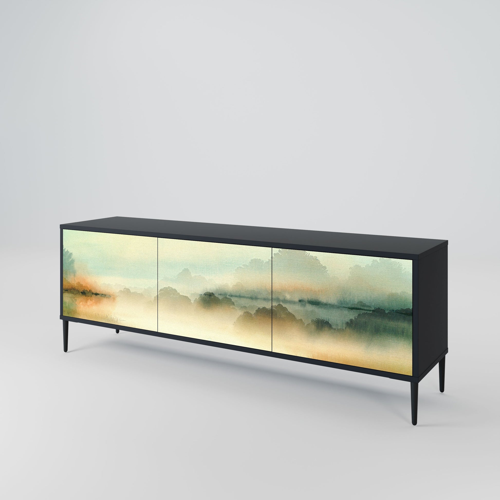 MORNING BY THE LAKE 3-Door TV Stand in Black Finish