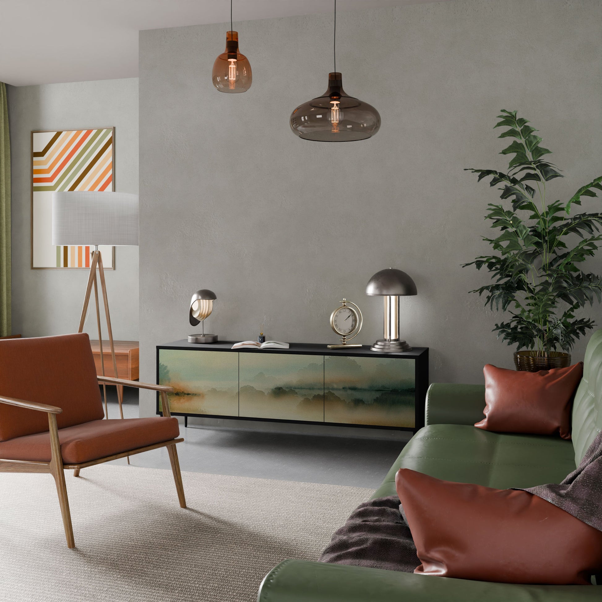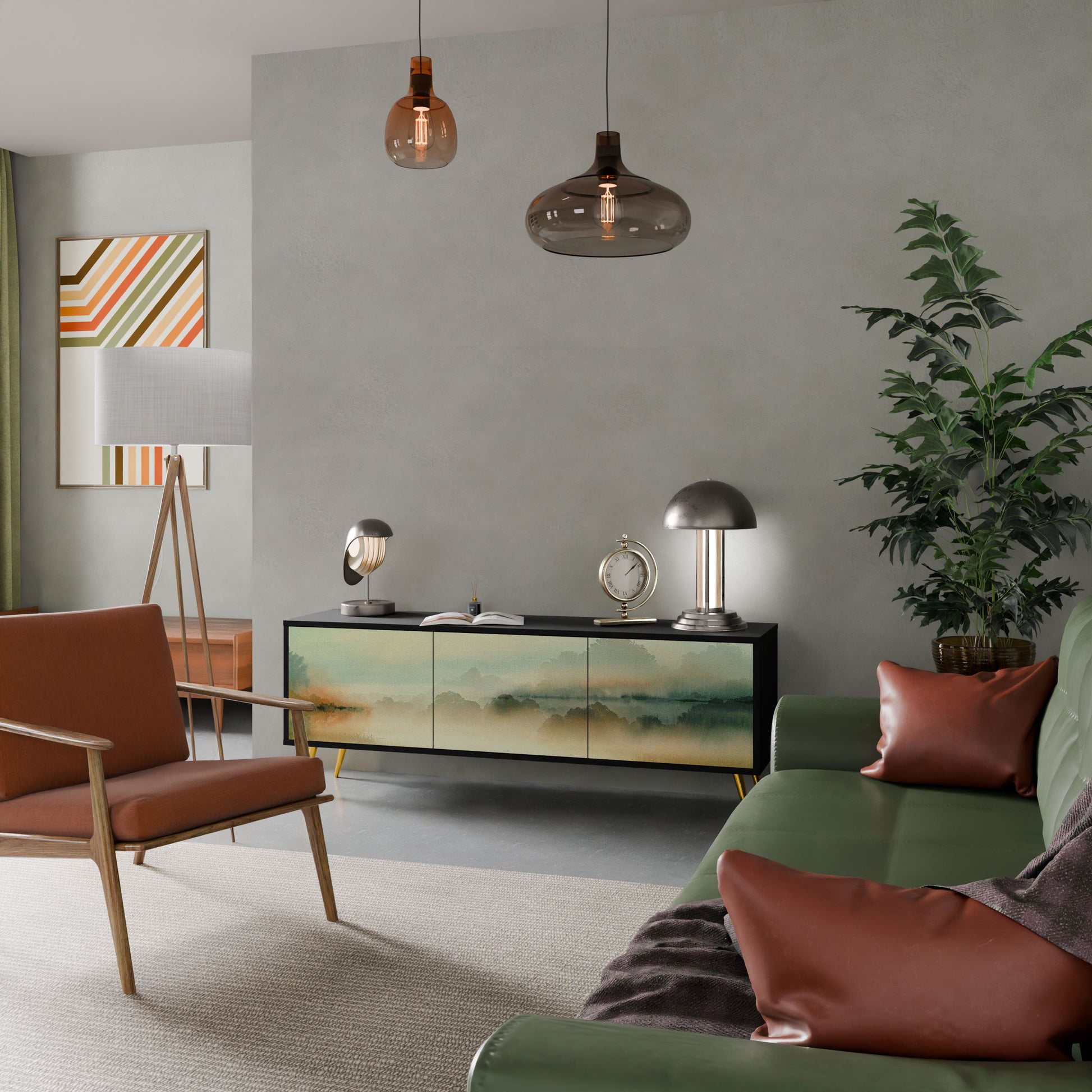 The black body of the stand creates a bold, modern accent that pairs beautifully with industrial and minimalist arrangements. The fronts with a designer print add character and uniqueness, making this piece not only practical but also a standout decorative element.