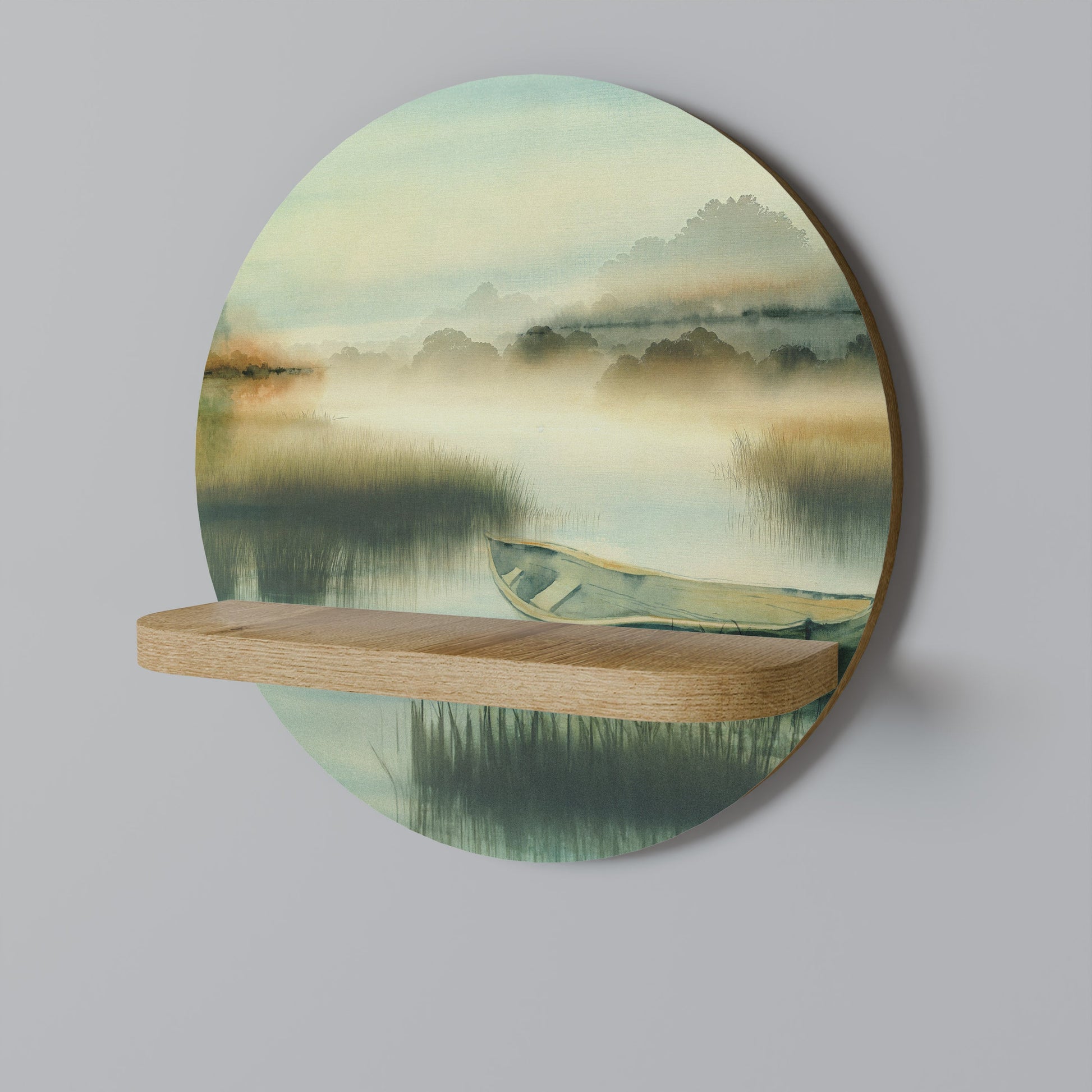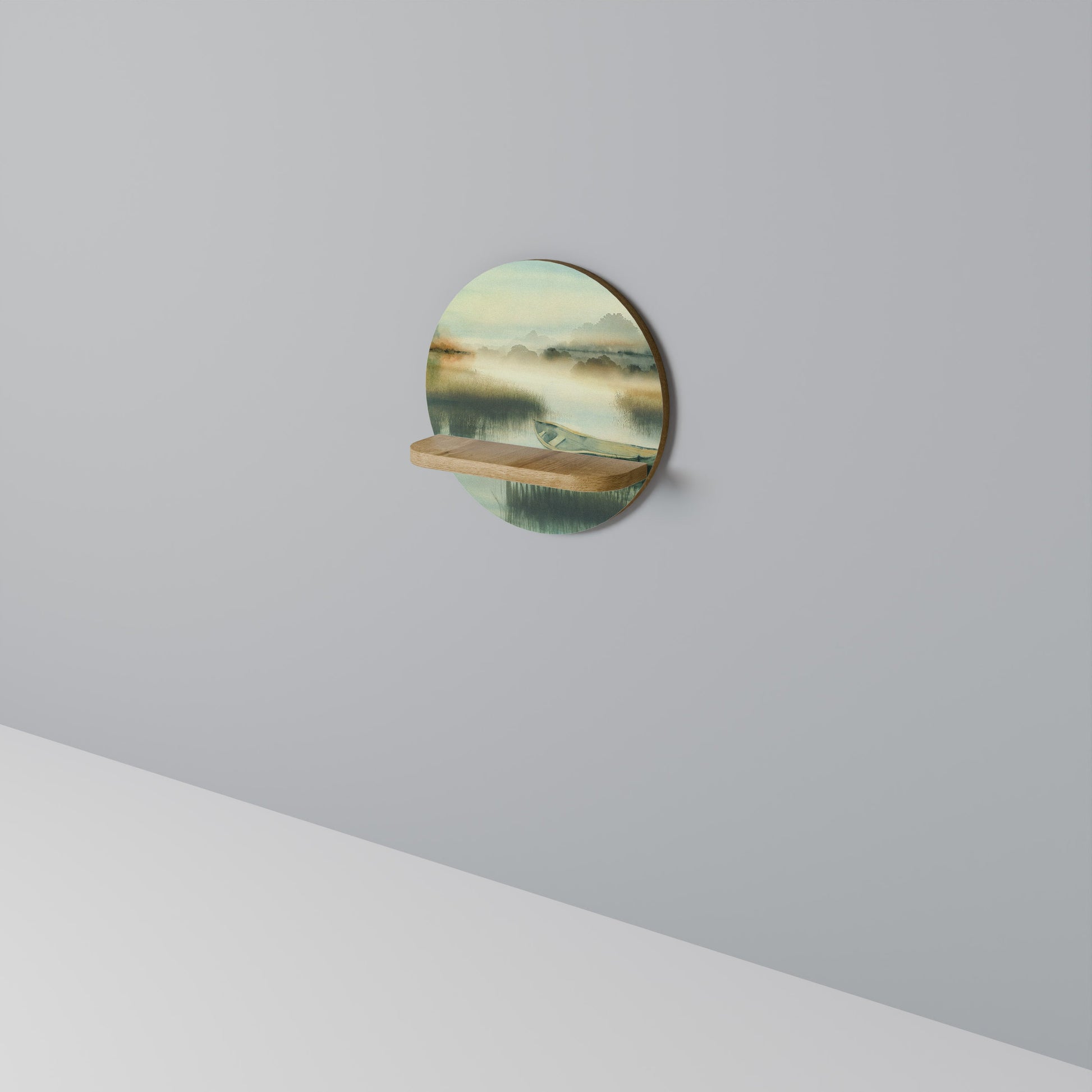 MORNING BY THE LAKE Round Art Shelf In Oak Effect