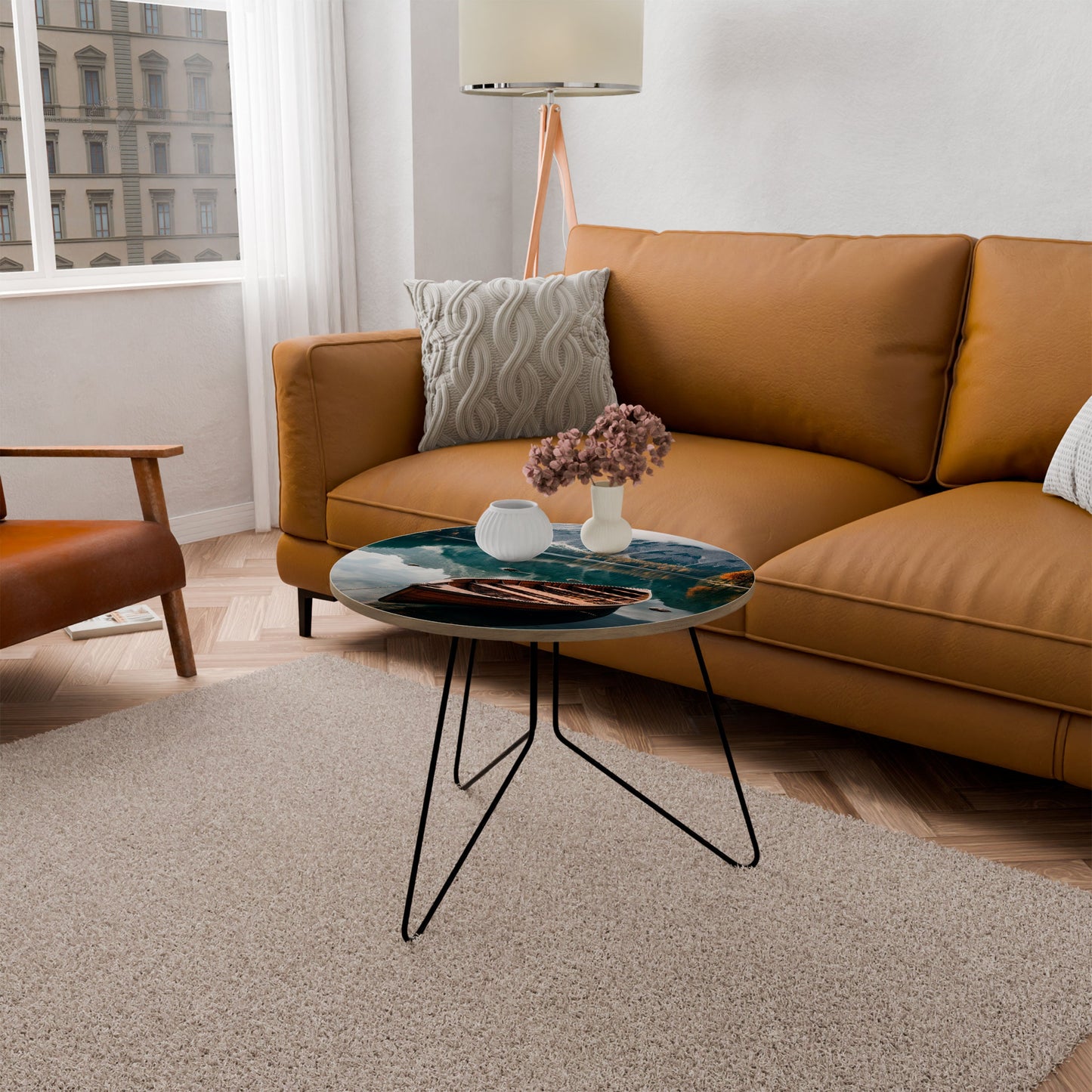 The tabletop features a high-quality printed motif, adding a distinctive artistic accent to your space. Crafted from durable chipboard covered with laminate, it ensures long-lasting use and resistance to daily wear.