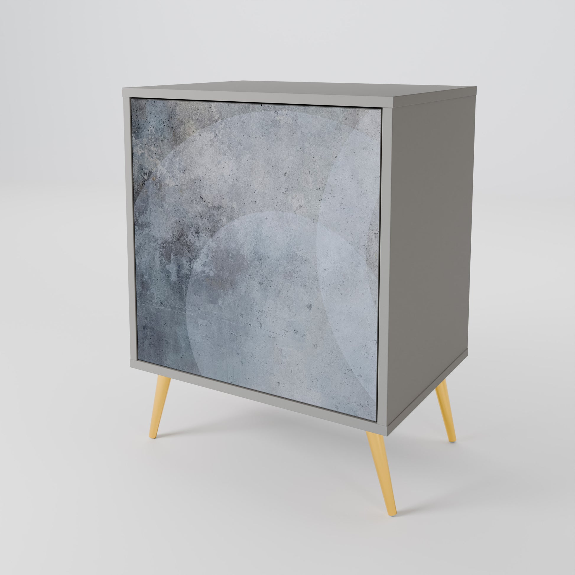 This compact yet remarkably elegant piece of furniture impresses with its minimalist design, perfectly fitting into both modern and classic interiors. The subdued grey color of the body gives the furniture a subtle yet distinctive character, while the fronts with a unique print add an artistic touch.