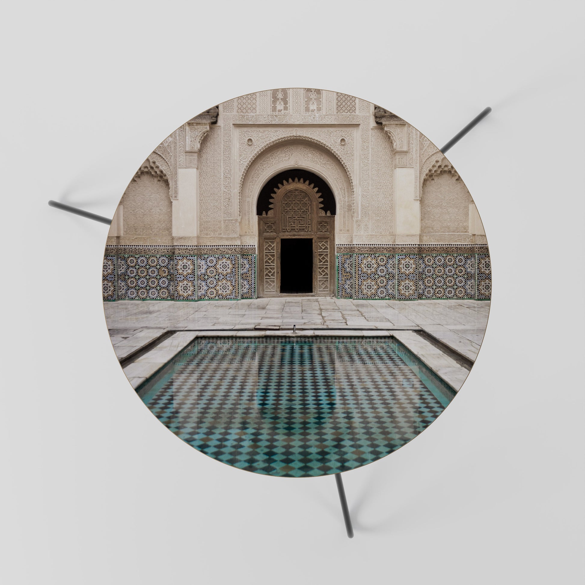 The tabletop features a high-quality printed motif, adding a distinctive artistic accent to your space. Crafted from durable chipboard covered with laminate, it ensures long-lasting use and resistance to daily wear.