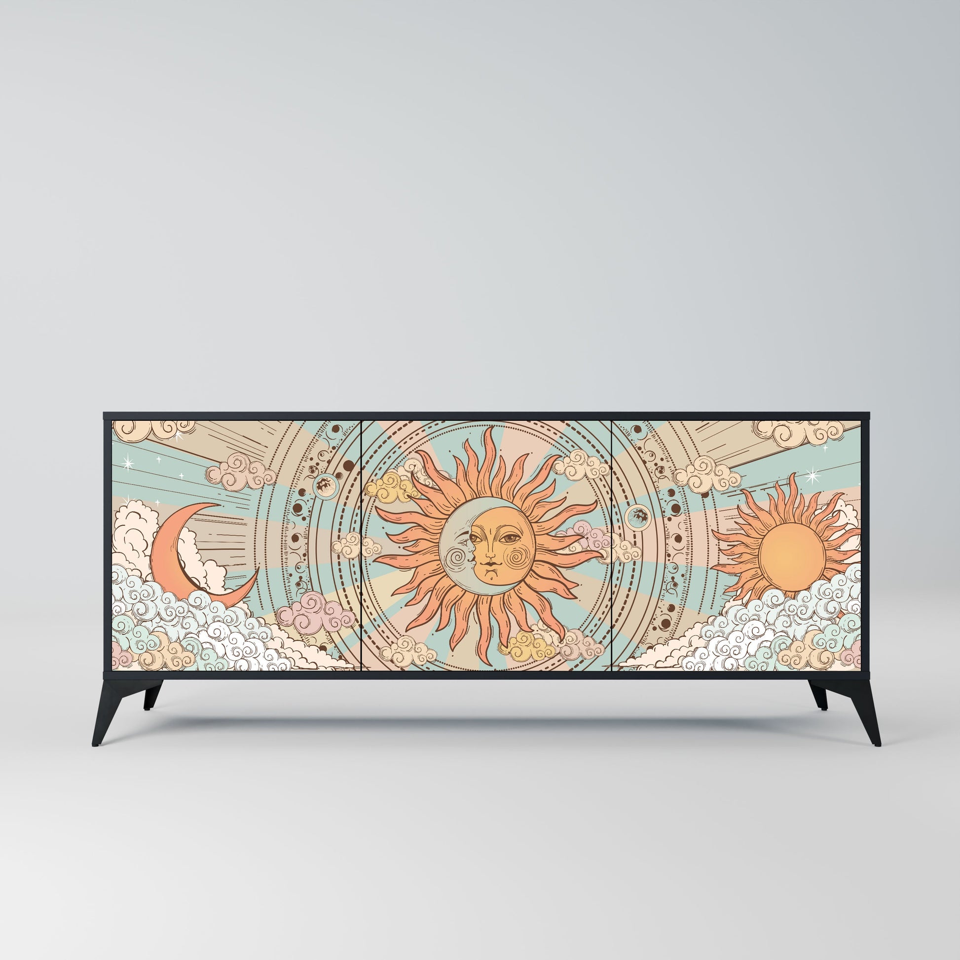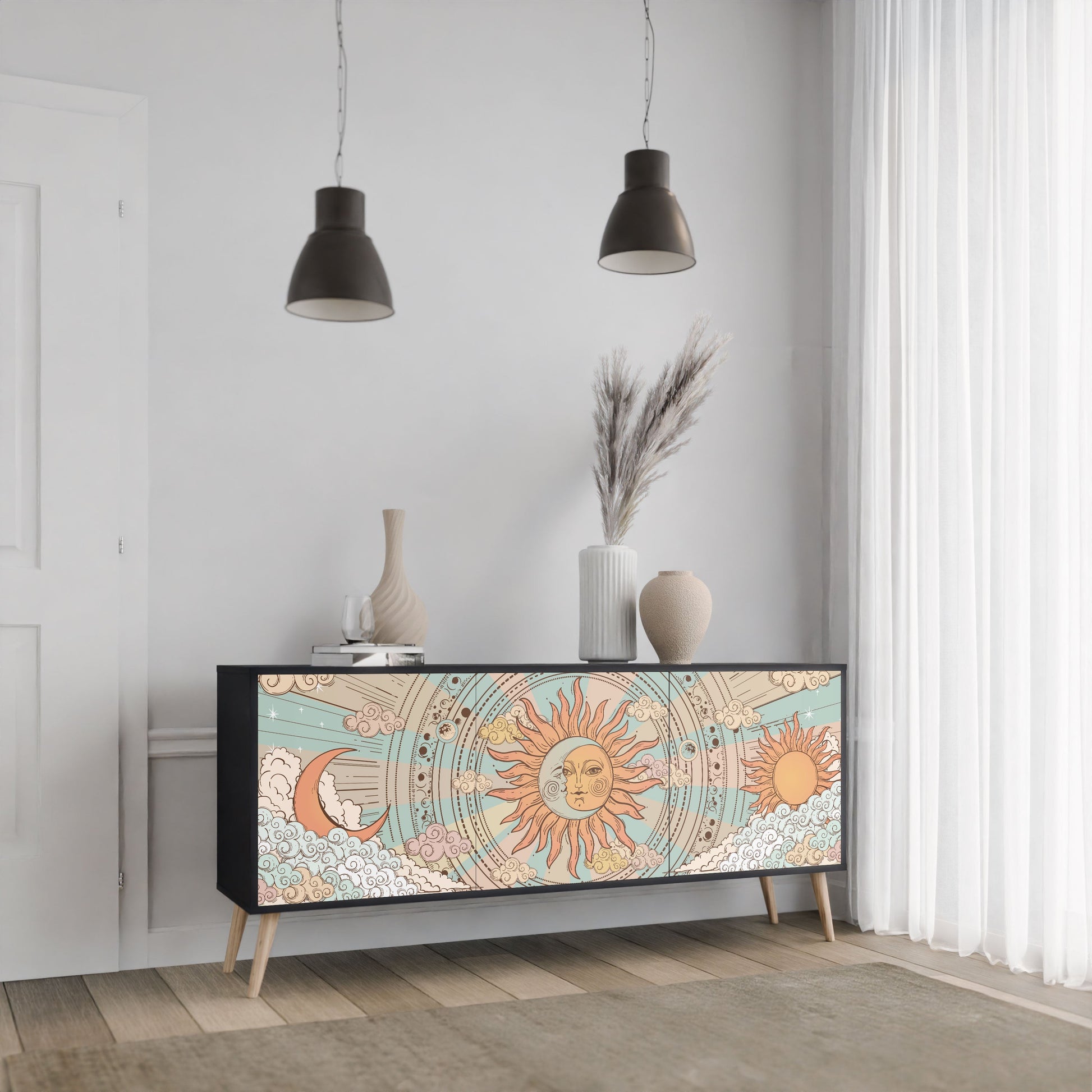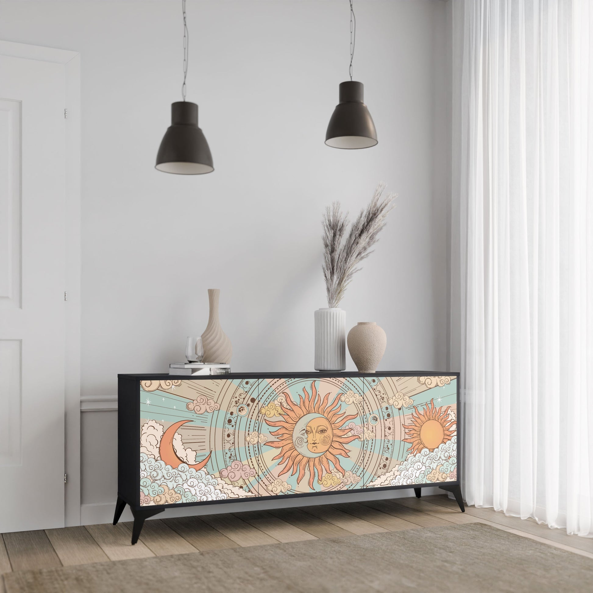 Elegance and functionality in a single piece of furniture – our 3-Door Sideboard with a black body is the perfect solution for lovers of stylish, modern interiors. The black body emphasizes the bold character of the furniture, while the fronts with a unique print add an artistic touch. It fits perfectly in the living room, bedroom, or office, complementing both modern and industrial arrangements.