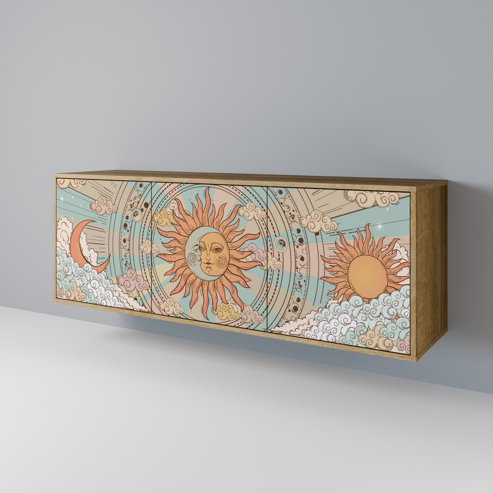 Discover the elegance and natural beauty of wood with our 3-door sideboard in oak finish. This stylish piece combines the sturdiness of a wooden body with the aesthetic detail of printed front doors, creating a cohesive and attractive design. Perfect for both the living room and bedroom, this sideboard adds a touch of class and functionality to any interior.