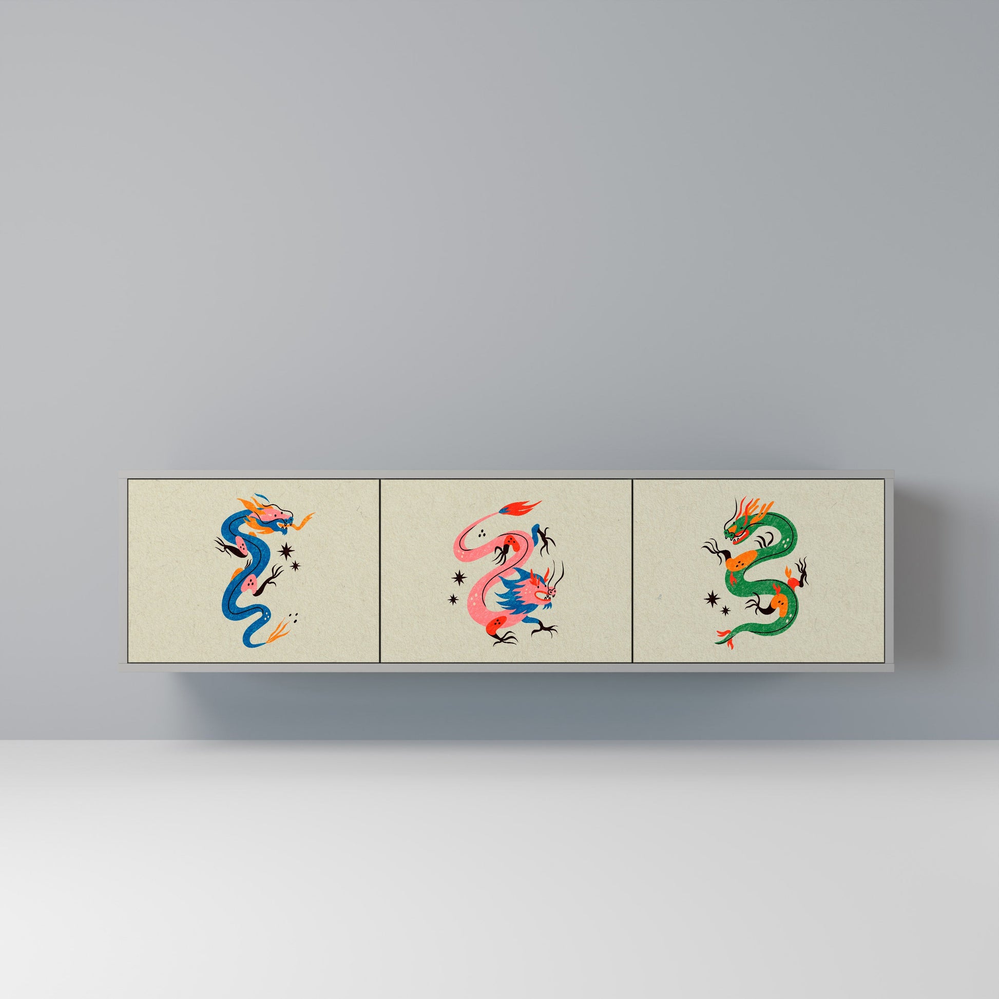 MYTHOLOGICAL CREATURES 3-Door TV Stand in Grey Finish