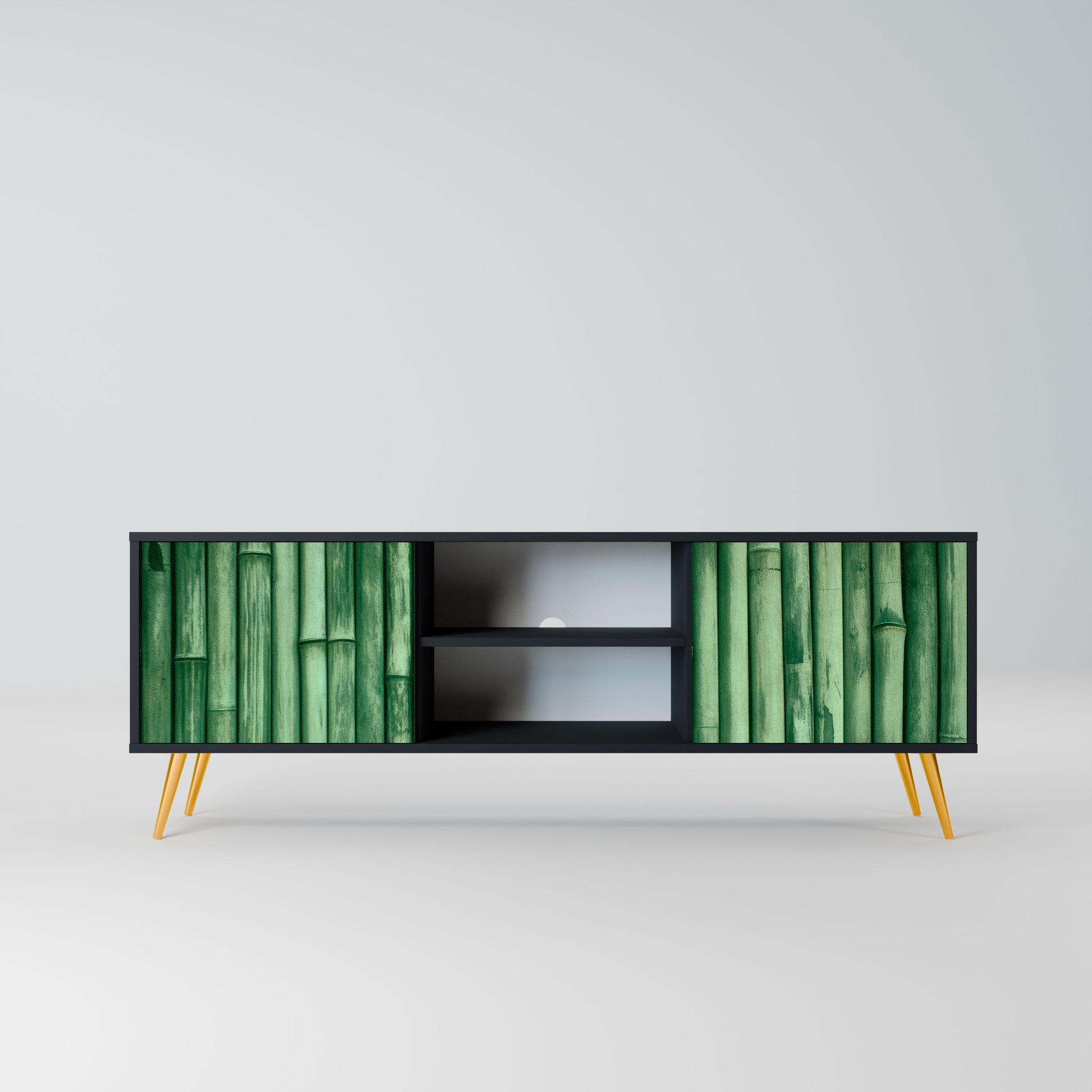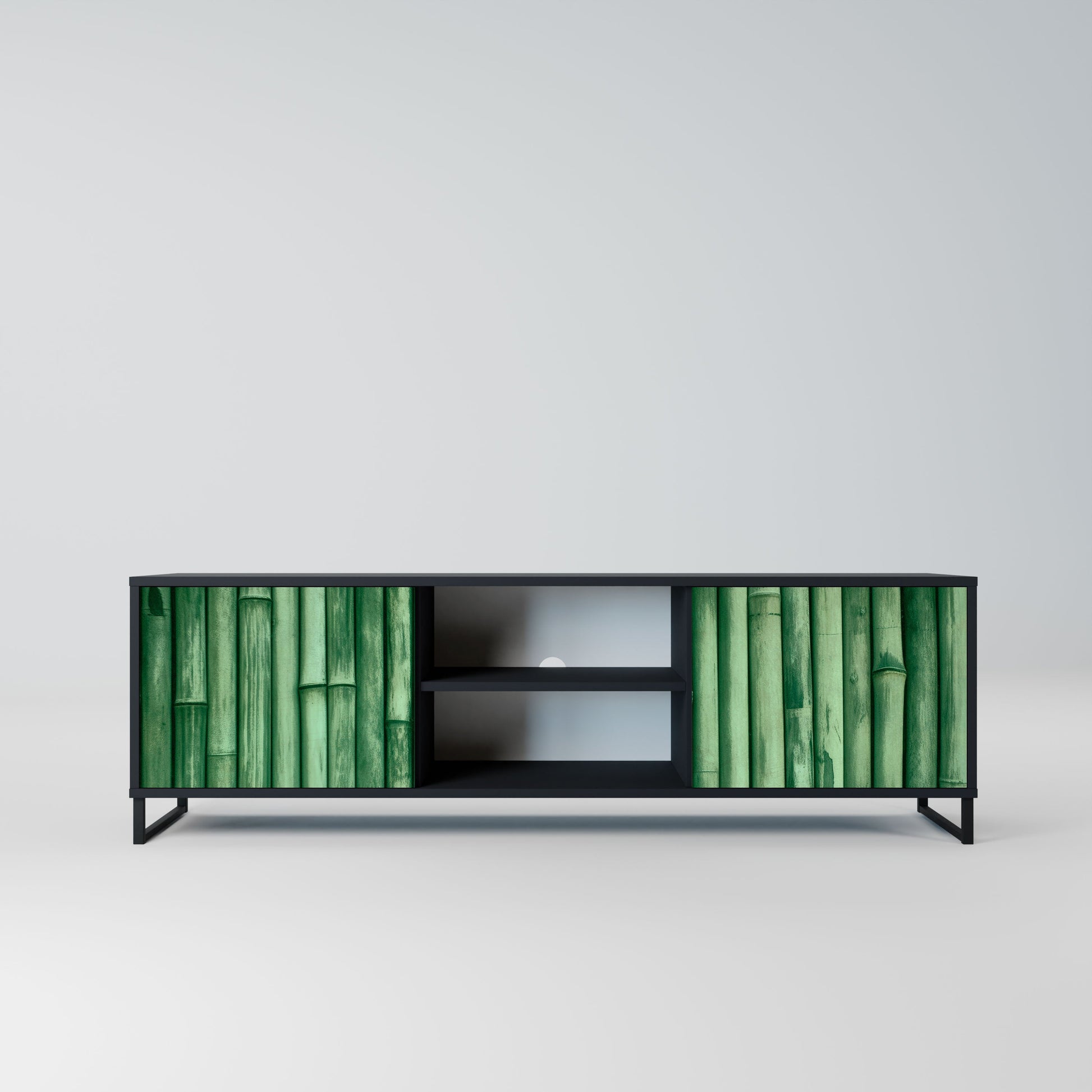 NATURAL GREEN 2-Door TV Stand in Black Finish