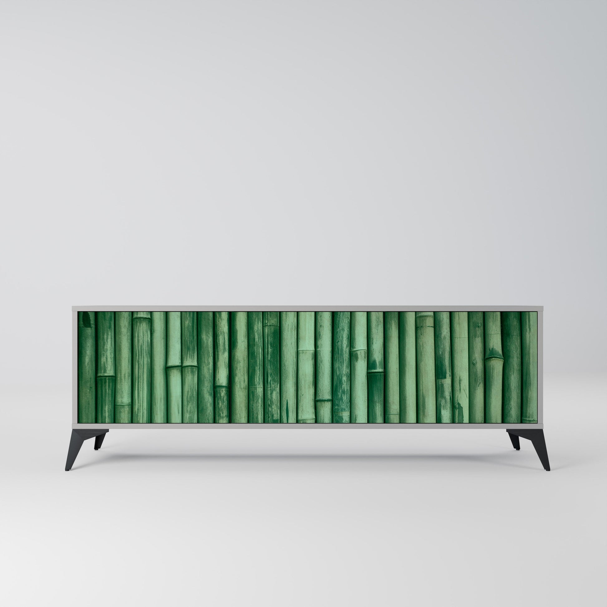 NATURAL GREEN 3-Door TV Stand in Grey Finish