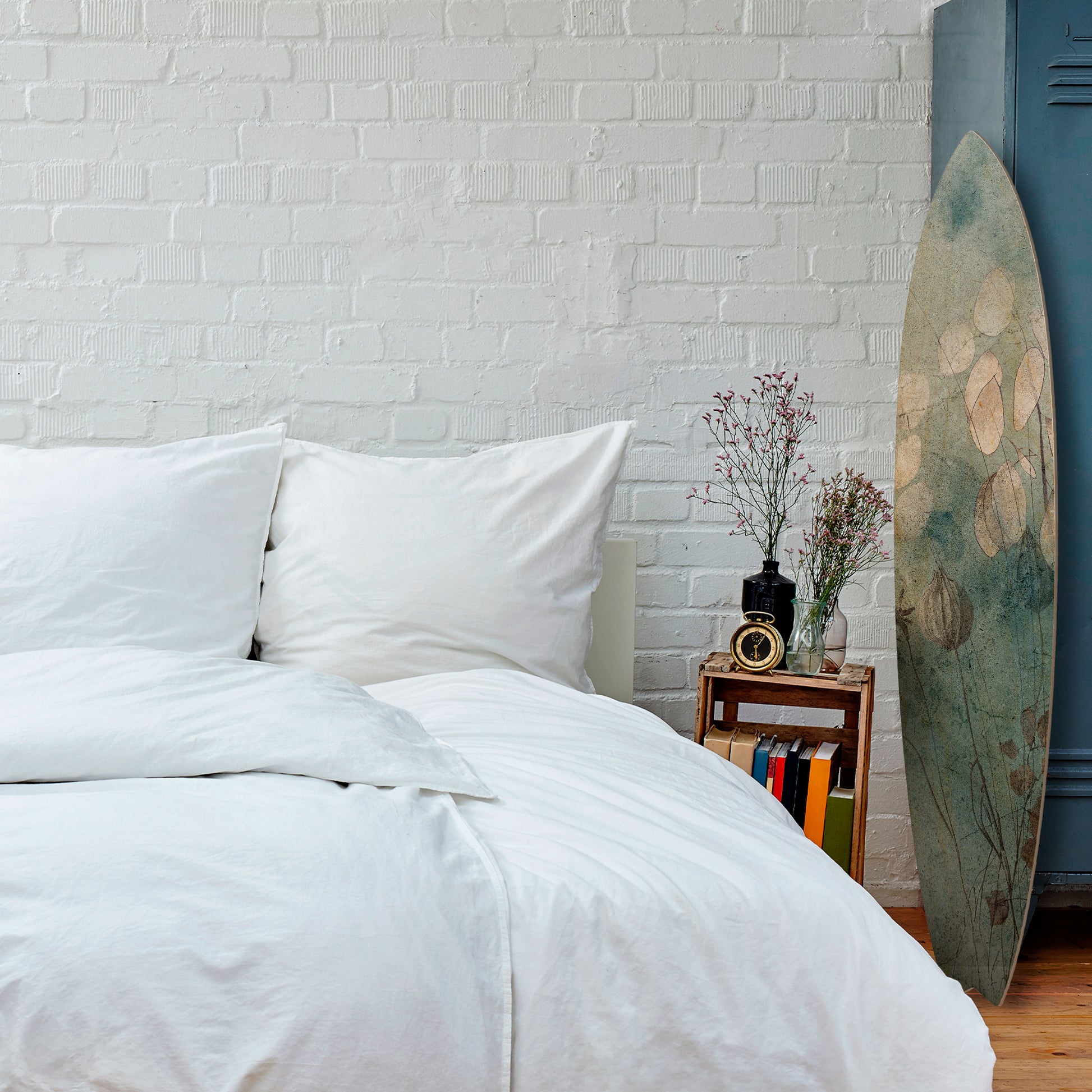 The surfboard has been designed with maximum functionality and arrangement flexibility in mind. It can be hung vertically or horizontally, or displayed freestanding by leaning it against a wall, dresser, or shelf. This makes it easy to adapt the piece to the character of the space and changing interior needs.