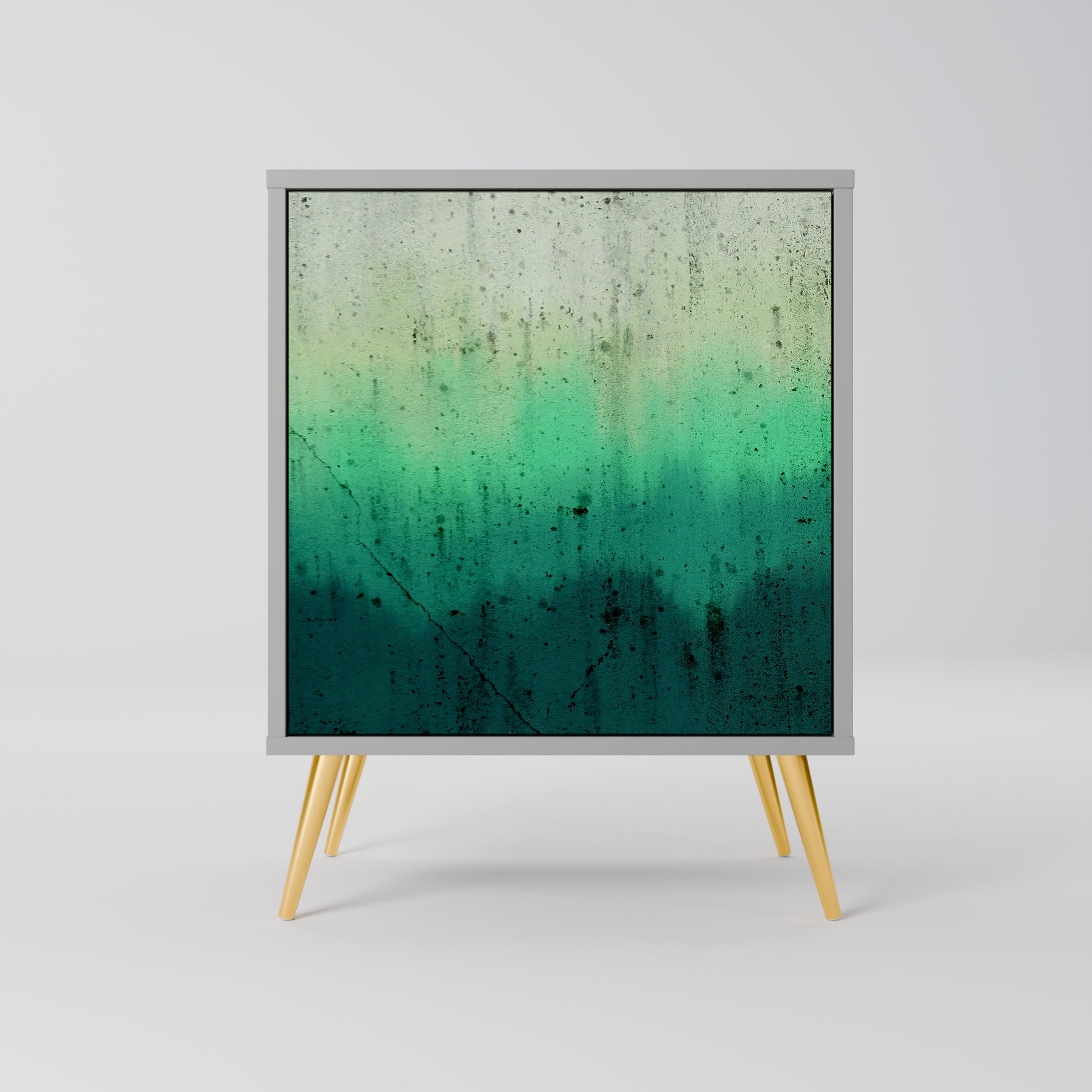 This compact yet remarkably elegant piece of furniture impresses with its minimalist design, perfectly fitting into both modern and classic interiors. The subdued grey color of the body gives the furniture a subtle yet distinctive character, while the fronts with a unique print add an artistic touch.