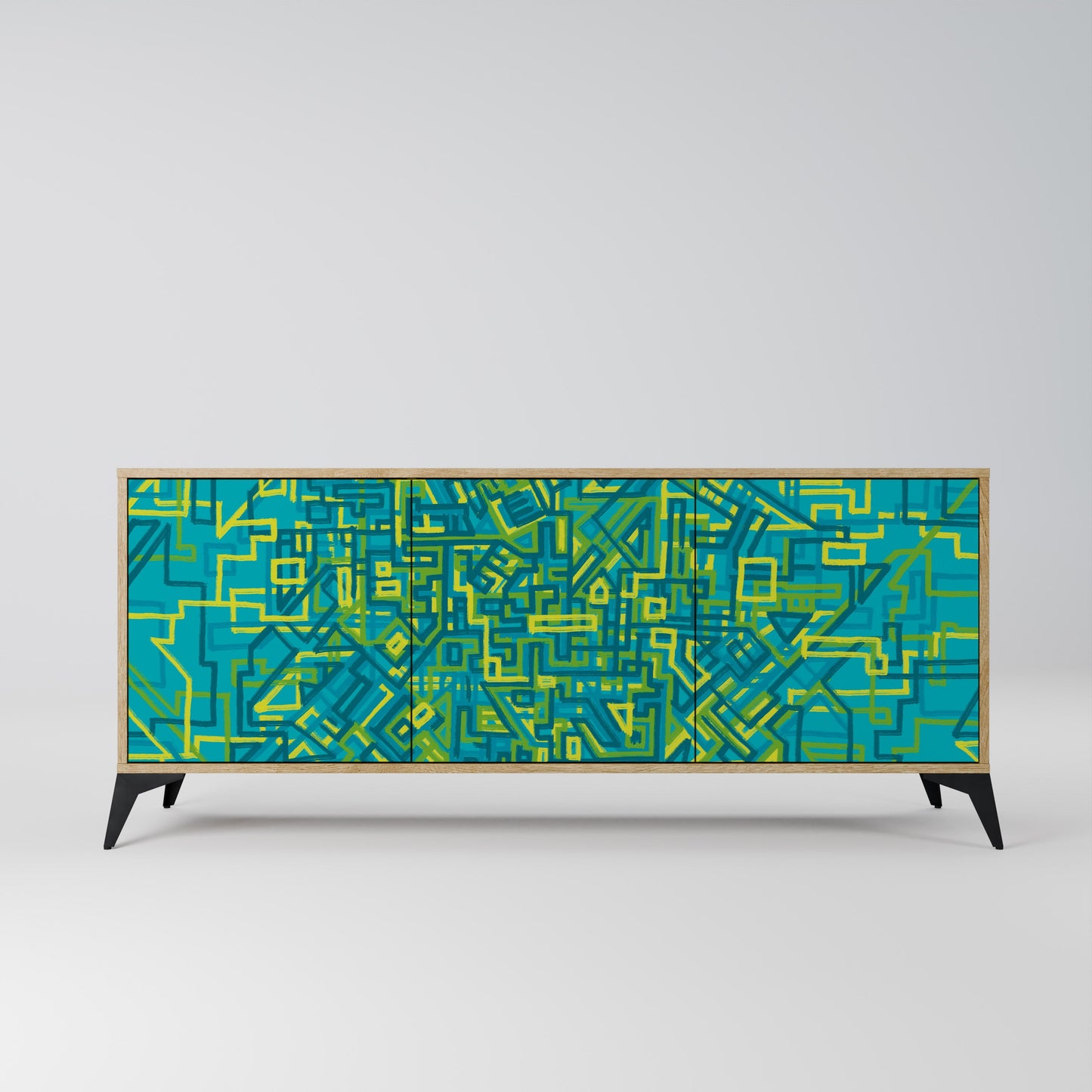 Discover the elegance and natural beauty of wood with our 3-door sideboard in oak finish. This stylish piece combines the sturdiness of a wooden body with the aesthetic detail of printed front doors, creating a cohesive and attractive design. Perfect for both the living room and bedroom, this sideboard adds a touch of class and functionality to any interior.