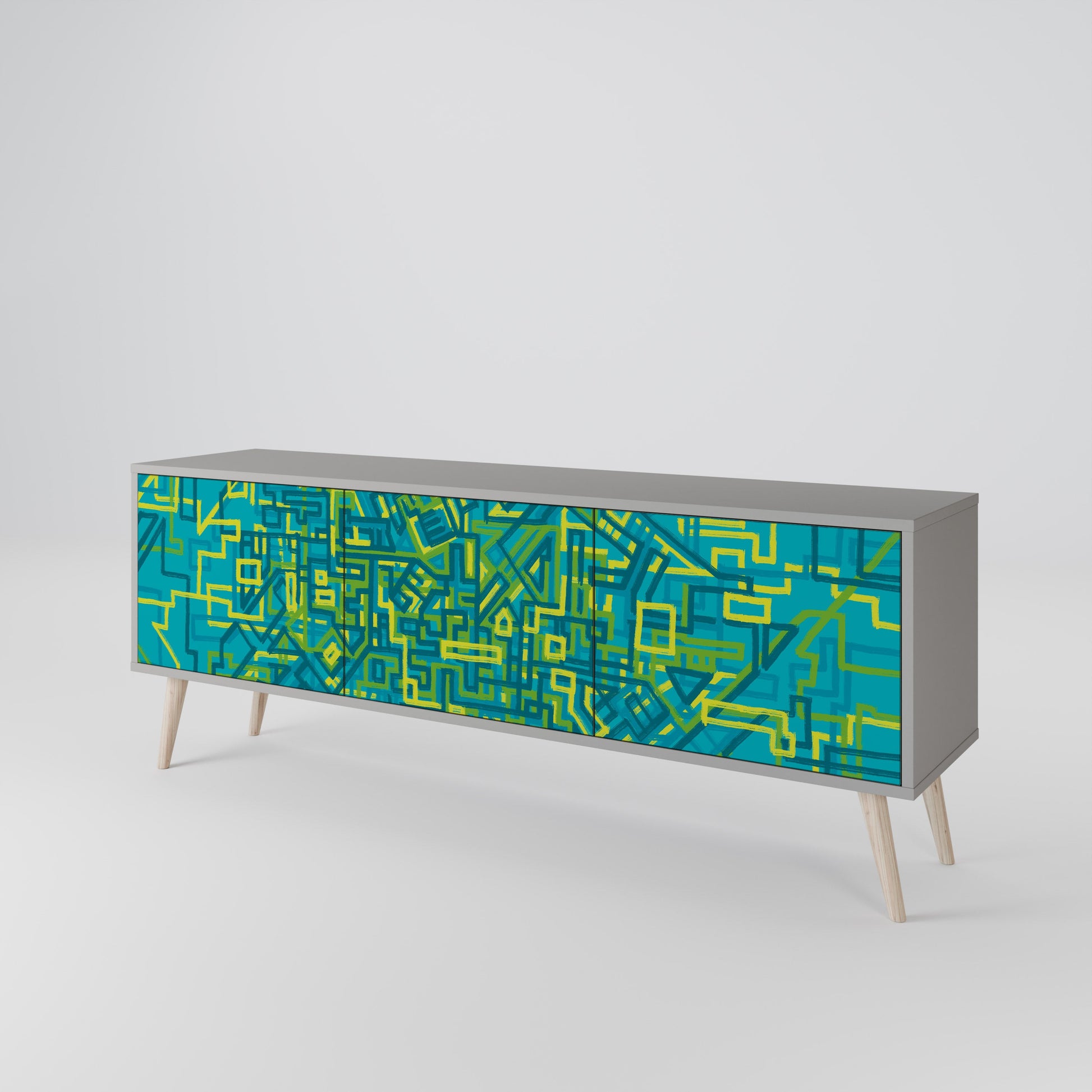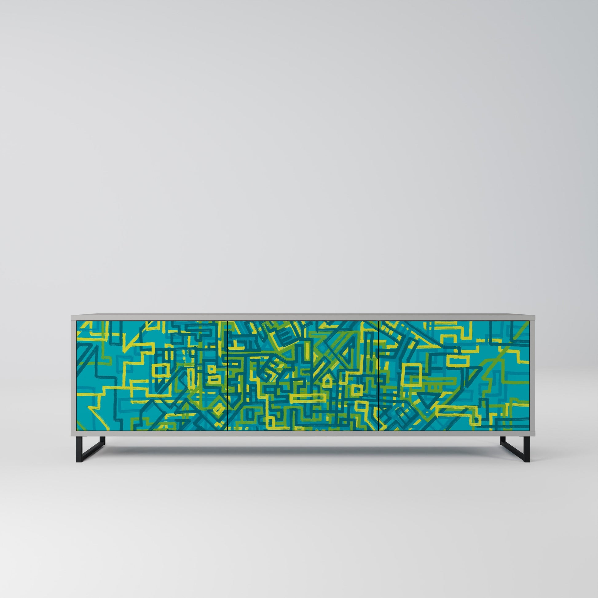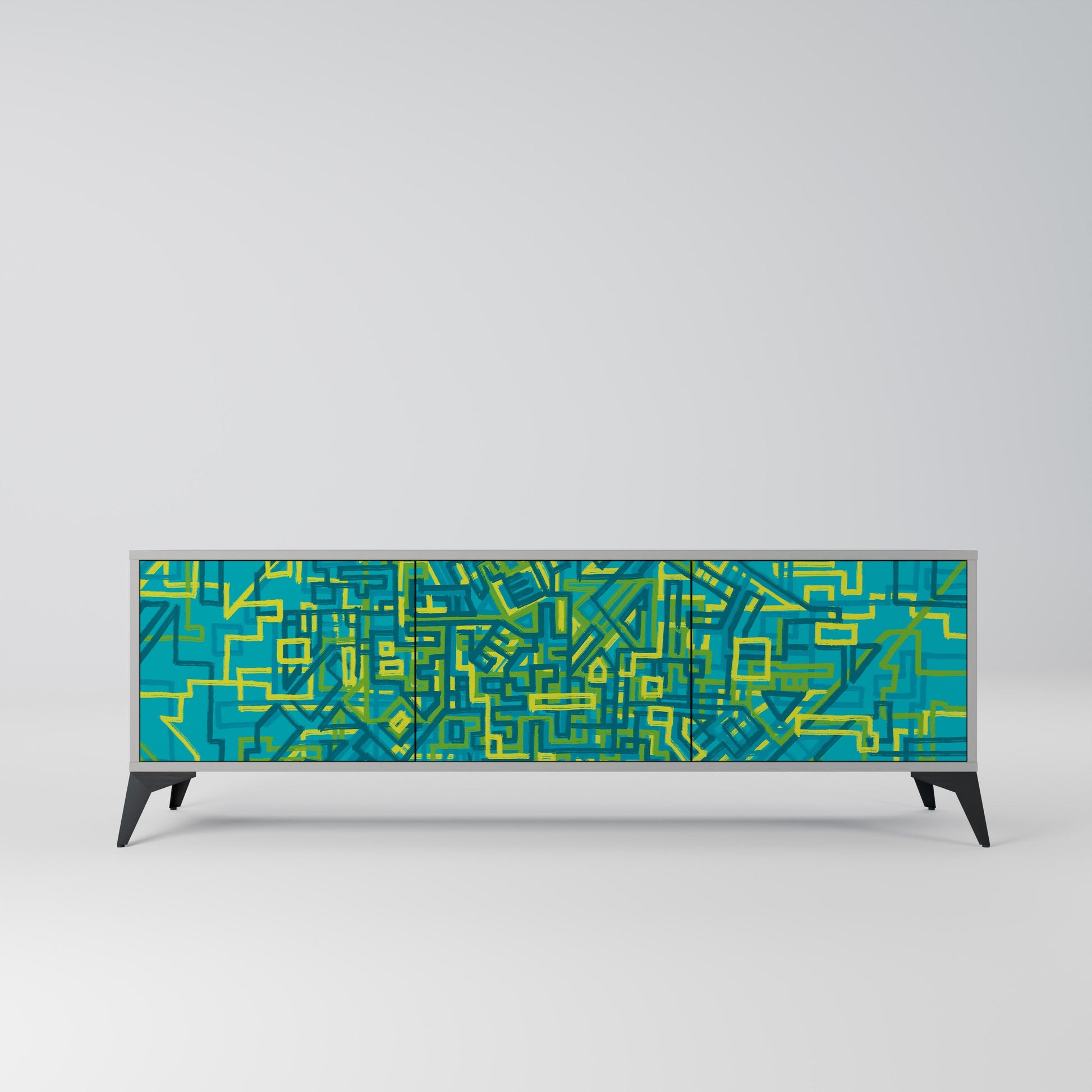 The grey body of the stand creates a refined, modern accent that pairs beautifully with industrial and minimalist arrangements. The fronts with a designer print add character and uniqueness, making this piece not only practical but also a standout decorative element.