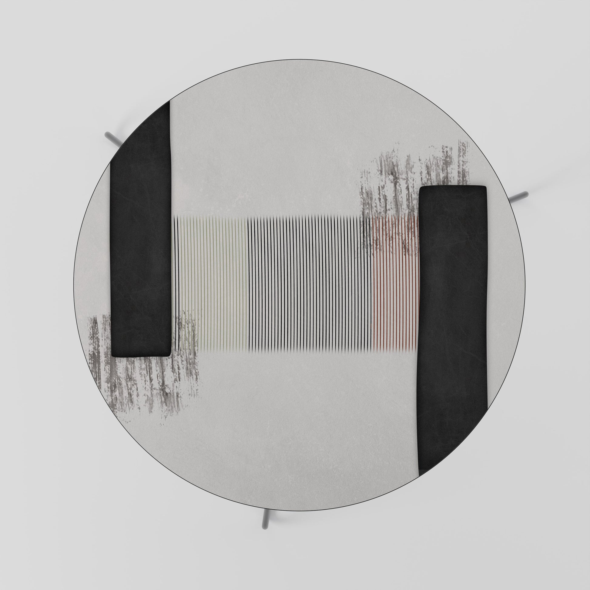The tabletop features a high-quality printed motif, adding a distinctive artistic accent to your space. Crafted from durable chipboard covered with laminate, it ensures long-lasting use and resistance to daily wear.
