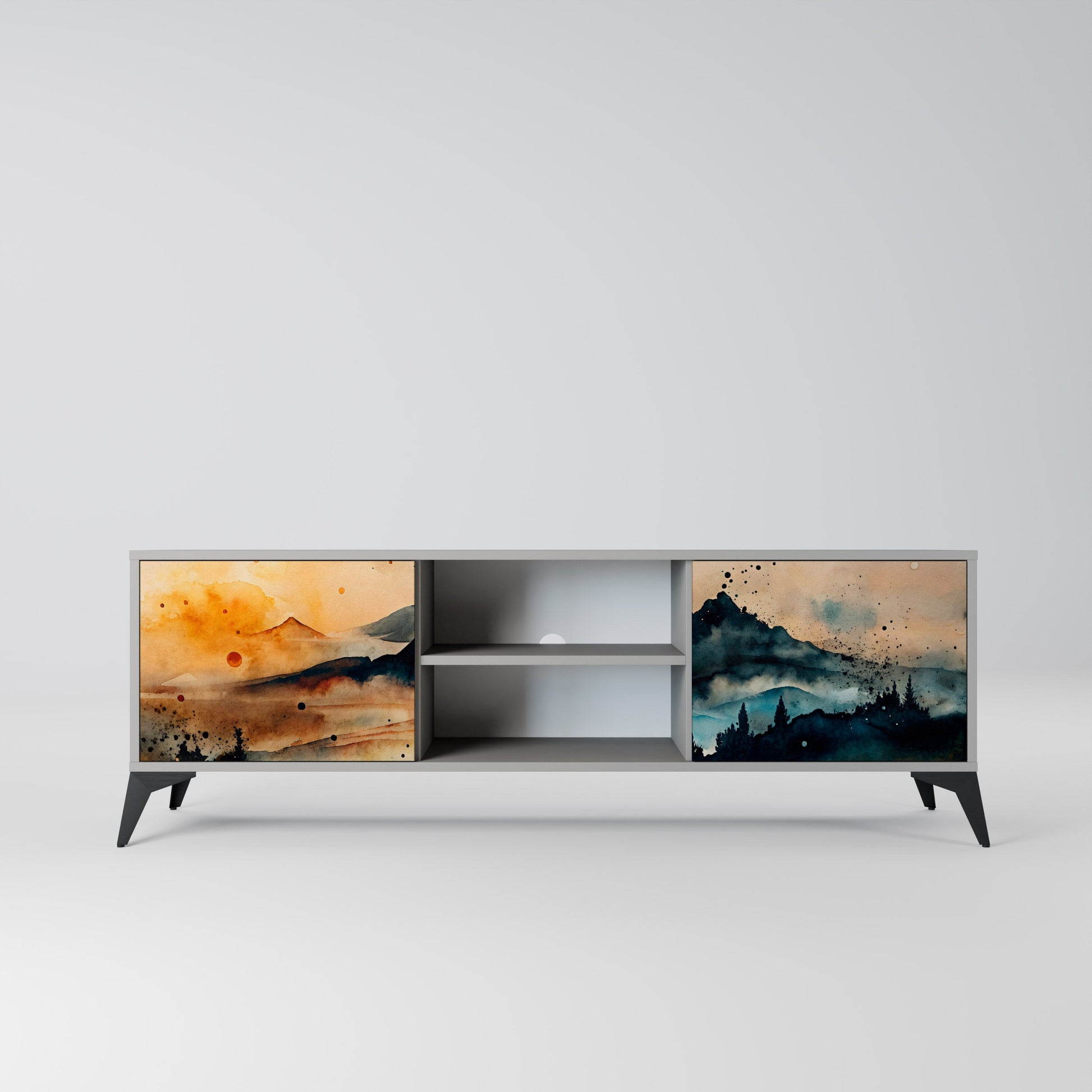 OMINOUS MOUNTAINS 2-Door TV Stand in Grey Finish