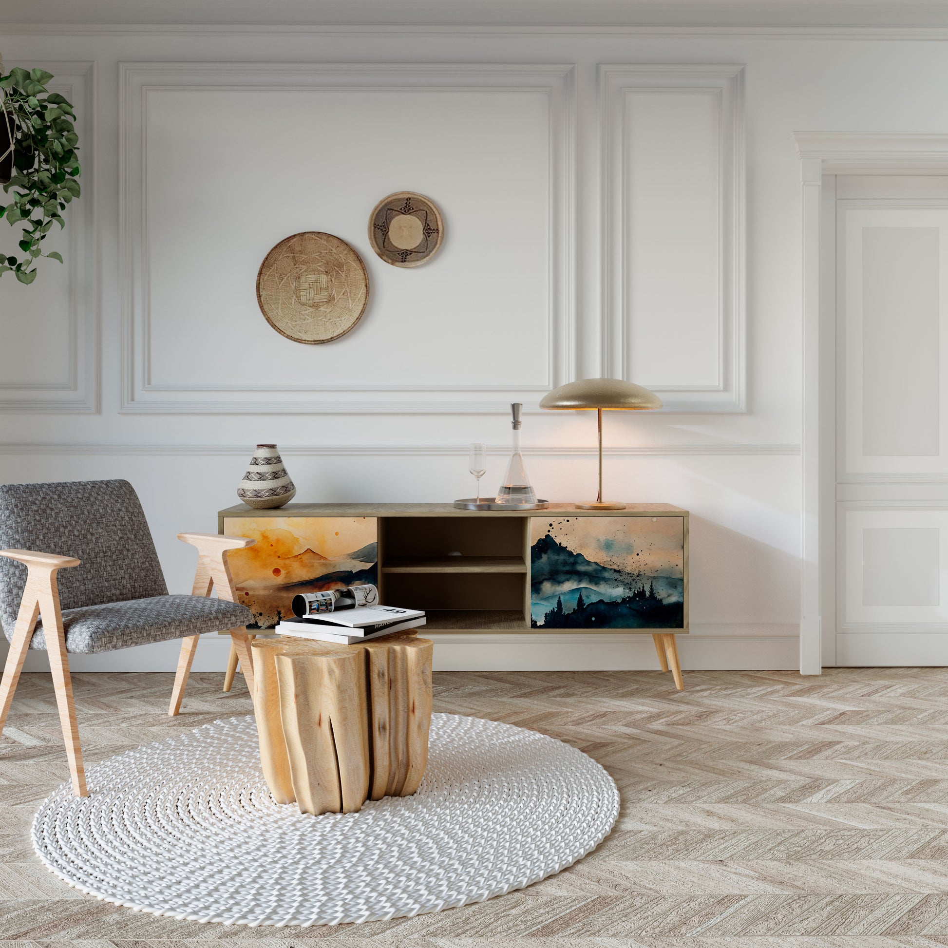OMINOUS MOUNTAINS 2-Door TV Stand in Oak Effect