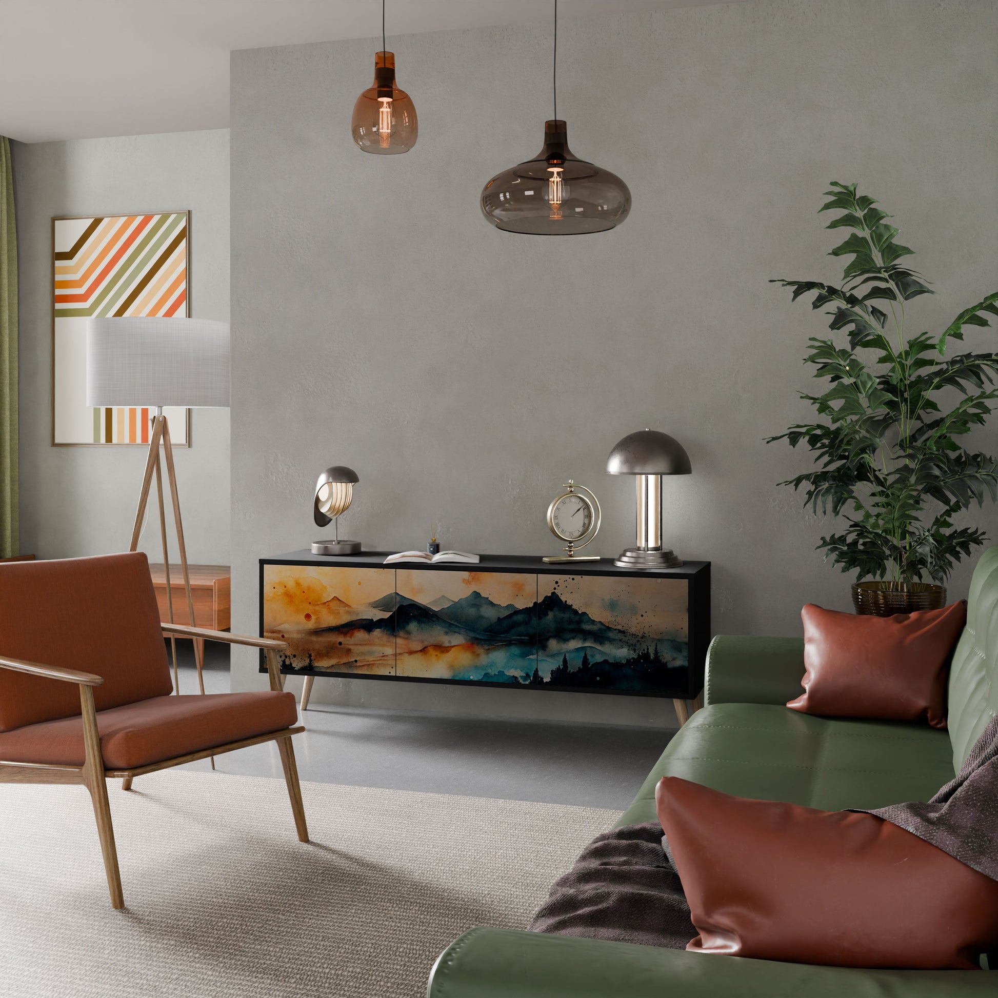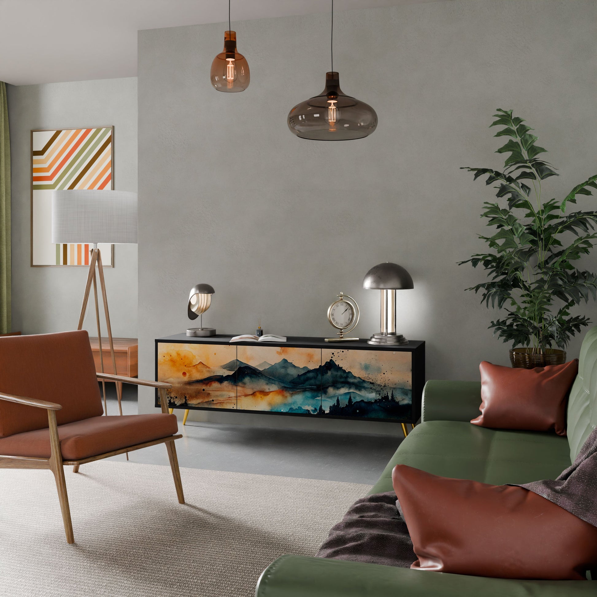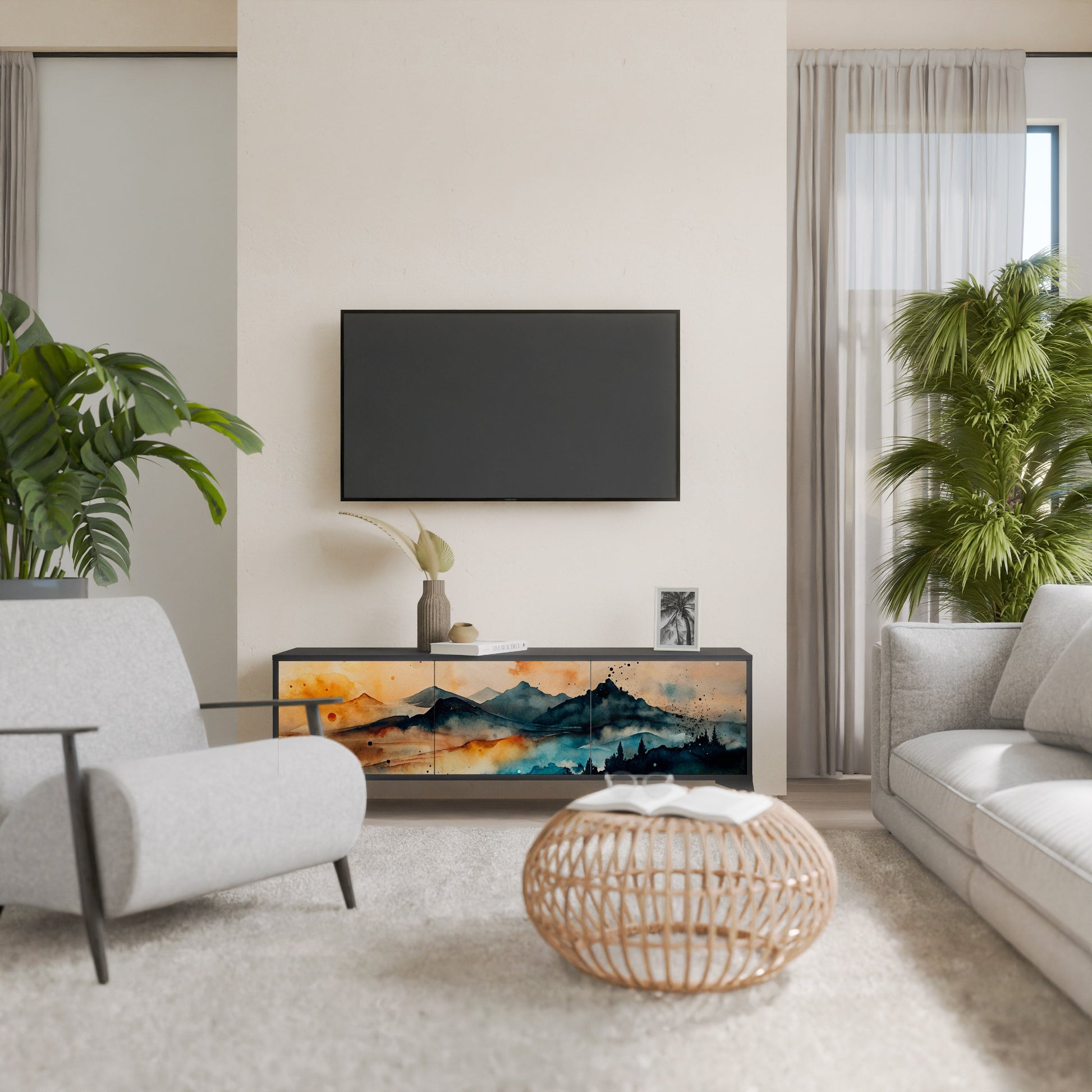 OMINOUS MOUNTAINS 3-Door TV Stand in Black Finish