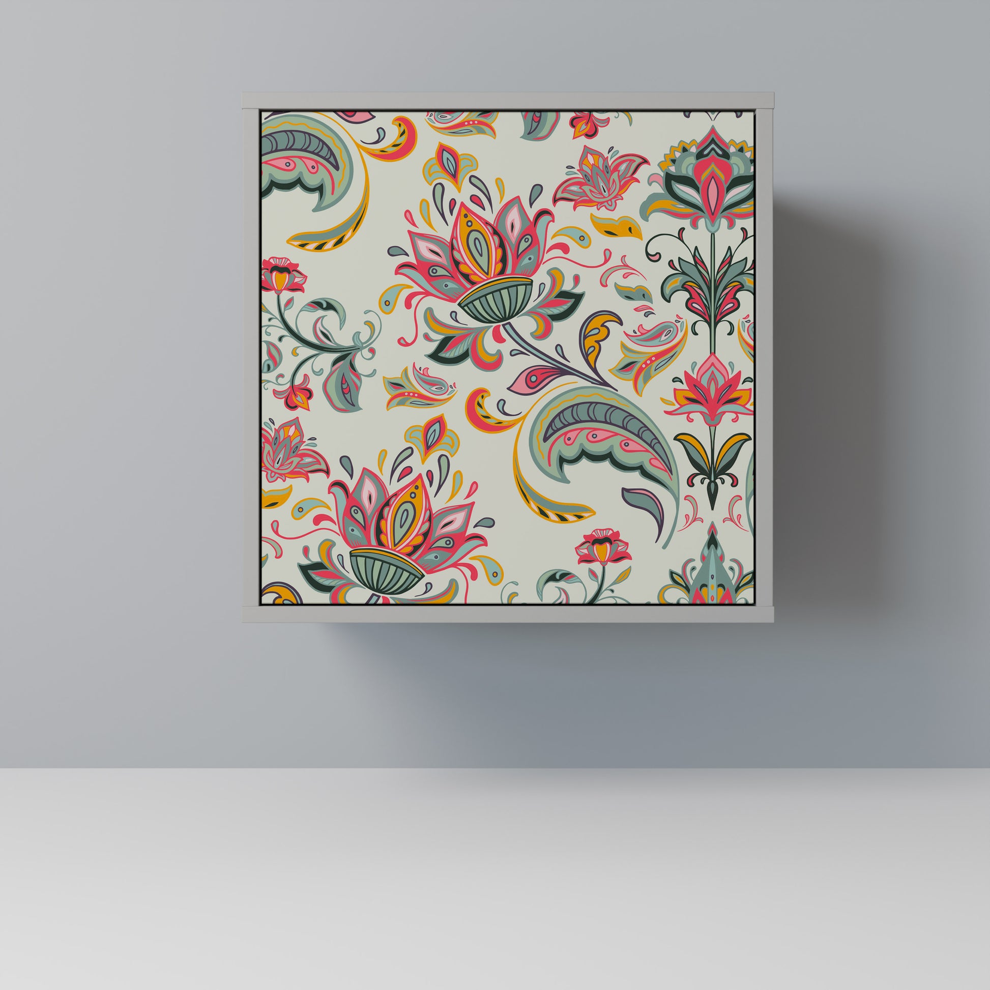 This compact yet remarkably elegant piece of furniture impresses with its minimalist design, perfectly fitting into both modern and classic interiors. The subdued grey color of the body gives the furniture a subtle yet distinctive character, while the fronts with a unique print add an artistic touch.