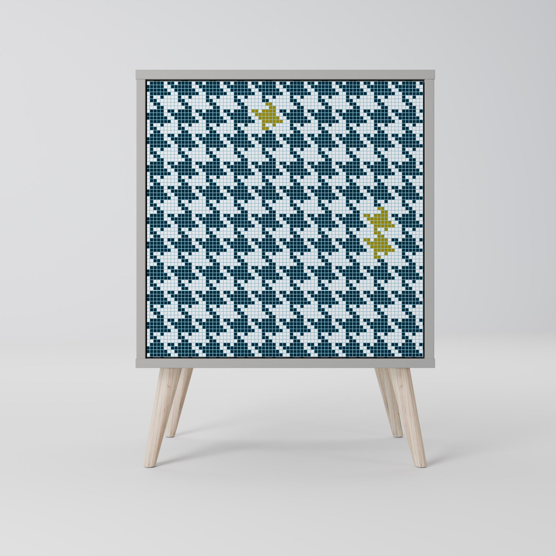 This compact yet remarkably elegant piece of furniture impresses with its minimalist design, perfectly fitting into both modern and classic interiors. The subdued grey color of the body gives the furniture a subtle yet distinctive character, while the fronts with a unique print add an artistic touch.