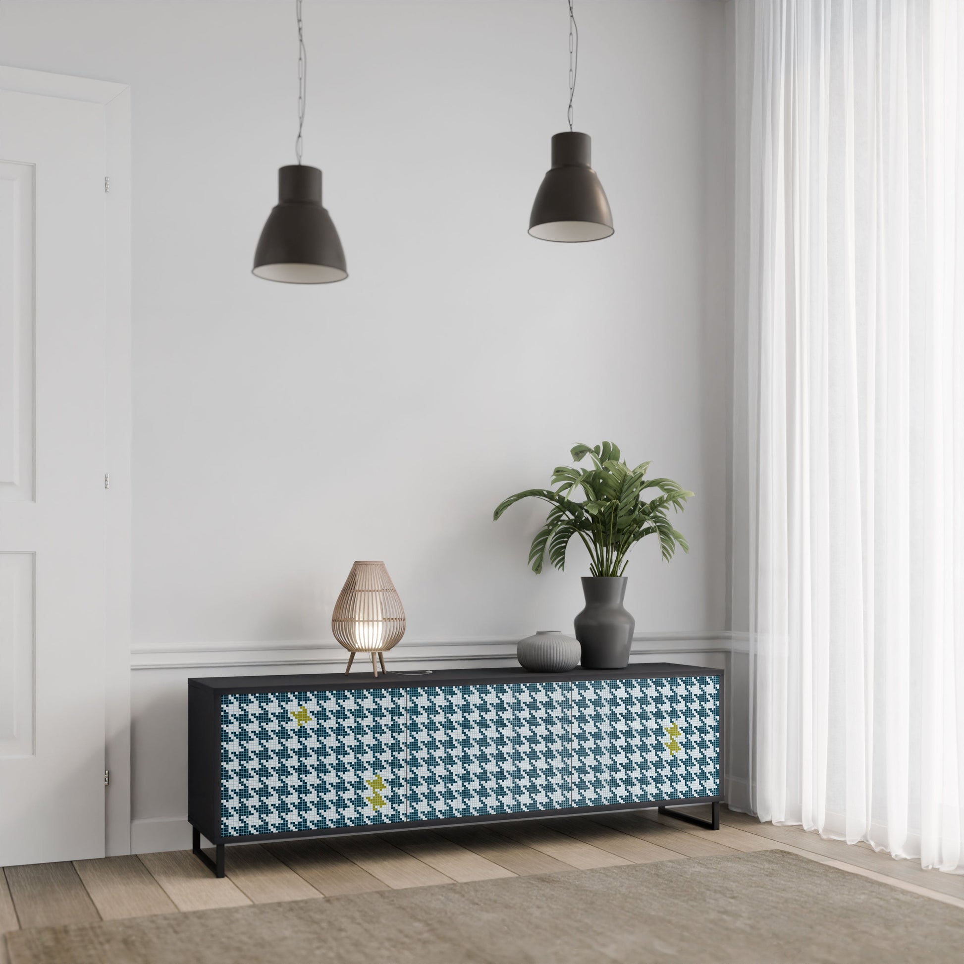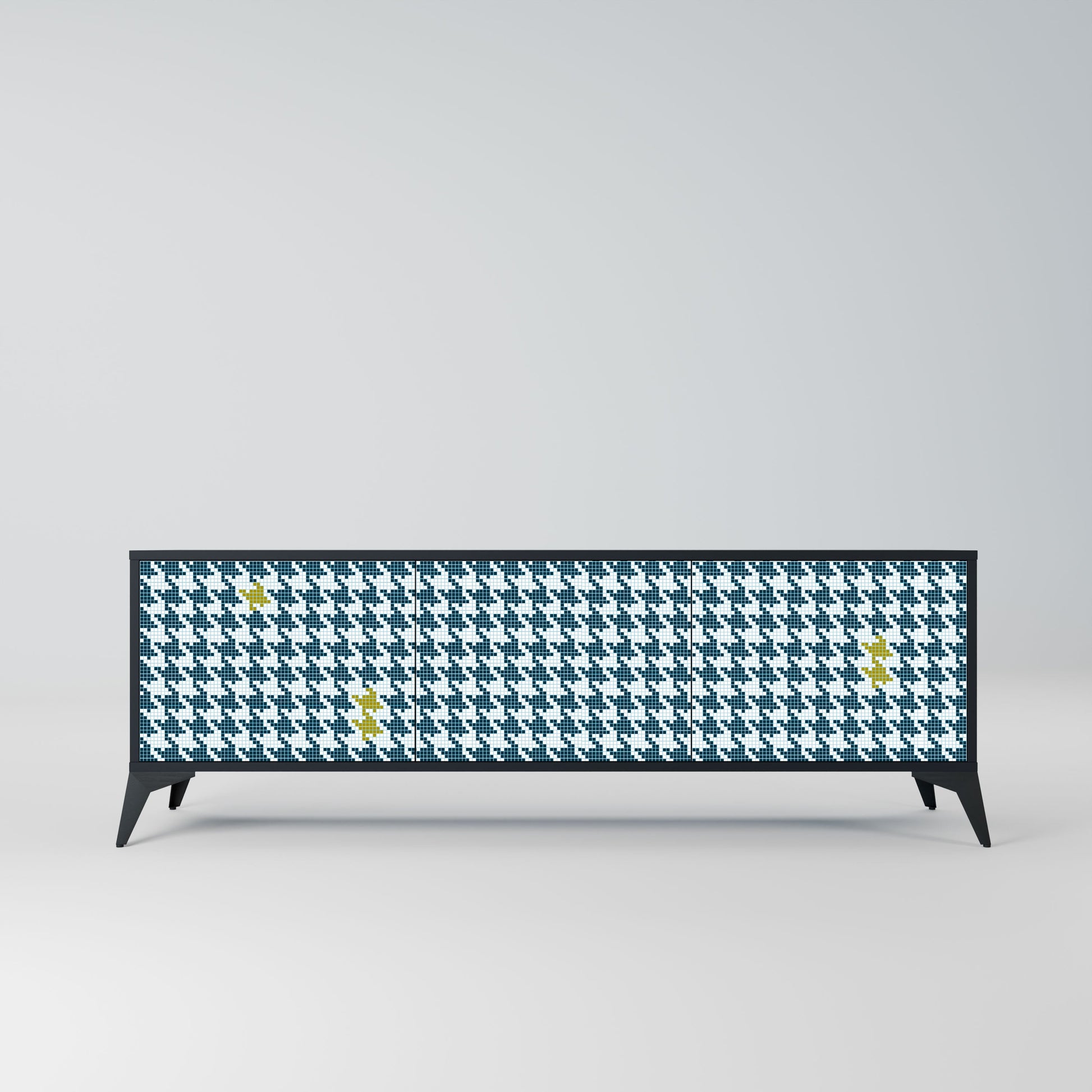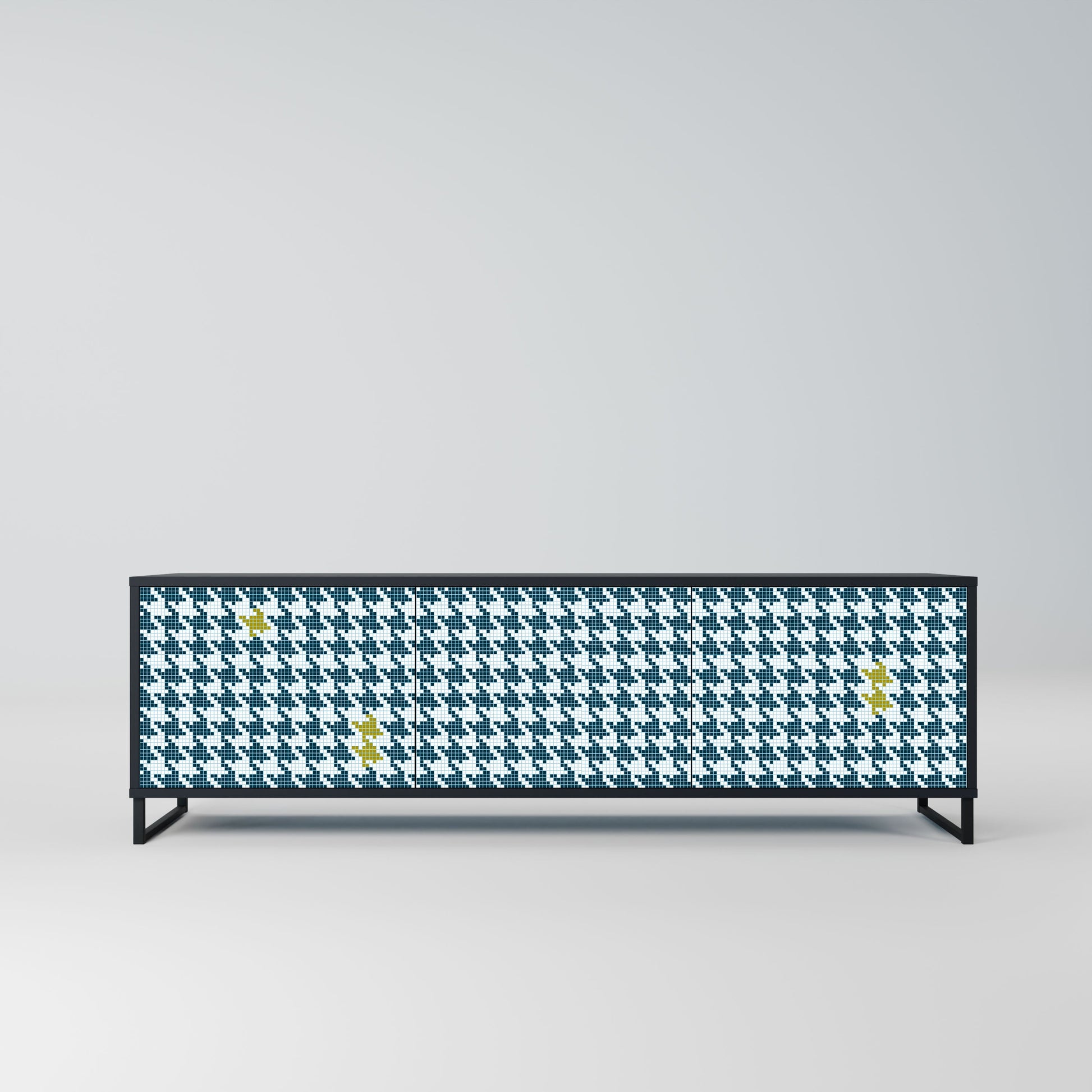 The black body of the stand creates a bold, modern accent that pairs beautifully with industrial and minimalist arrangements. The fronts with a designer print add character and uniqueness, making this piece not only practical but also a standout decorative element.