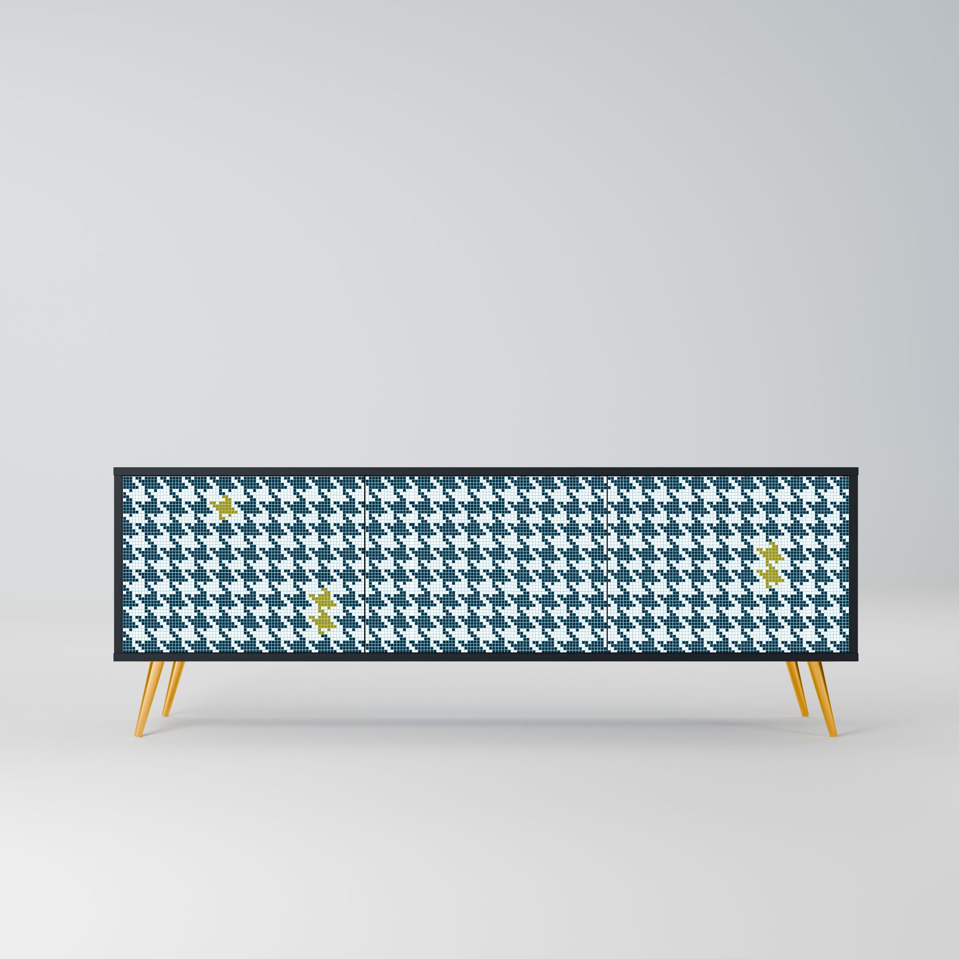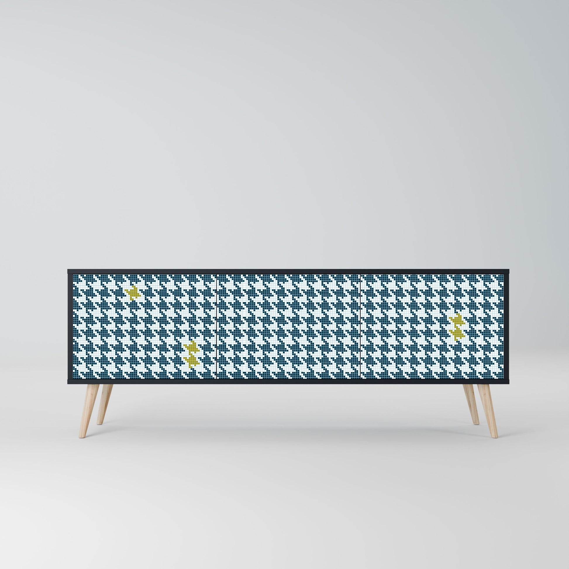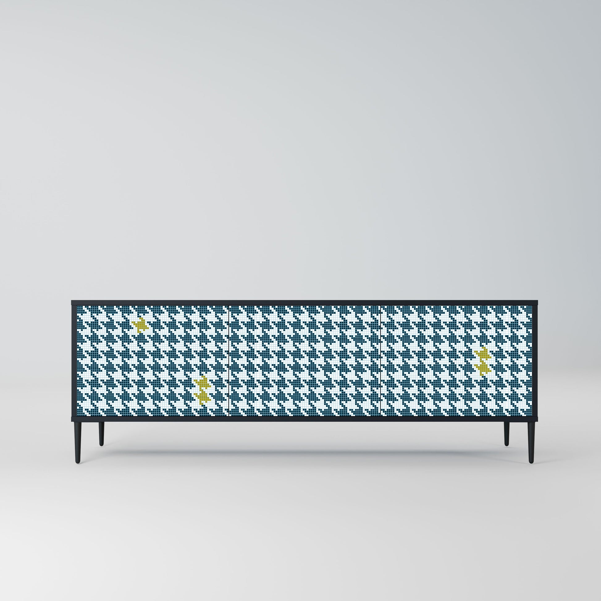 The black body of the stand creates a bold, modern accent that pairs beautifully with industrial and minimalist arrangements. The fronts with a designer print add character and uniqueness, making this piece not only practical but also a standout decorative element.