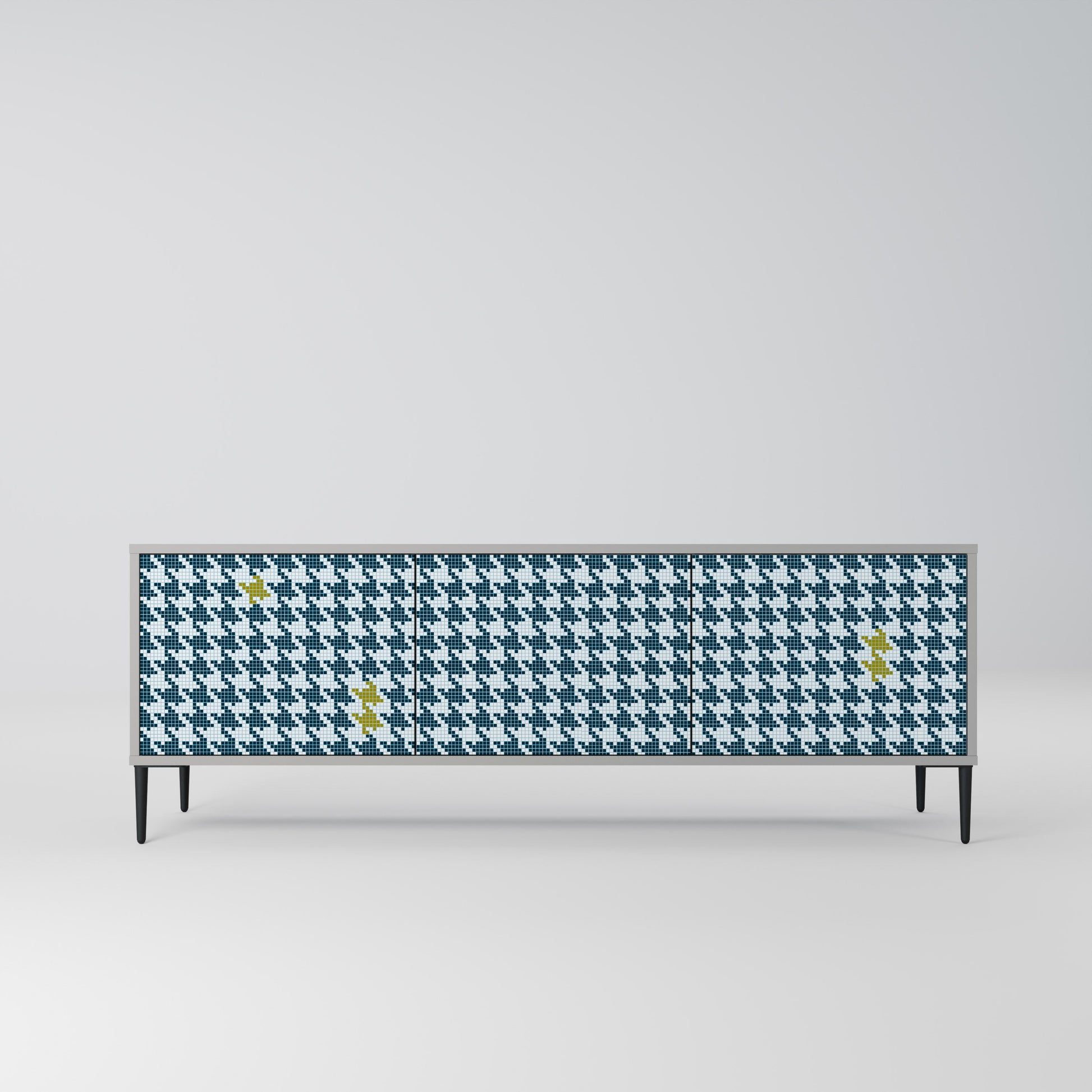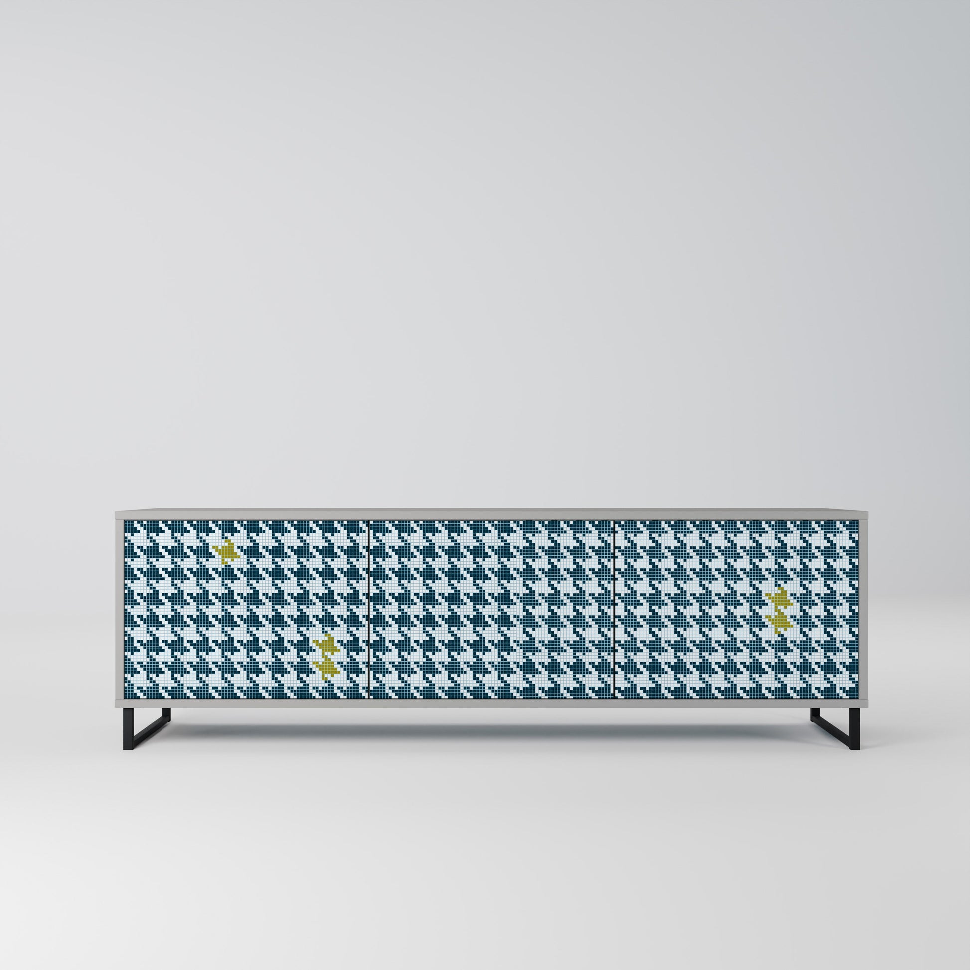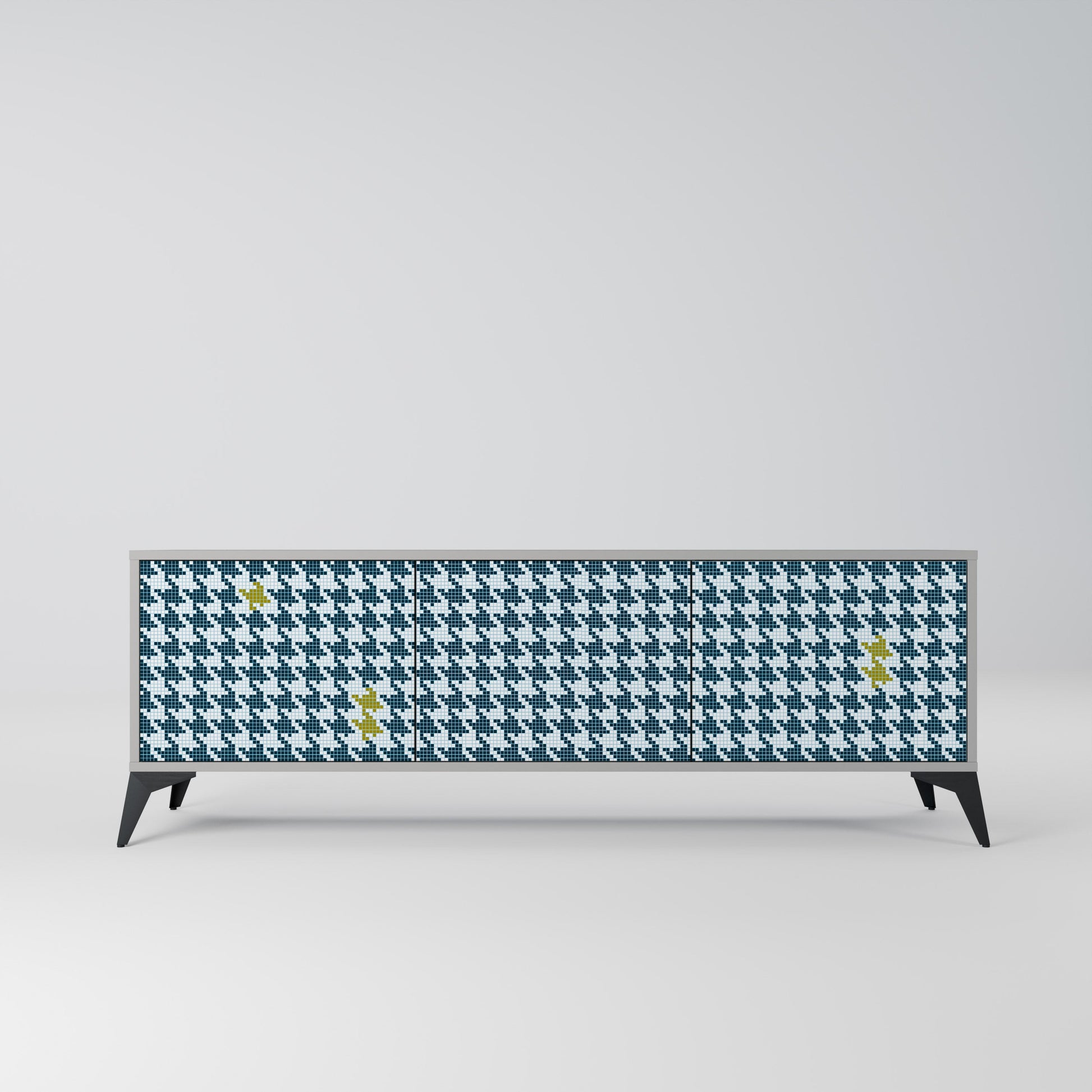 The grey body of the stand creates a refined, modern accent that pairs beautifully with industrial and minimalist arrangements. The fronts with a designer print add character and uniqueness, making this piece not only practical but also a standout decorative element.